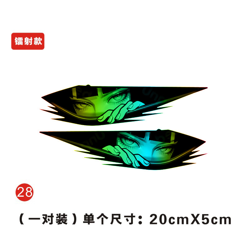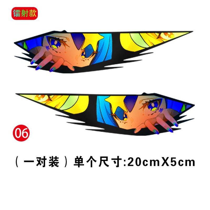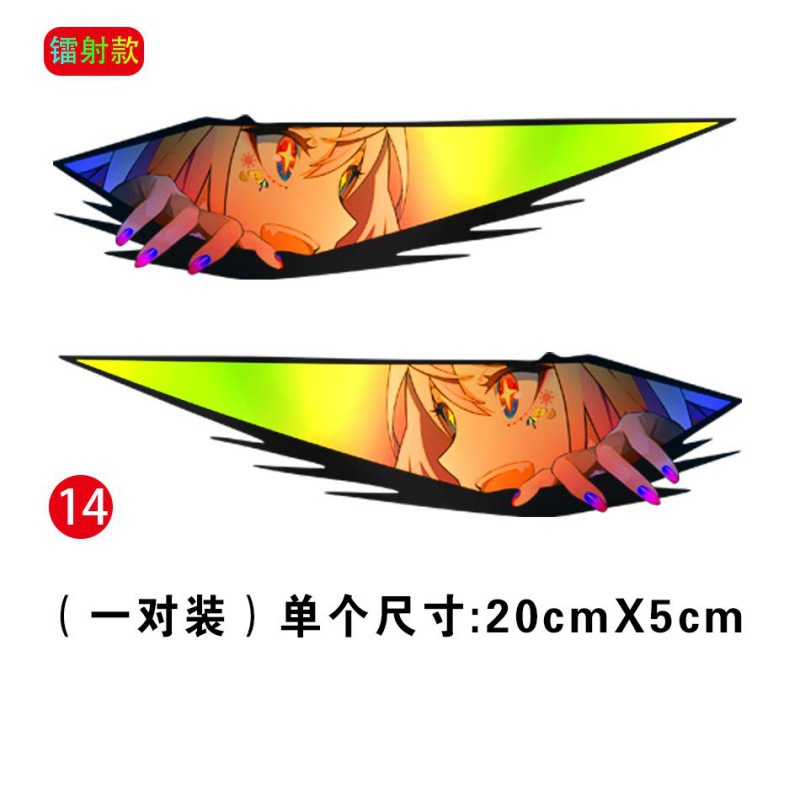 자동차 스크래치 차단 스티커 2 차 애니메이션 소녀 자동차 스티커 유리 성격 레이저 반사 쿨 아이 킬