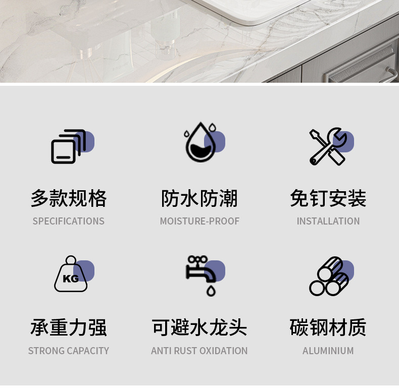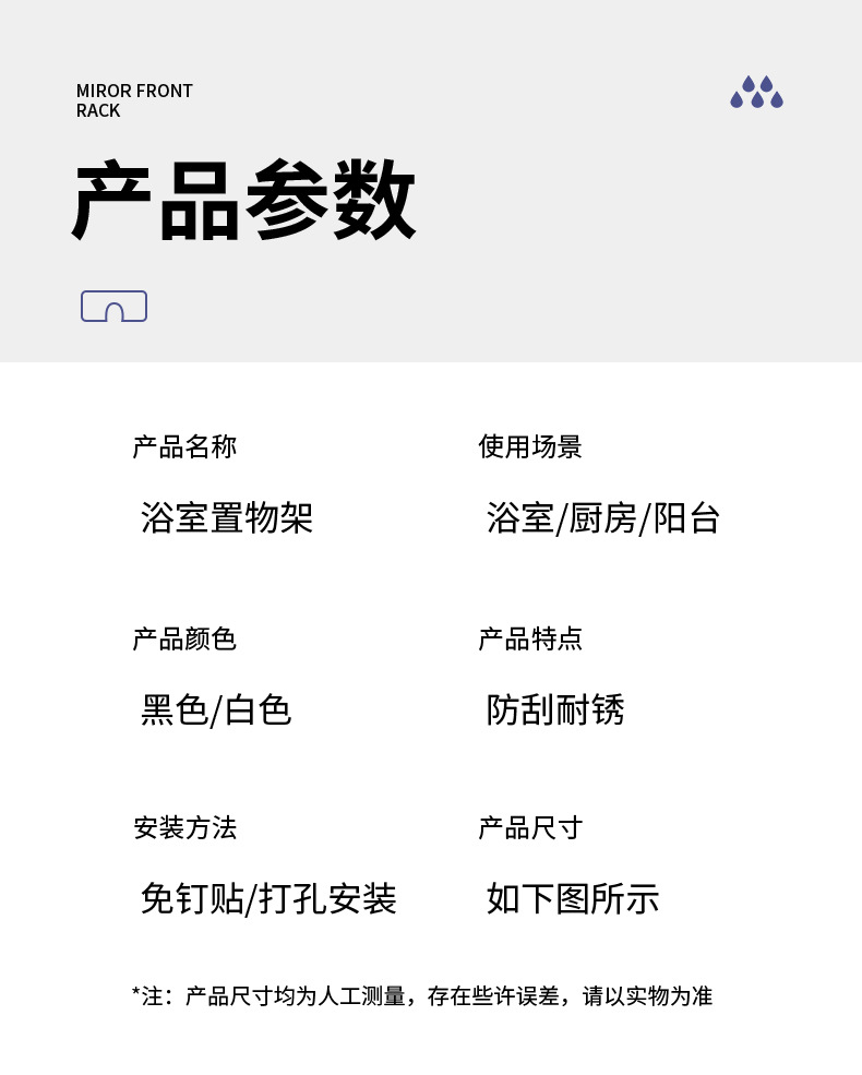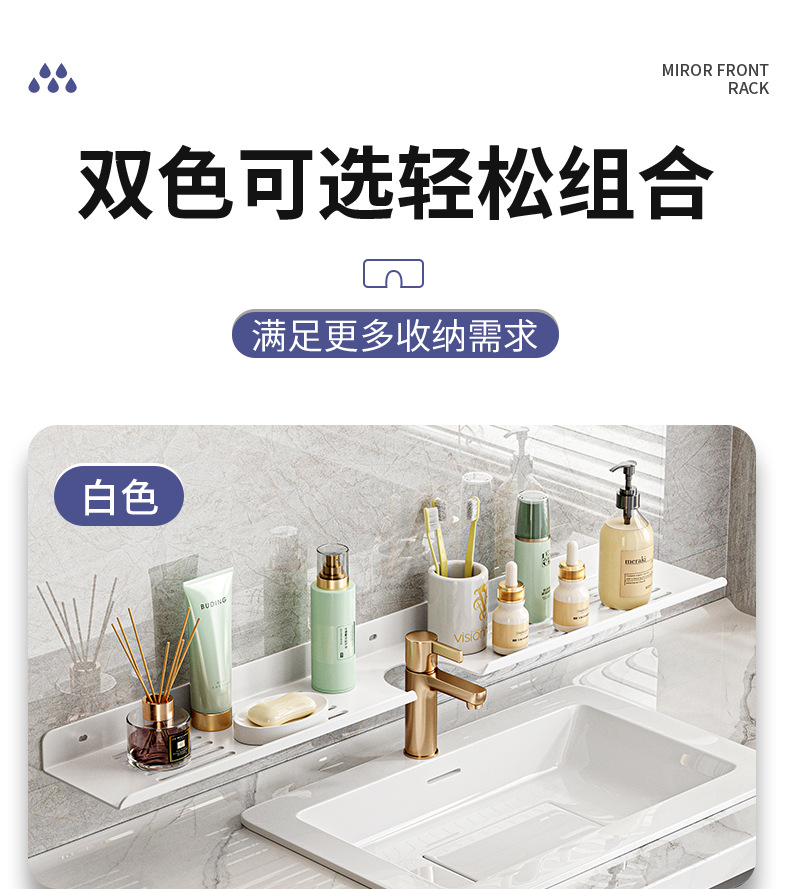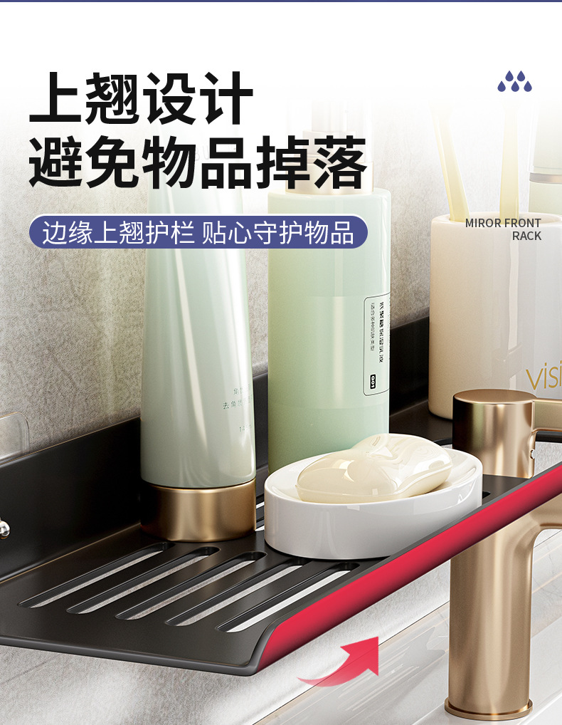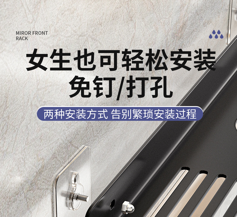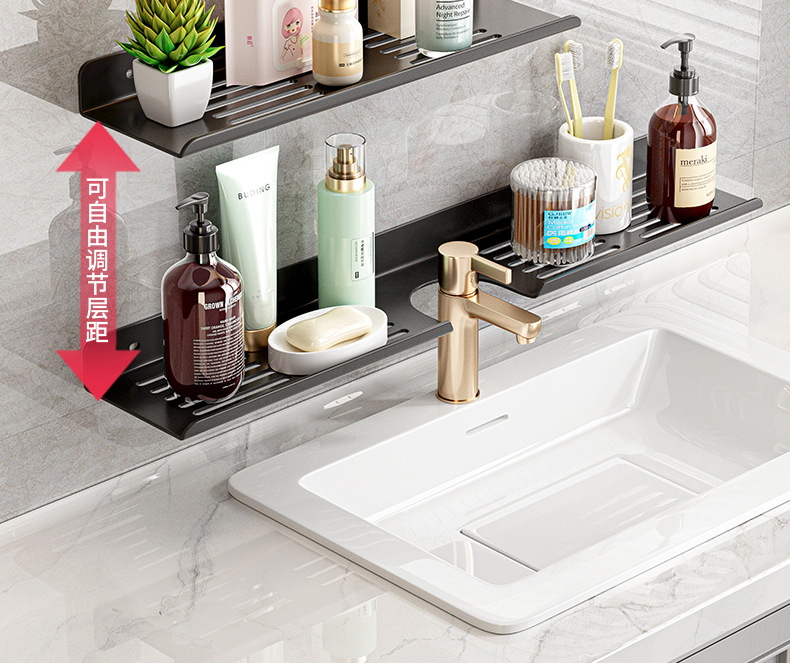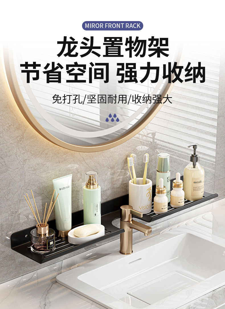 욕실 세탁기 거울 전면 수도꼭지 보관 랙 화장실 싱크대 구멍이없는 벽걸이 형 고급 보관 선반