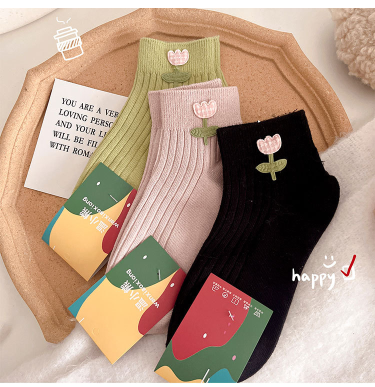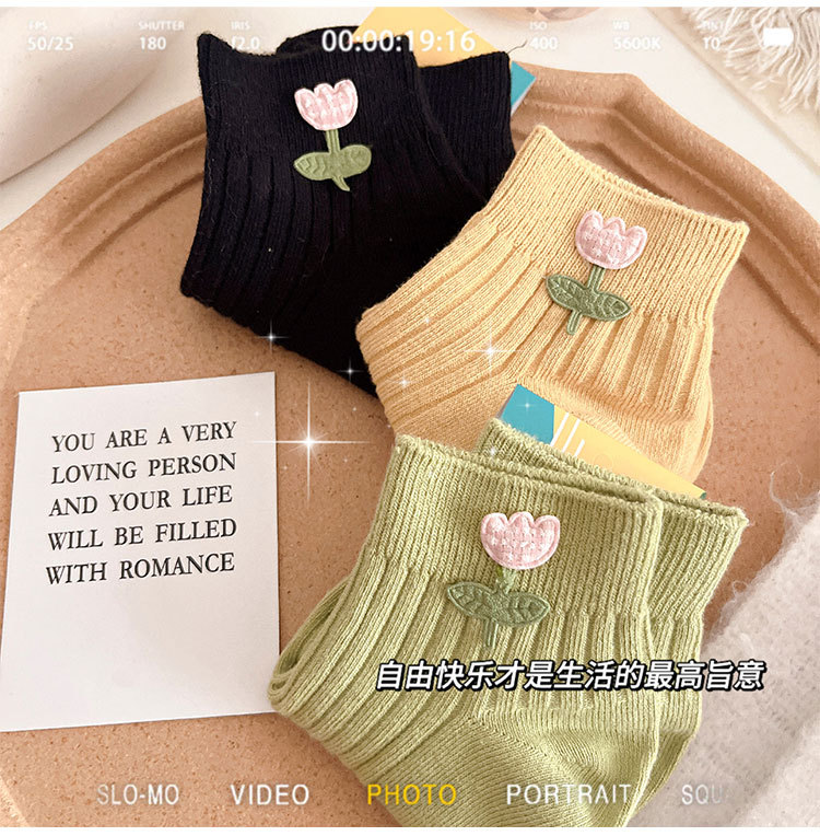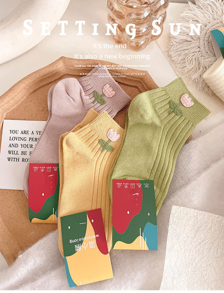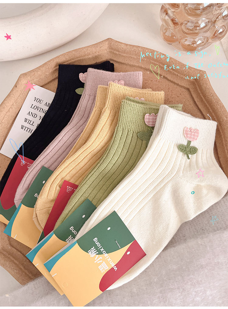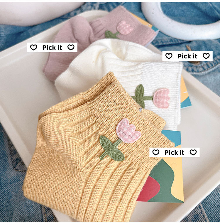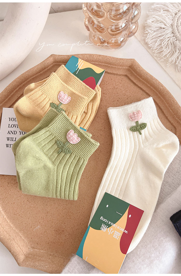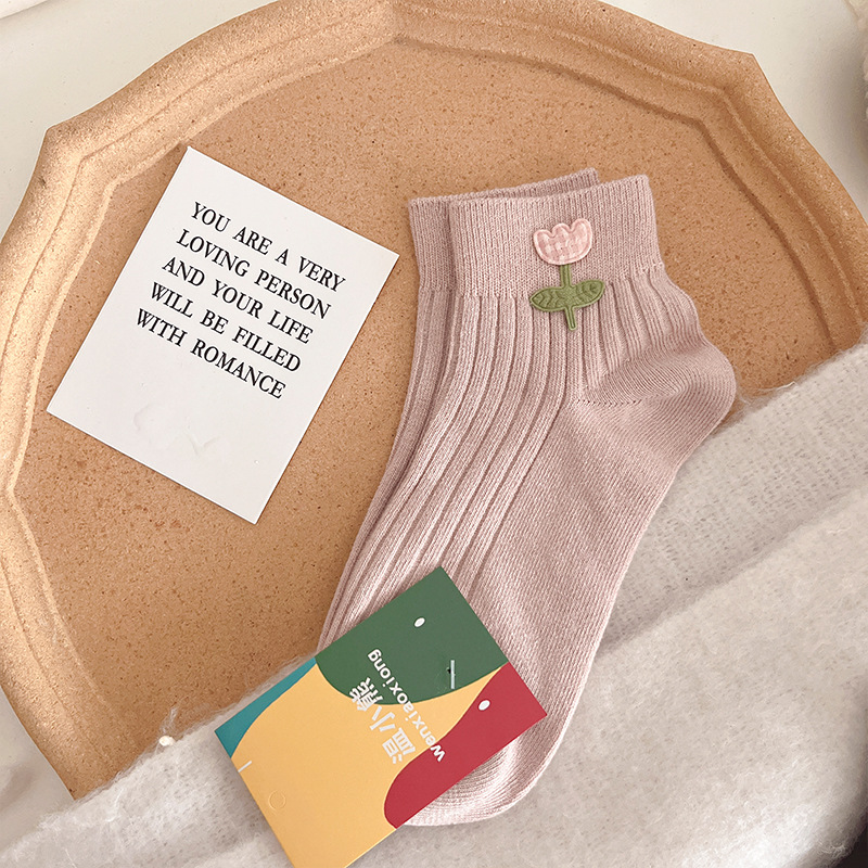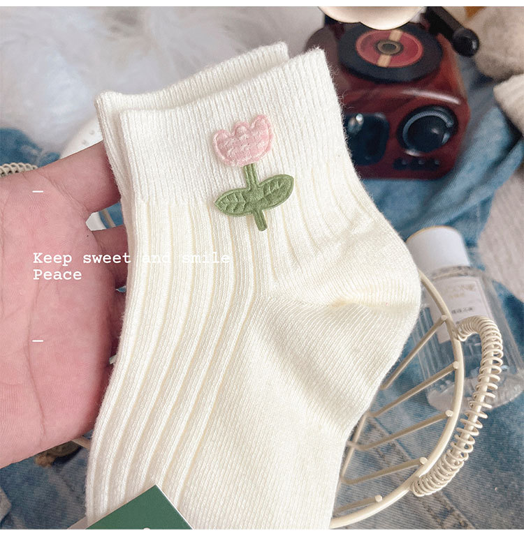 일본 스타일 달콤한 귀여운 부드러운 소녀 튤립 양말 여성 여름 편안한 통기성 올 매치 입체 작은 꽃 양말스토어 가기