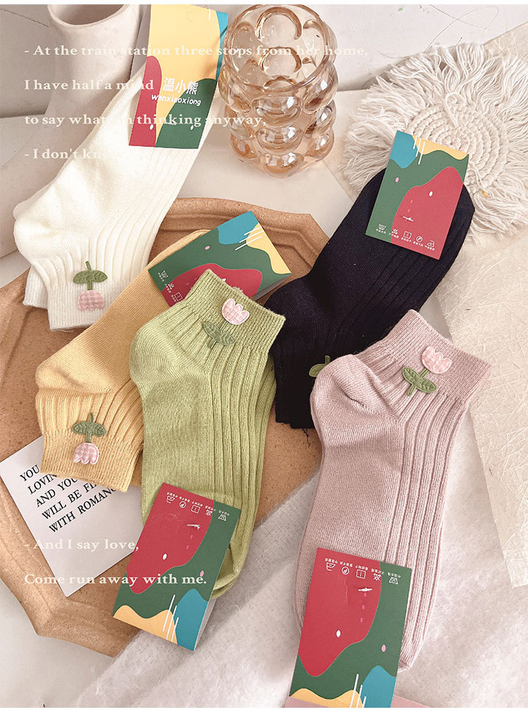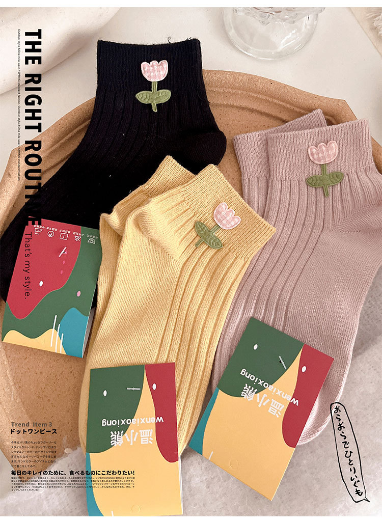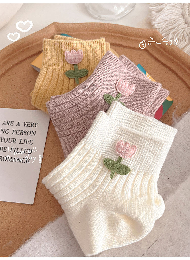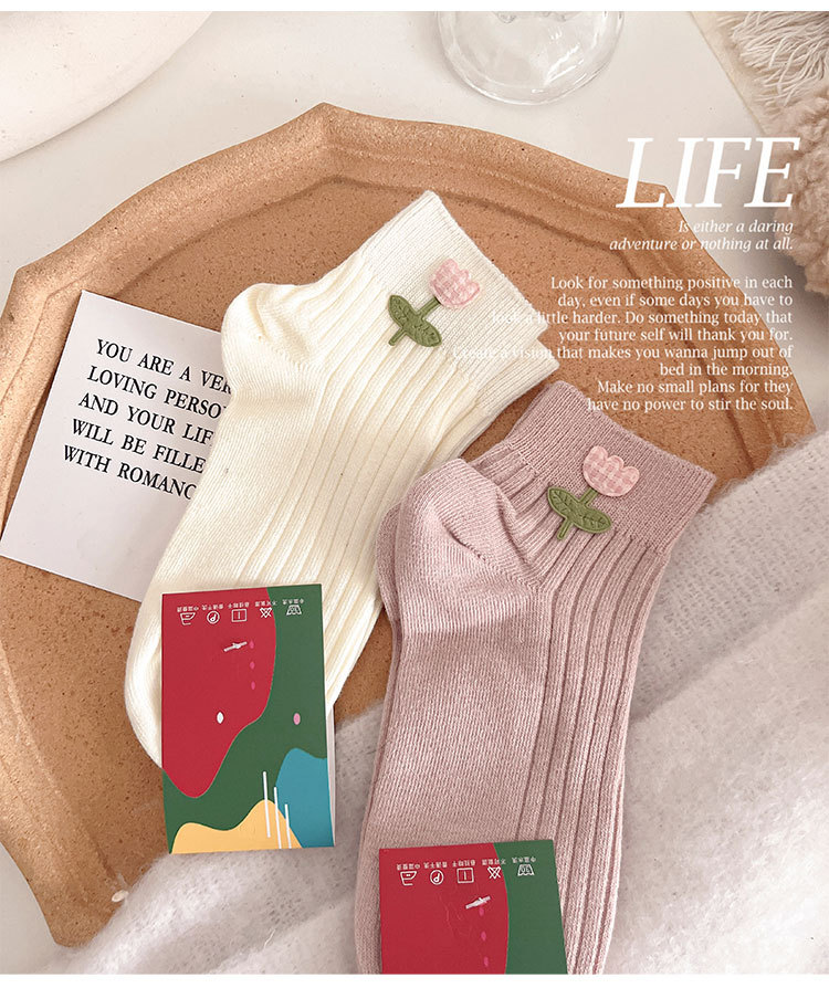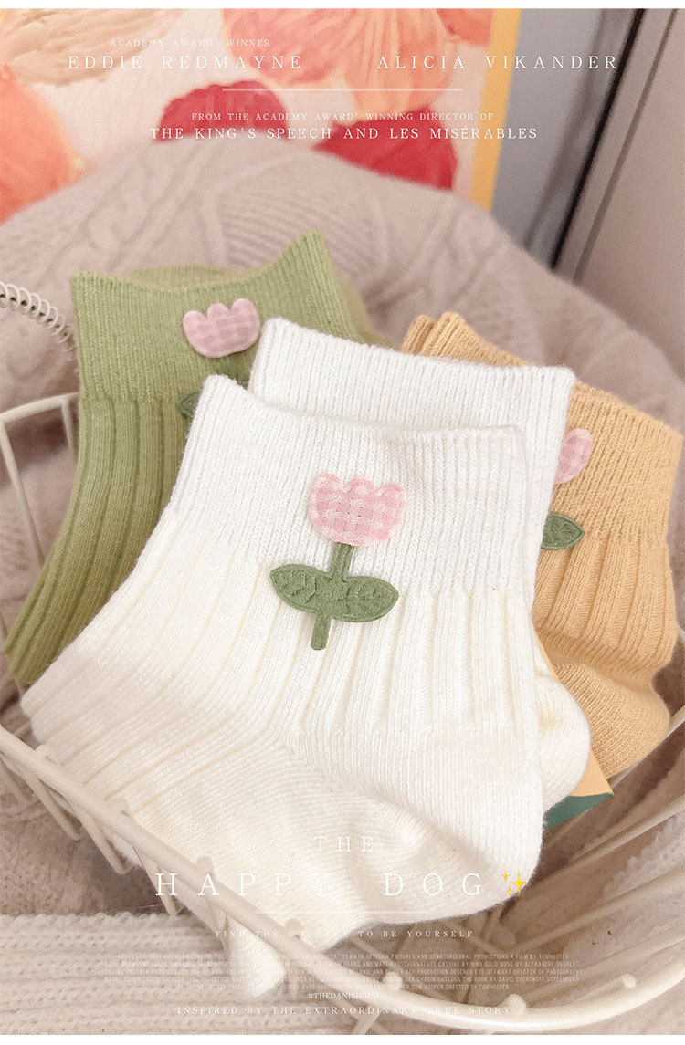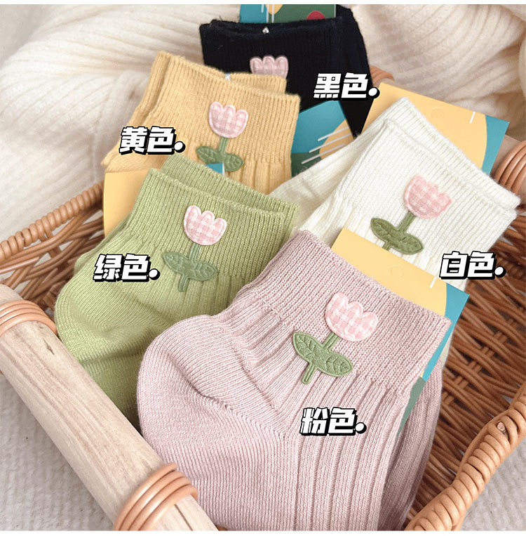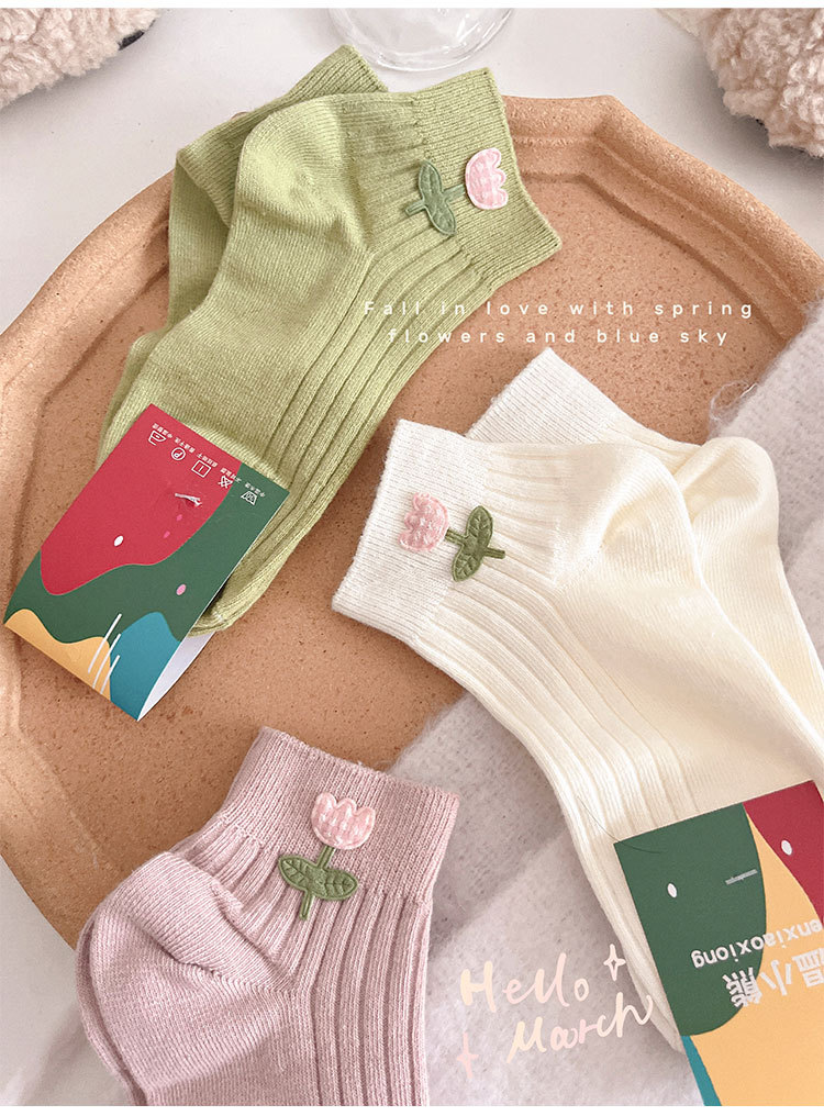 일본 스타일 달콤한 귀여운 부드러운 소녀 튤립 양말 여성 여름 편안한 통기성 올 매치 입체 작은 꽃 양말스토어 가기