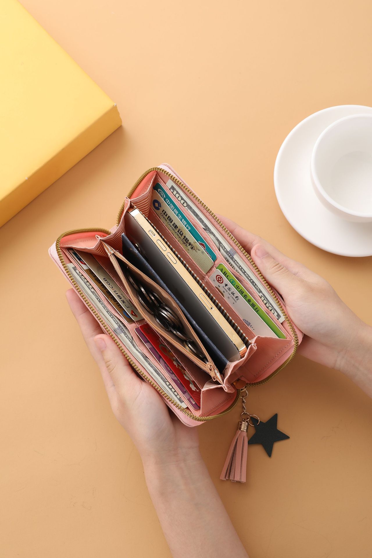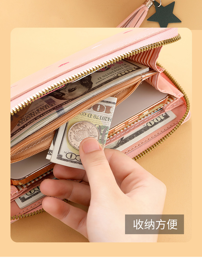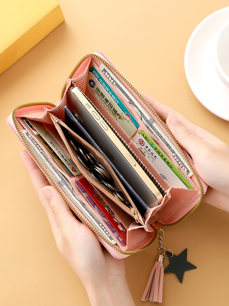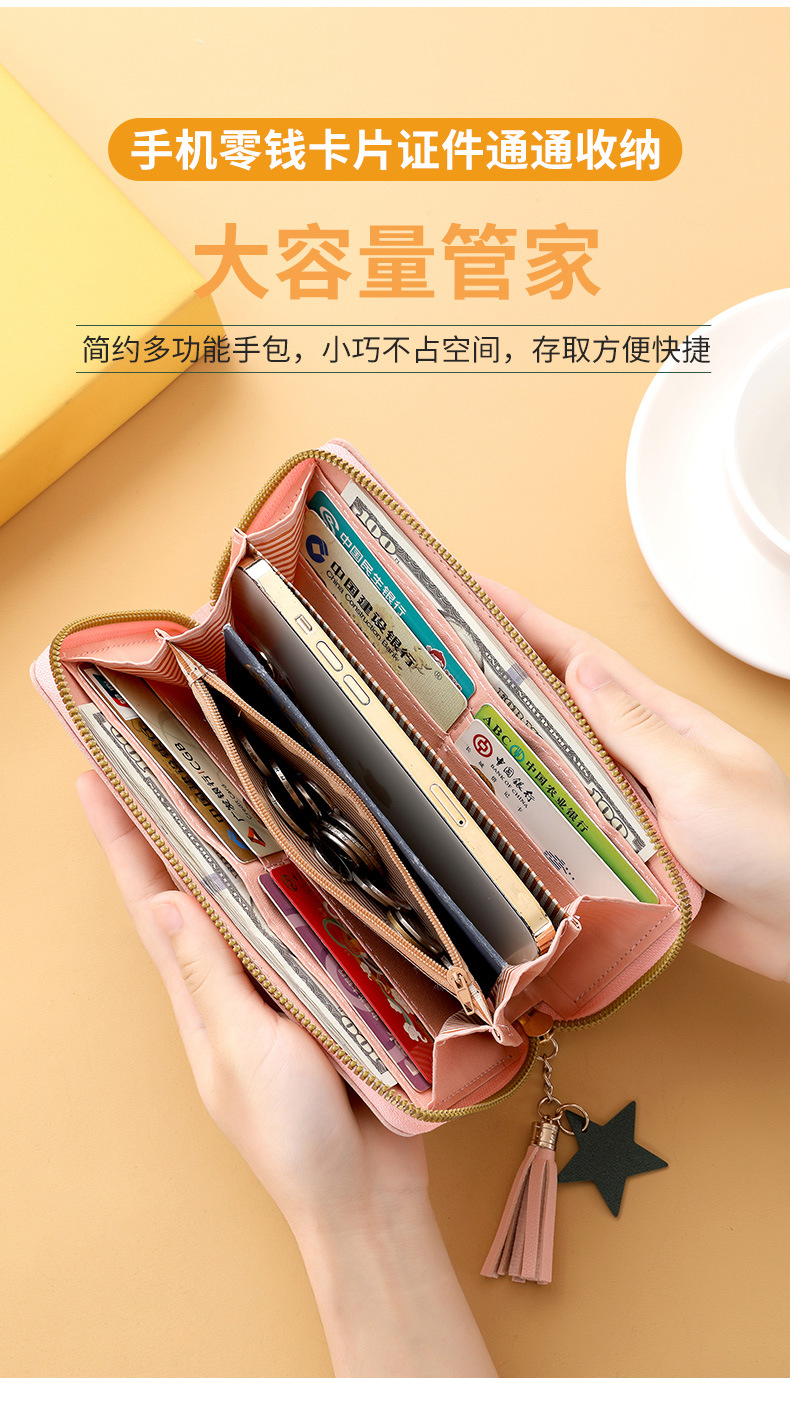 새로운 패션 술 긴 대용량 카드 가방 지퍼 클러치 가방 여성 동전 지갑 휴대 전화 가방