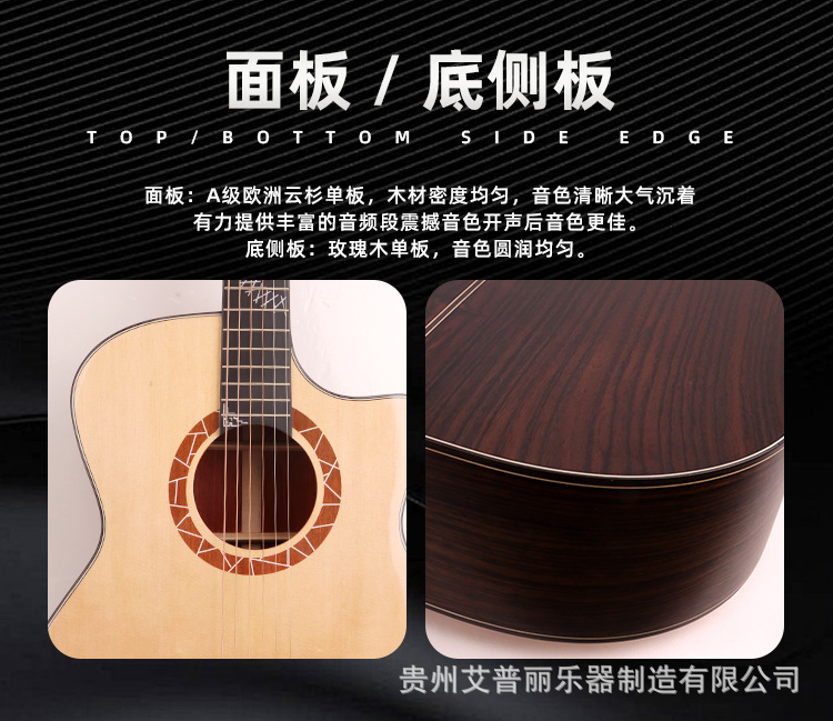 공장 도매 40 인치 전체 단일 어쿠스틱 기타 가문비 나무 장미