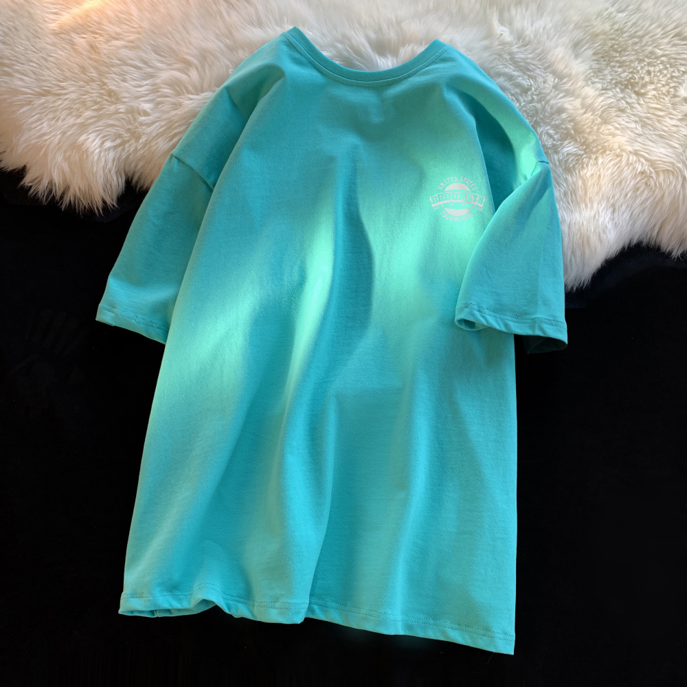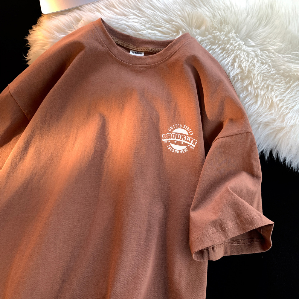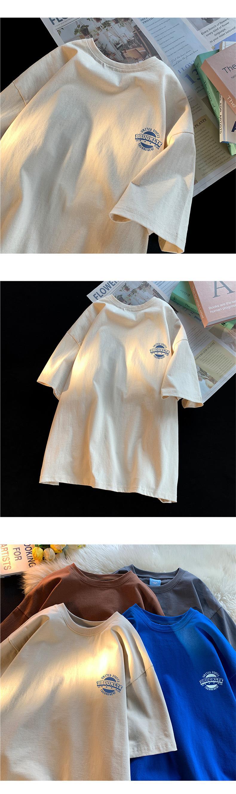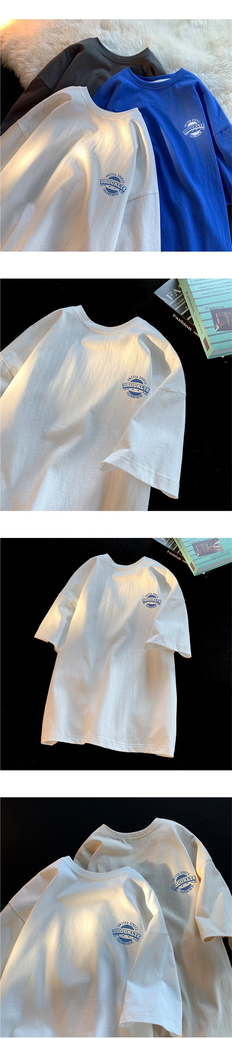 화이트 코튼 반팔 티셔츠 남자 여름 2024 새로운 느슨한 유행 브랜드 반소매 티셔츠 보이즈 베이스 셔츠스토어 가기