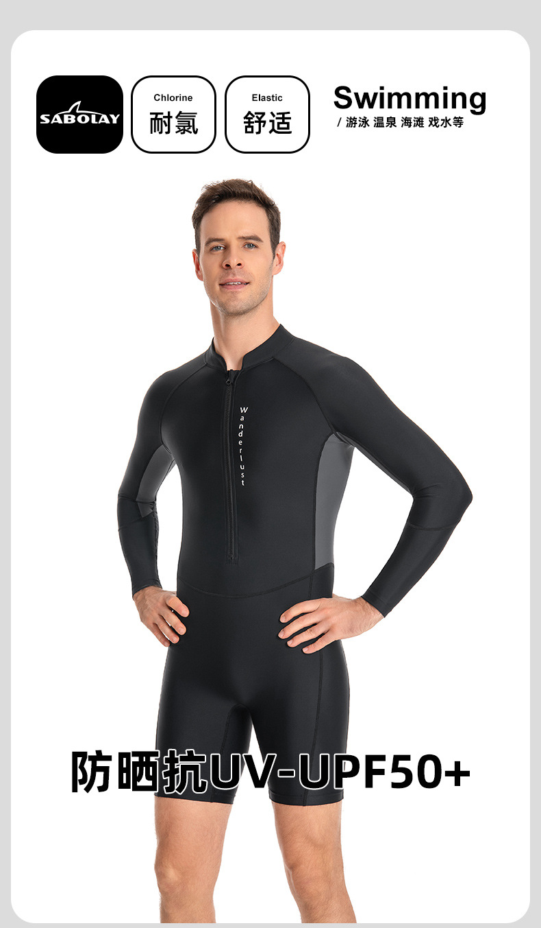 2024 새로운 남자 원피스 수영복 여름 태양 보호 레이싱 남자 수영복 안티 자외선 긴팔 남자 수영복