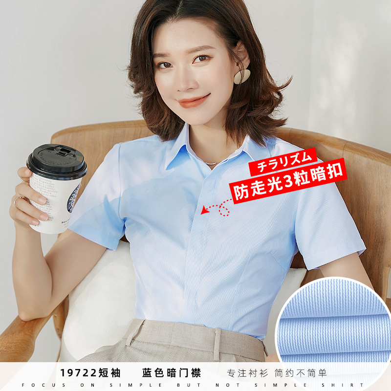 • [반팔] 사각 칼라 숨겨진 버클 블루