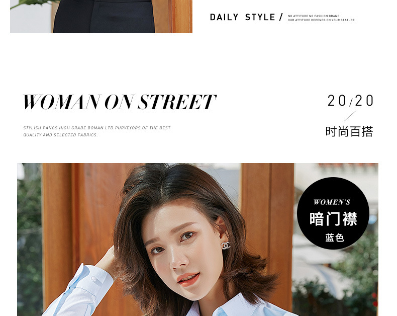• [긴 소매] 사각 칼라 숨겨진 버클 블루