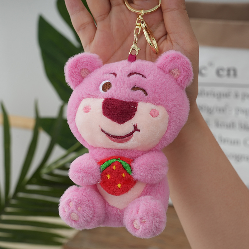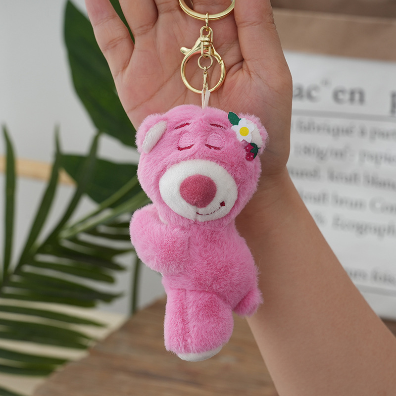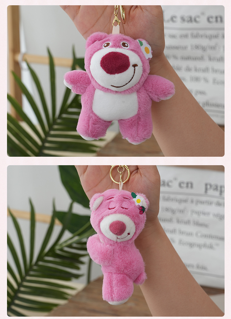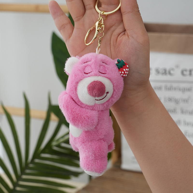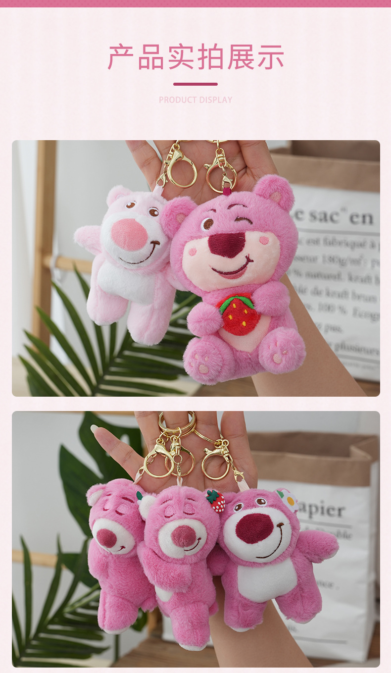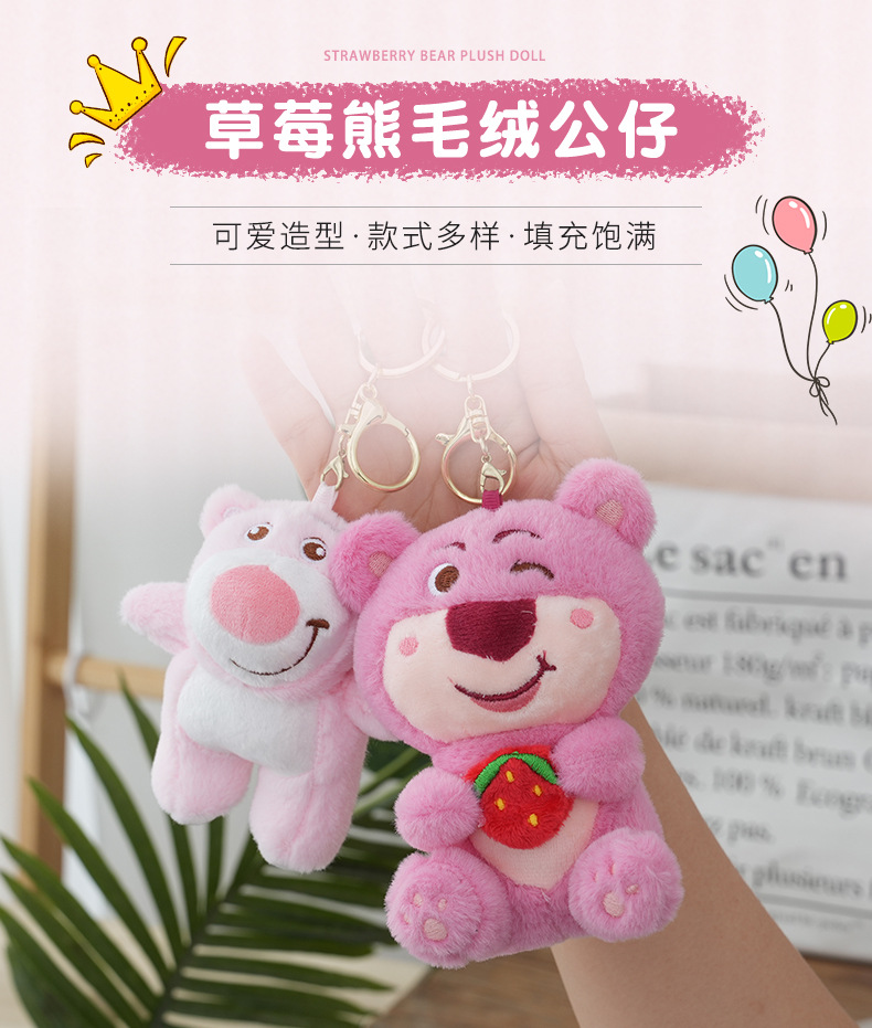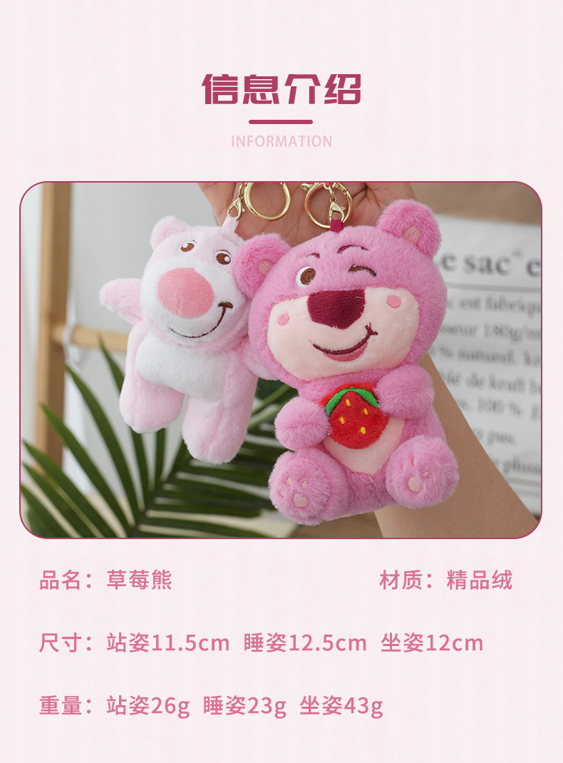 인터넷 연예인 귀여운 딸기 곰 봉제 장난감 귀여운 스몰 사이즈 가방 장식 펜던트 키 체인 장식 봉제 인형스토어 가기
