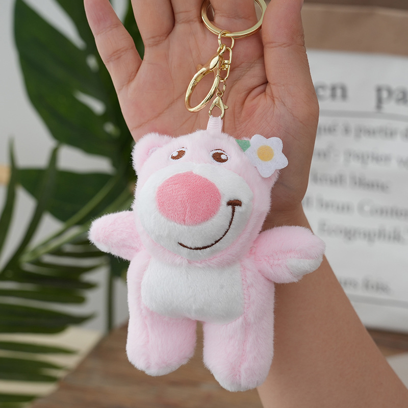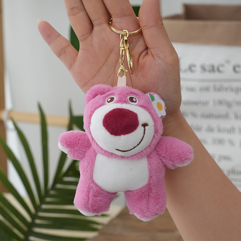 인터넷 연예인 귀여운 딸기 곰 봉제 장난감 귀여운 스몰 사이즈 가방 장식 펜던트 키 체인 장식 봉제 인형