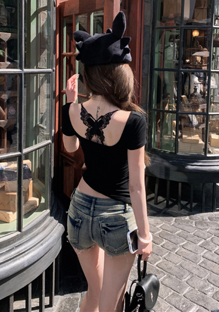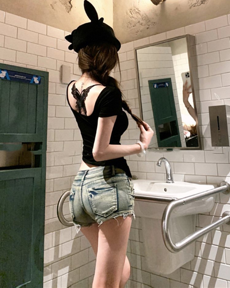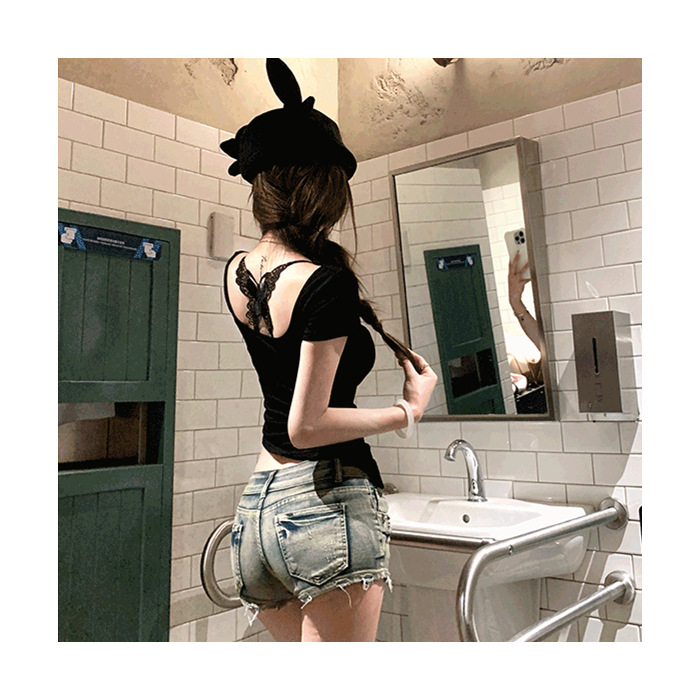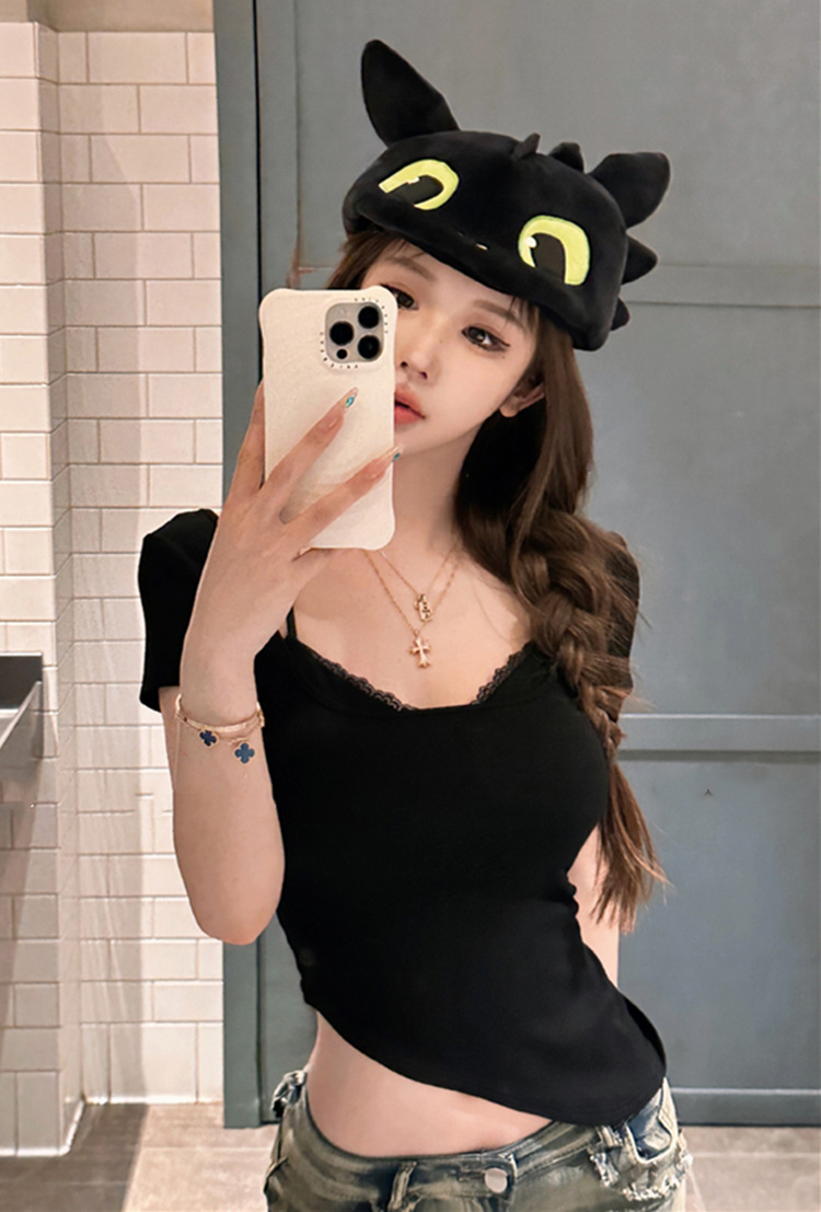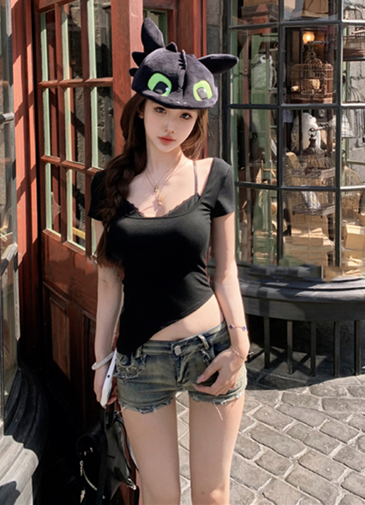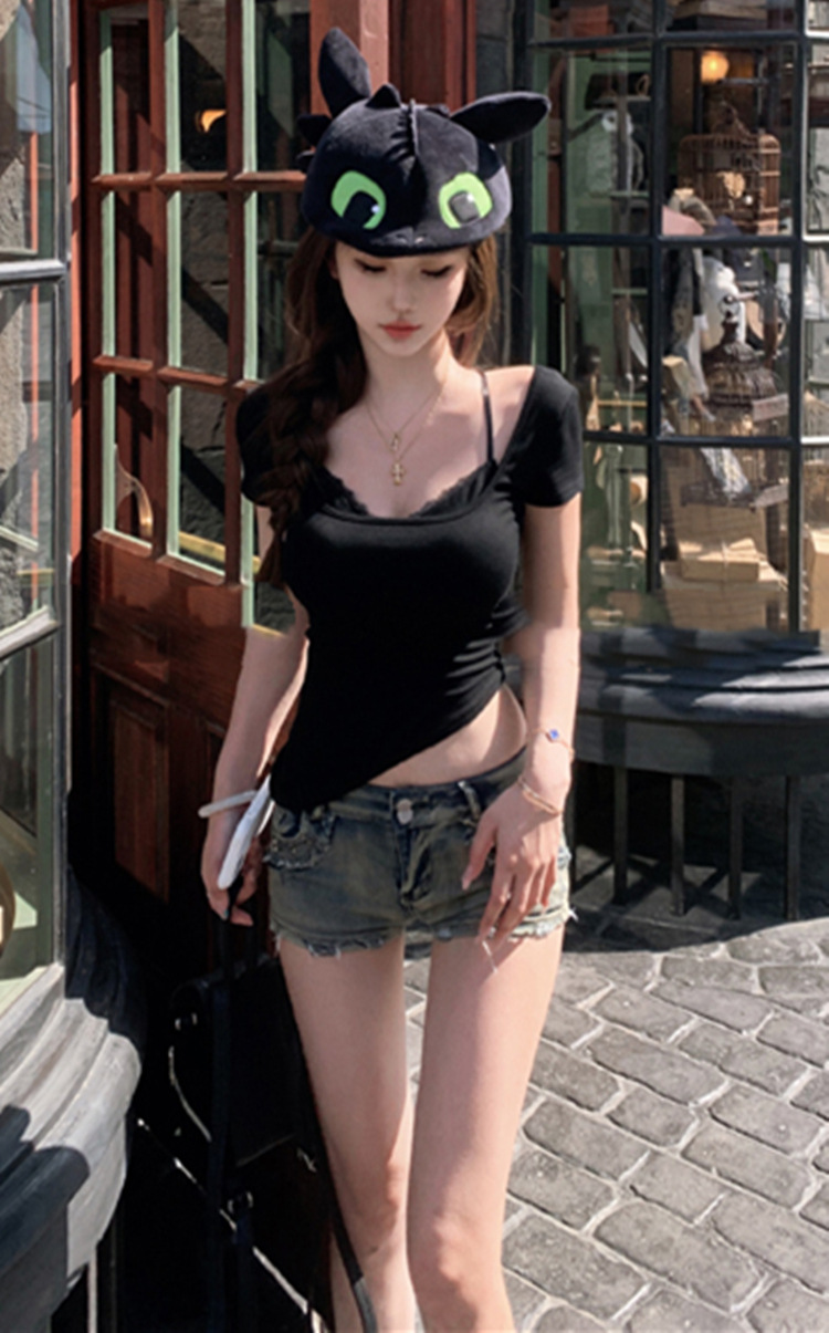 가짜 투피스 교수형 목 슬림 핏 슬림 타이트 허리 티셔츠 순수한 욕망 뜨거운 소녀 섹시한 틈새 세련된 독특한 탑 Ins 여성스토어 가기