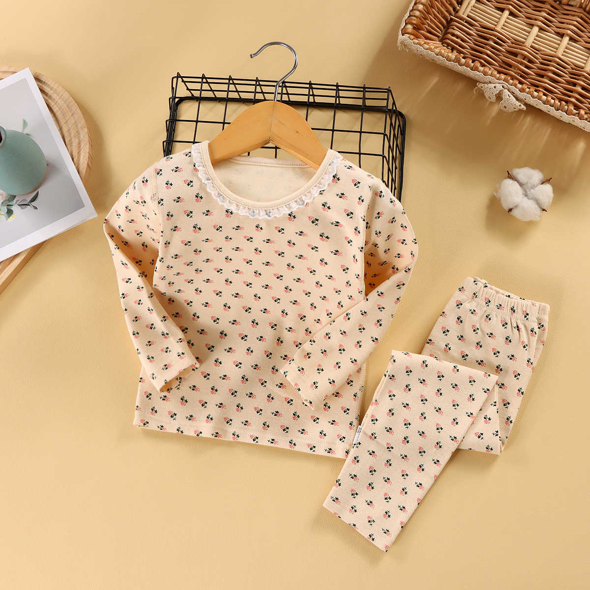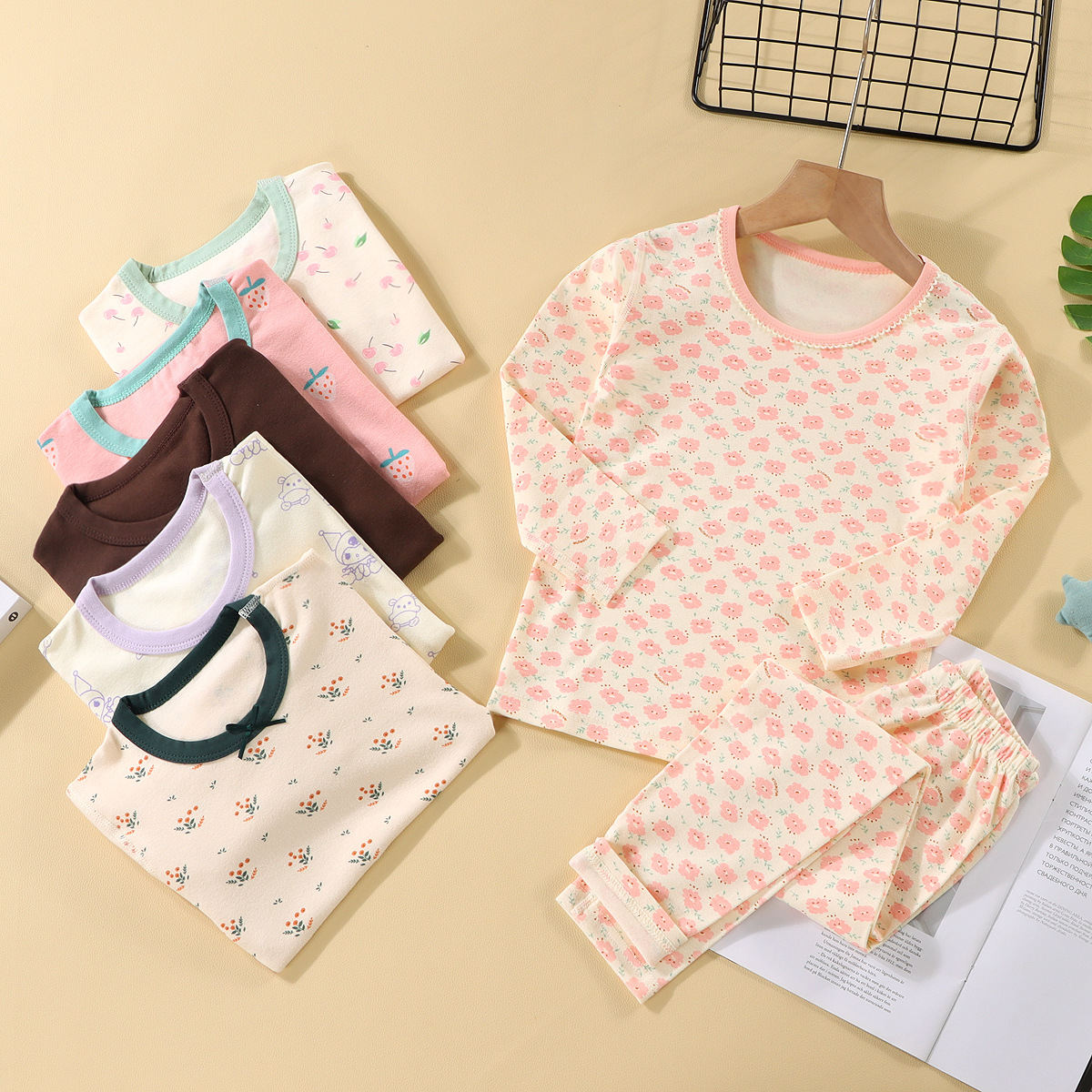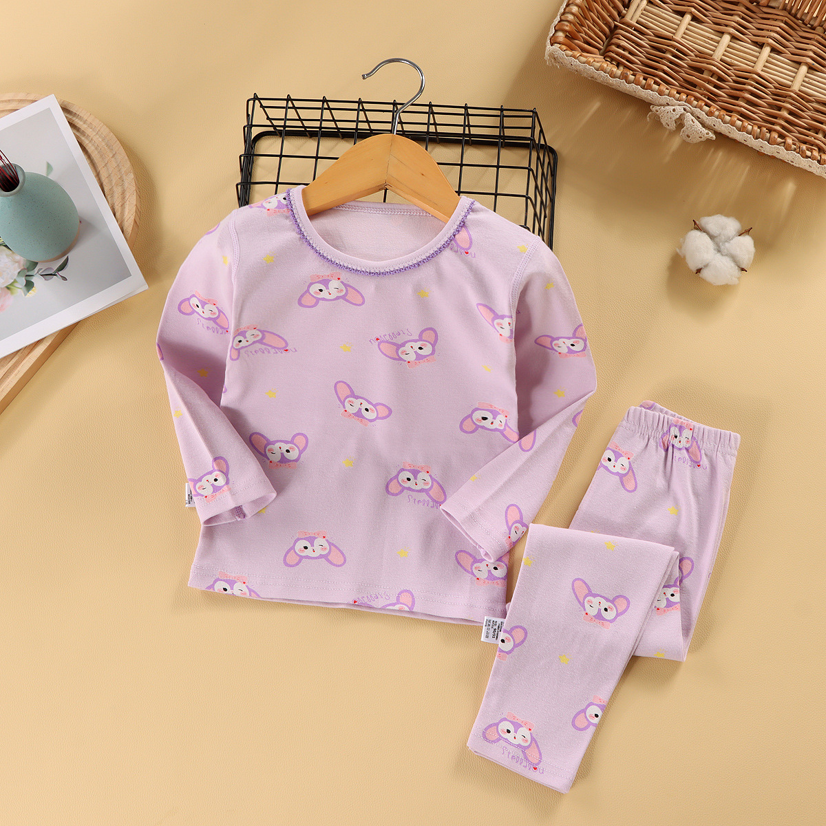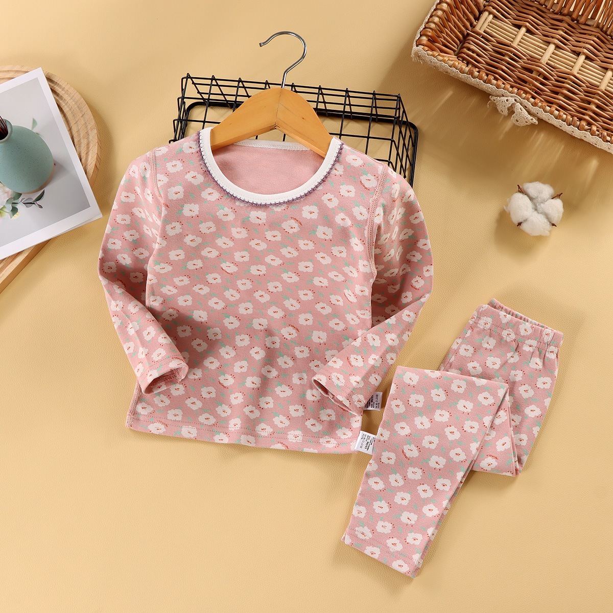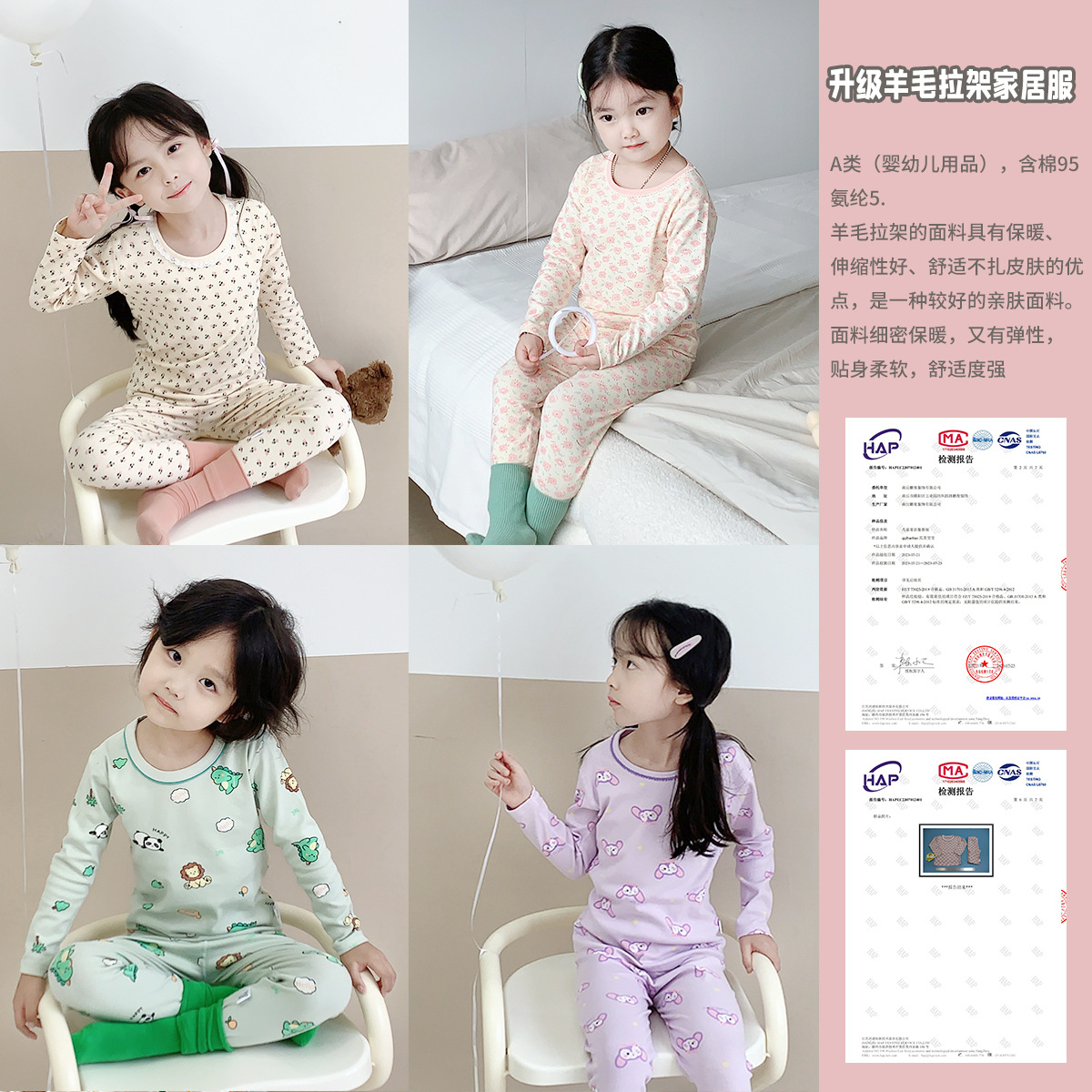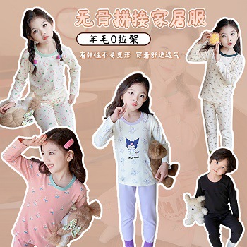 260g 아동용 잠옷 세트, 울 라스트레치 소재, 가을 겨울 여아 홈웨어, 가을옷, 가을바지, 보온 속옷, 여아용스토어 가기