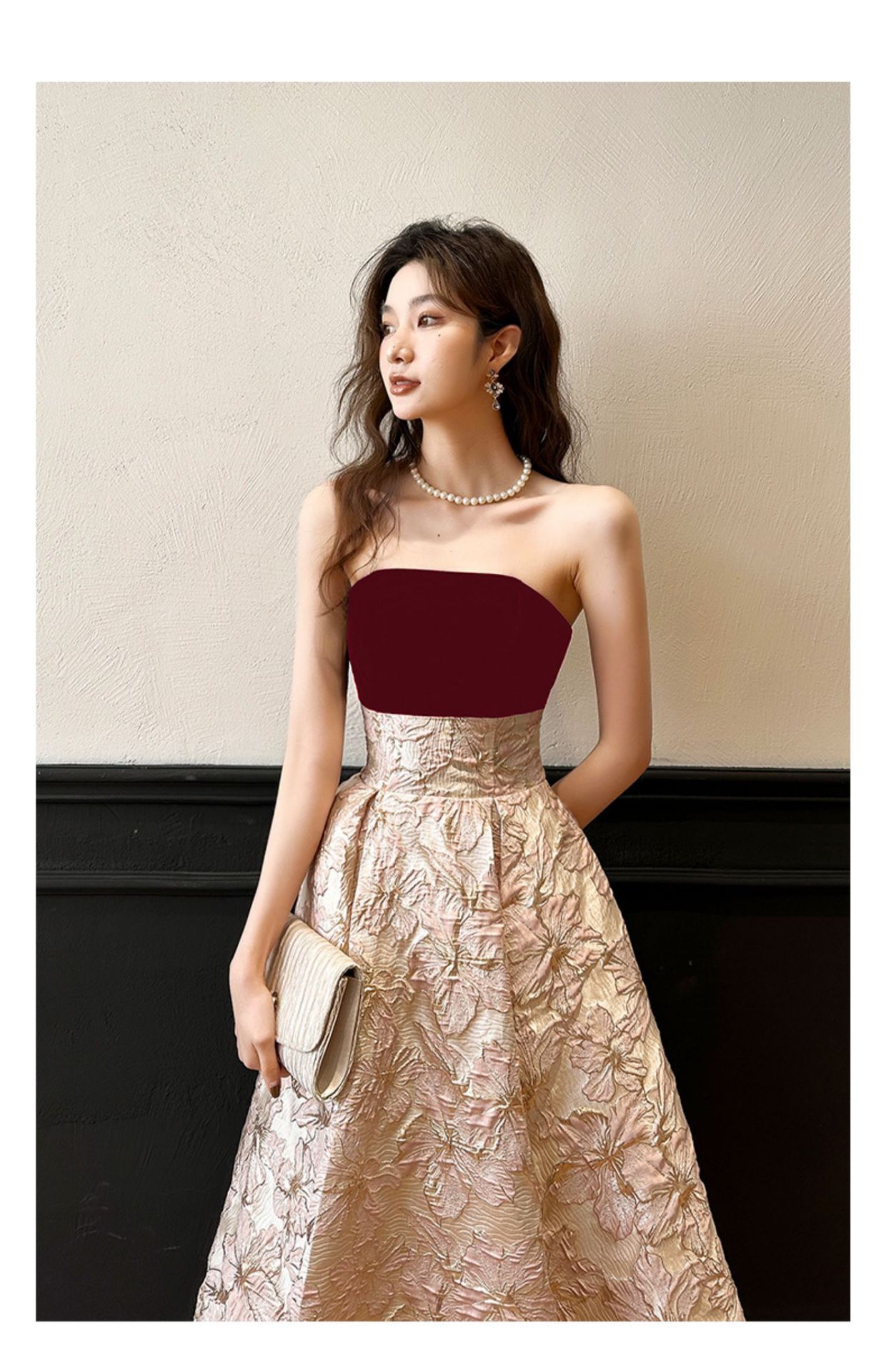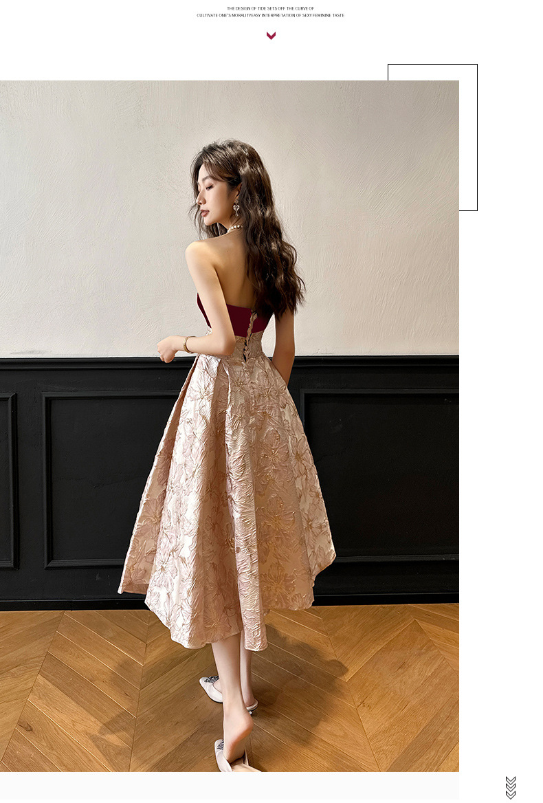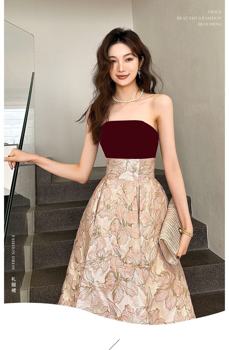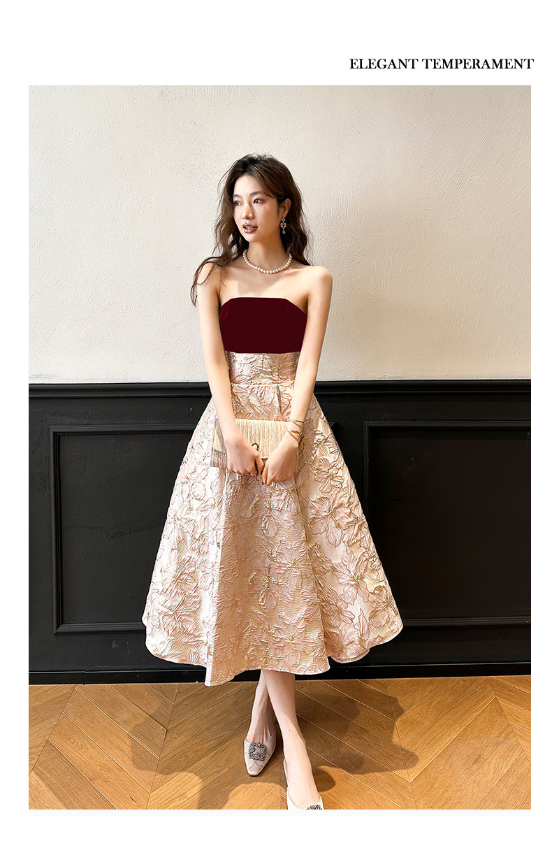 스트랩리스 작은 이브닝 드레스 2025 새로운 스타일의 가벼운 럭셔리 틈새 호스트 드레스 여성 성인식 졸업 이브닝 드레스스토어 가기