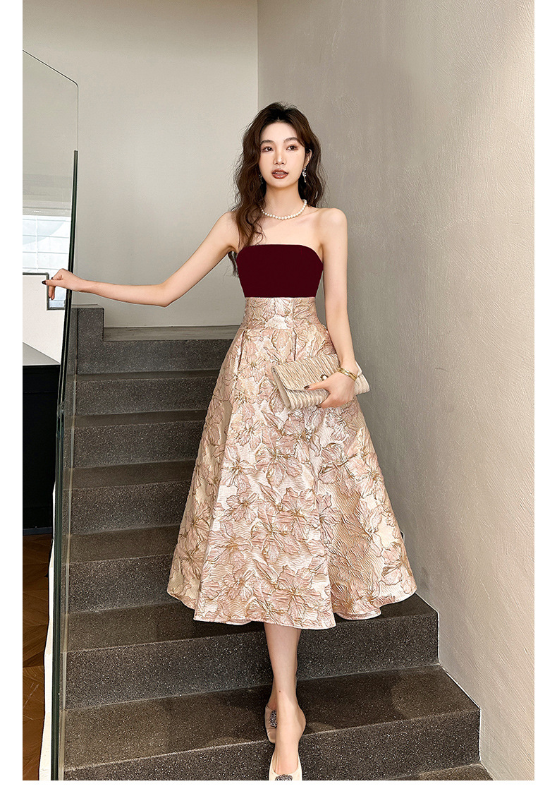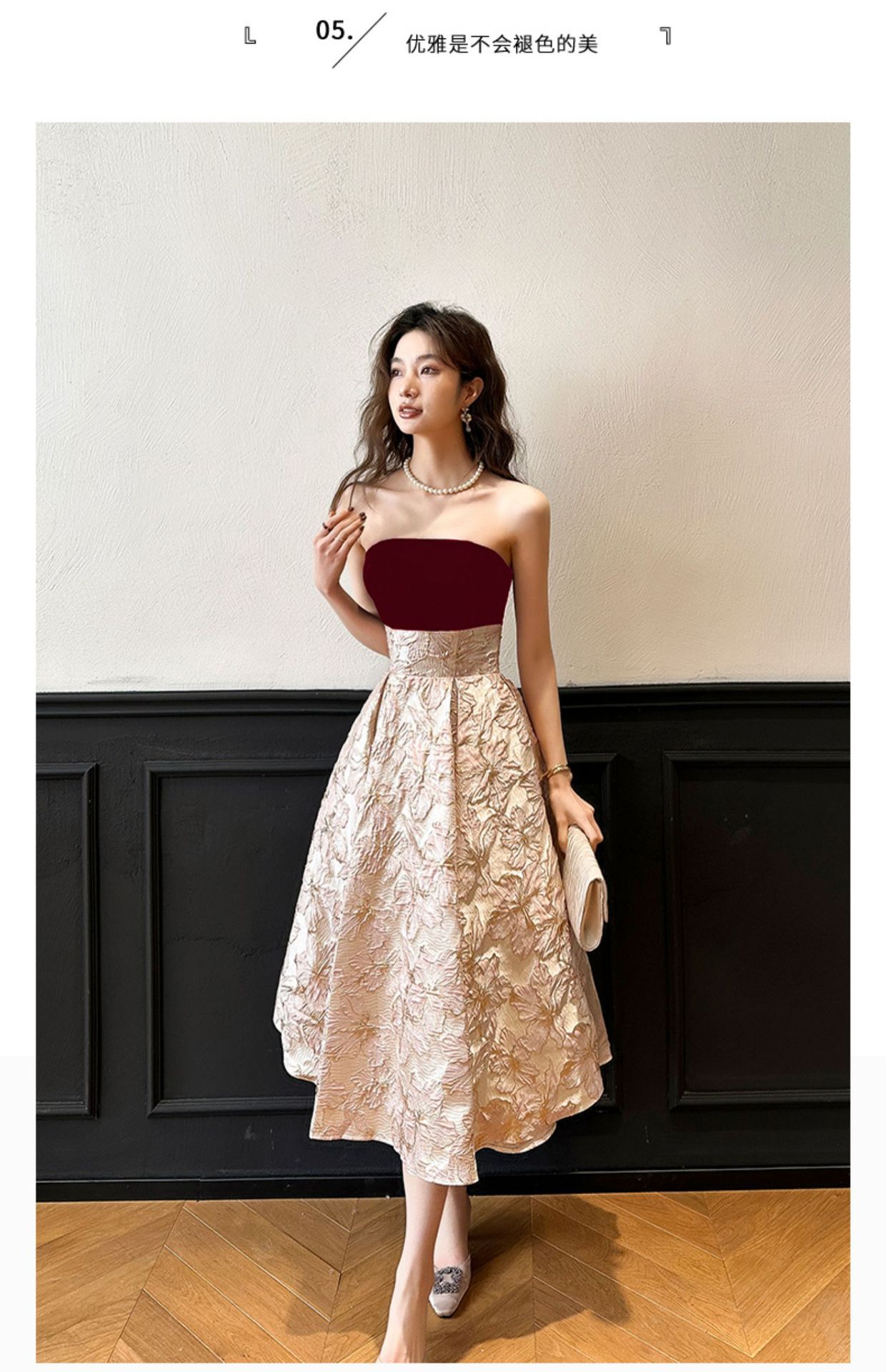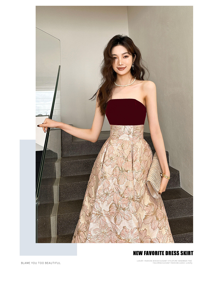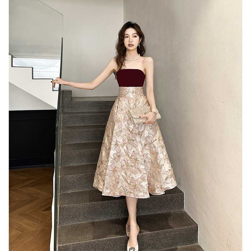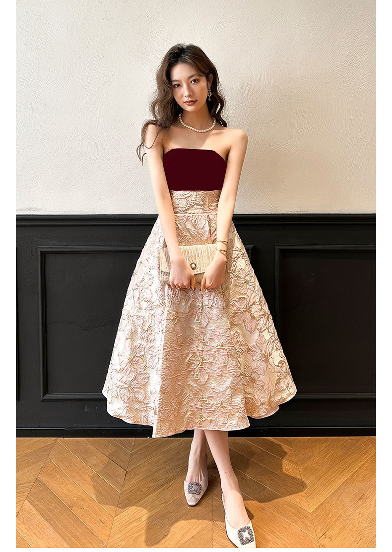스트랩리스 작은 이브닝 드레스 2025 새로운 스타일의 가벼운 럭셔리 틈새 호스트 드레스 여성 성인식 졸업 이브닝 드레스스토어 가기