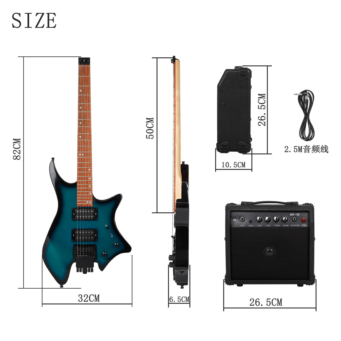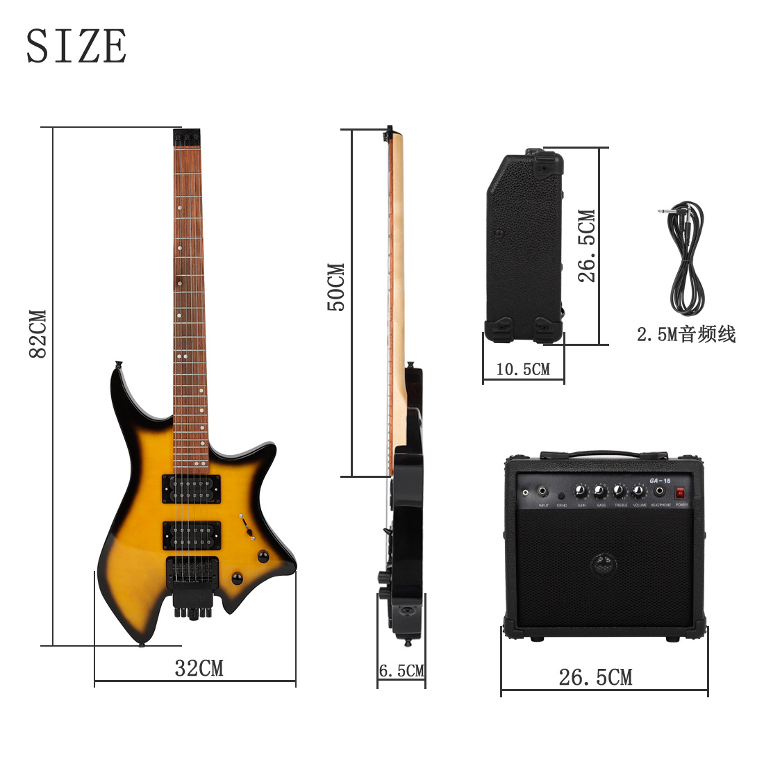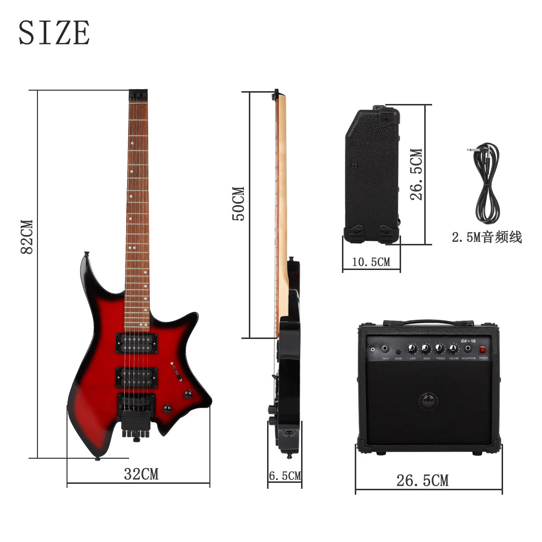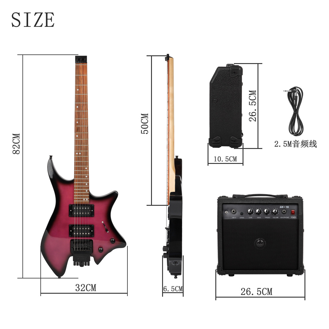 产品名称:R-700无头电吉他套装系列带音箱