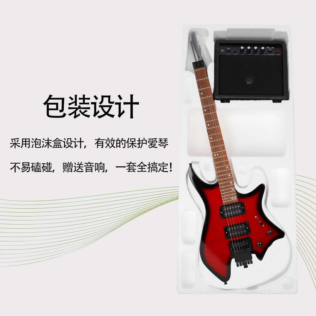 包装清单:吉他*1 音箱*1 音频线*1摇把*1 扳手*1