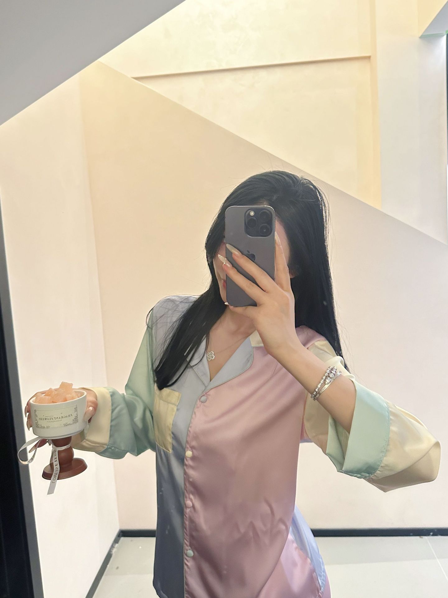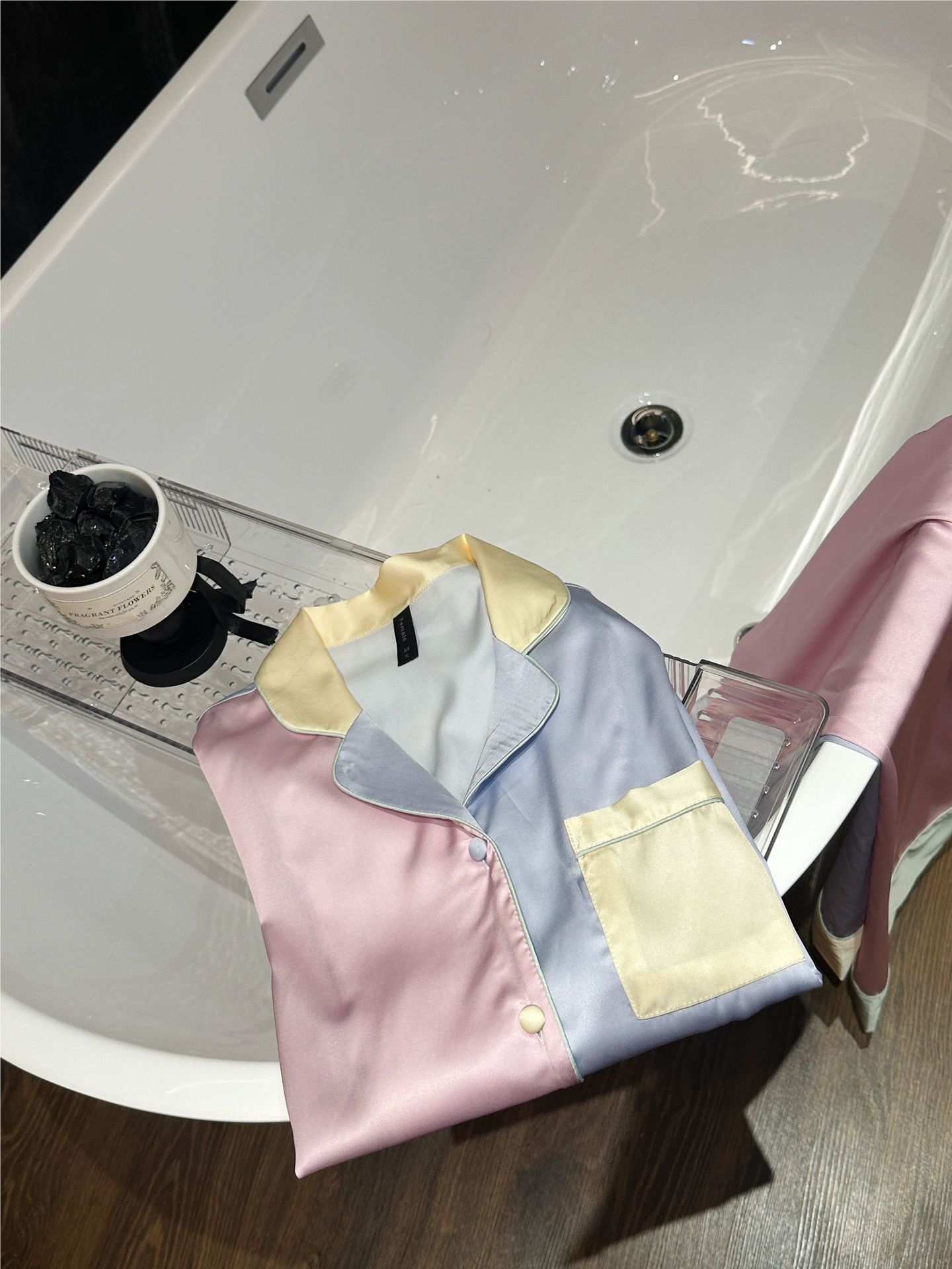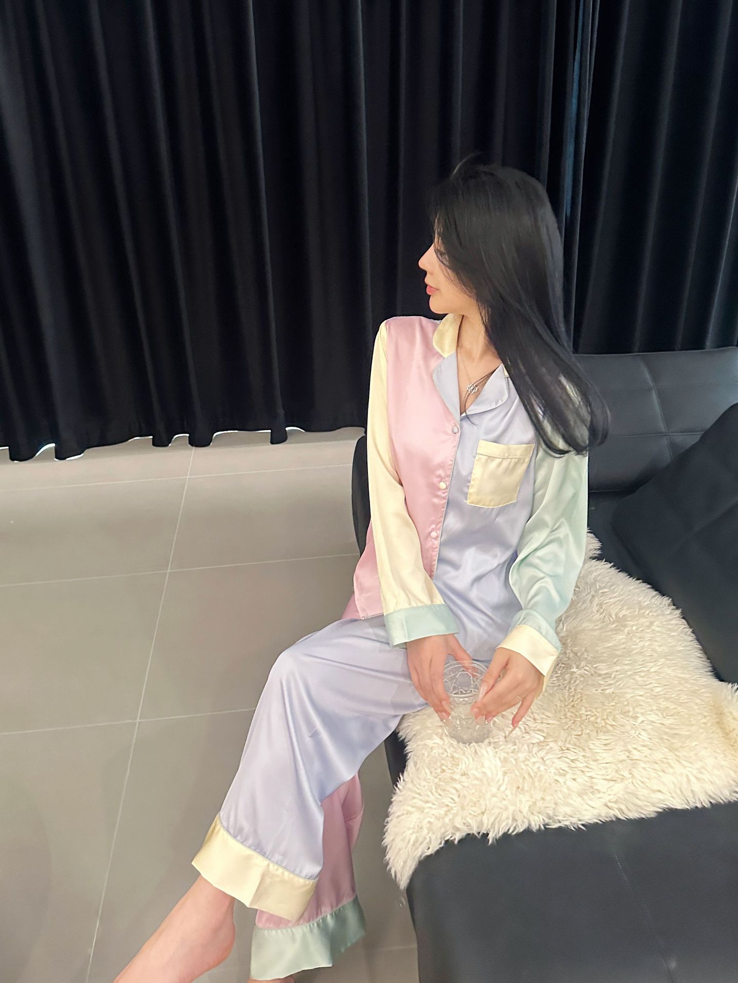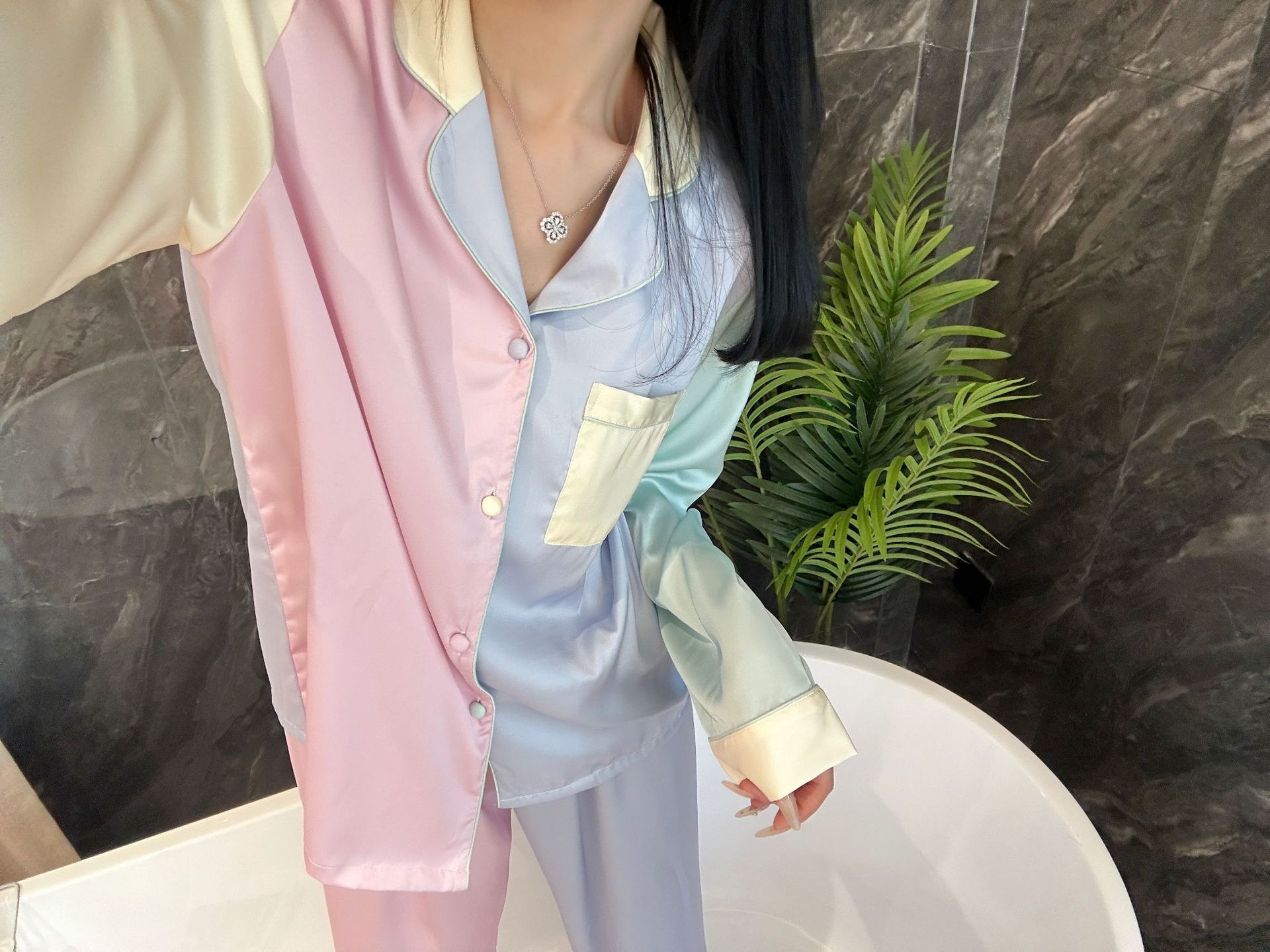 YASE【황윤귀리】황이메이와 같은 스타일의 새틴 배색 아이스 실크 여성용 잠옷, 고급스러운 외출복으로도 착용 가능
