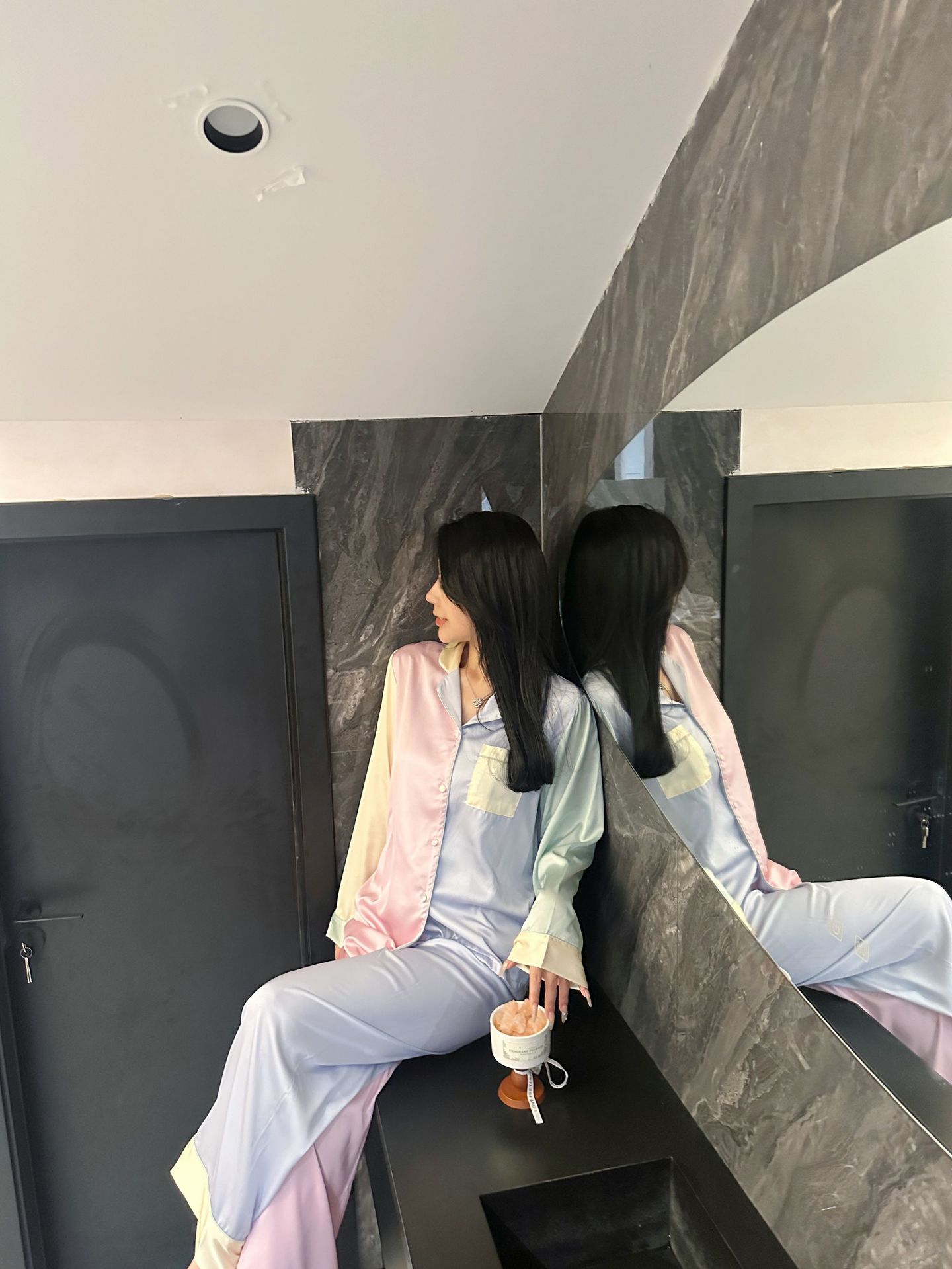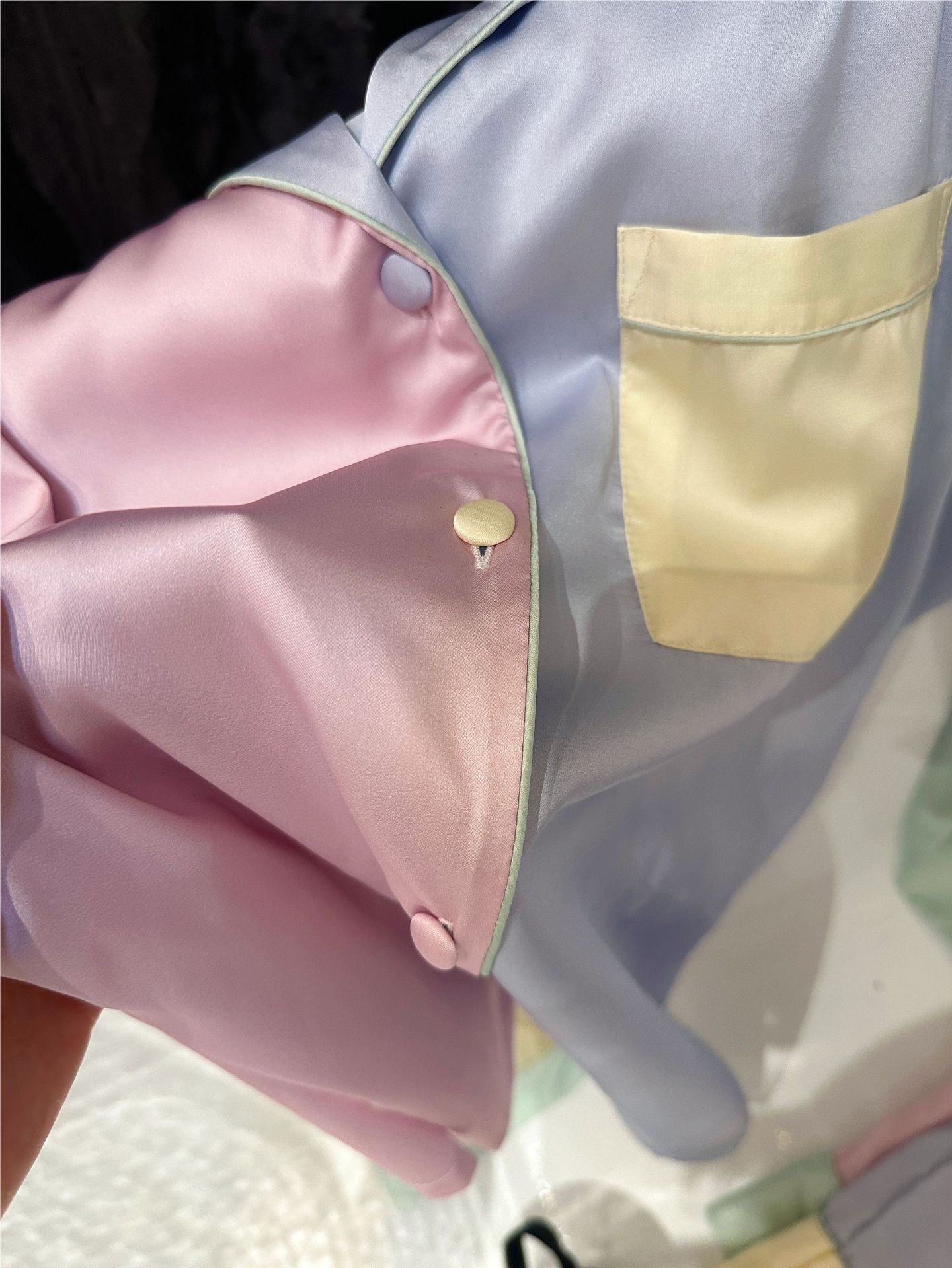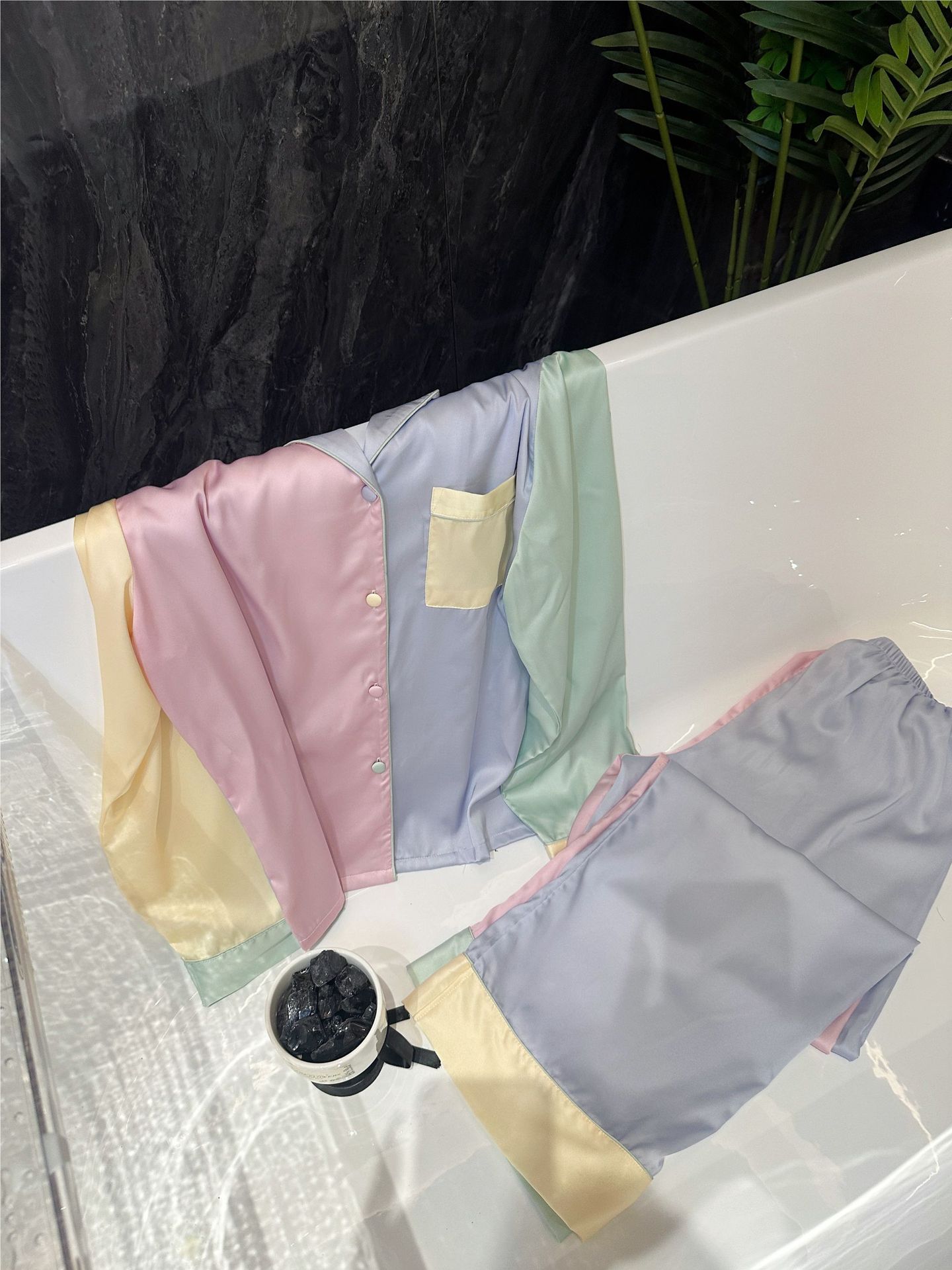 YASE【황윤귀리】황이메이와 같은 스타일의 새틴 배색 아이스 실크 여성용 잠옷, 고급스러운 외출복으로도 착용 가능