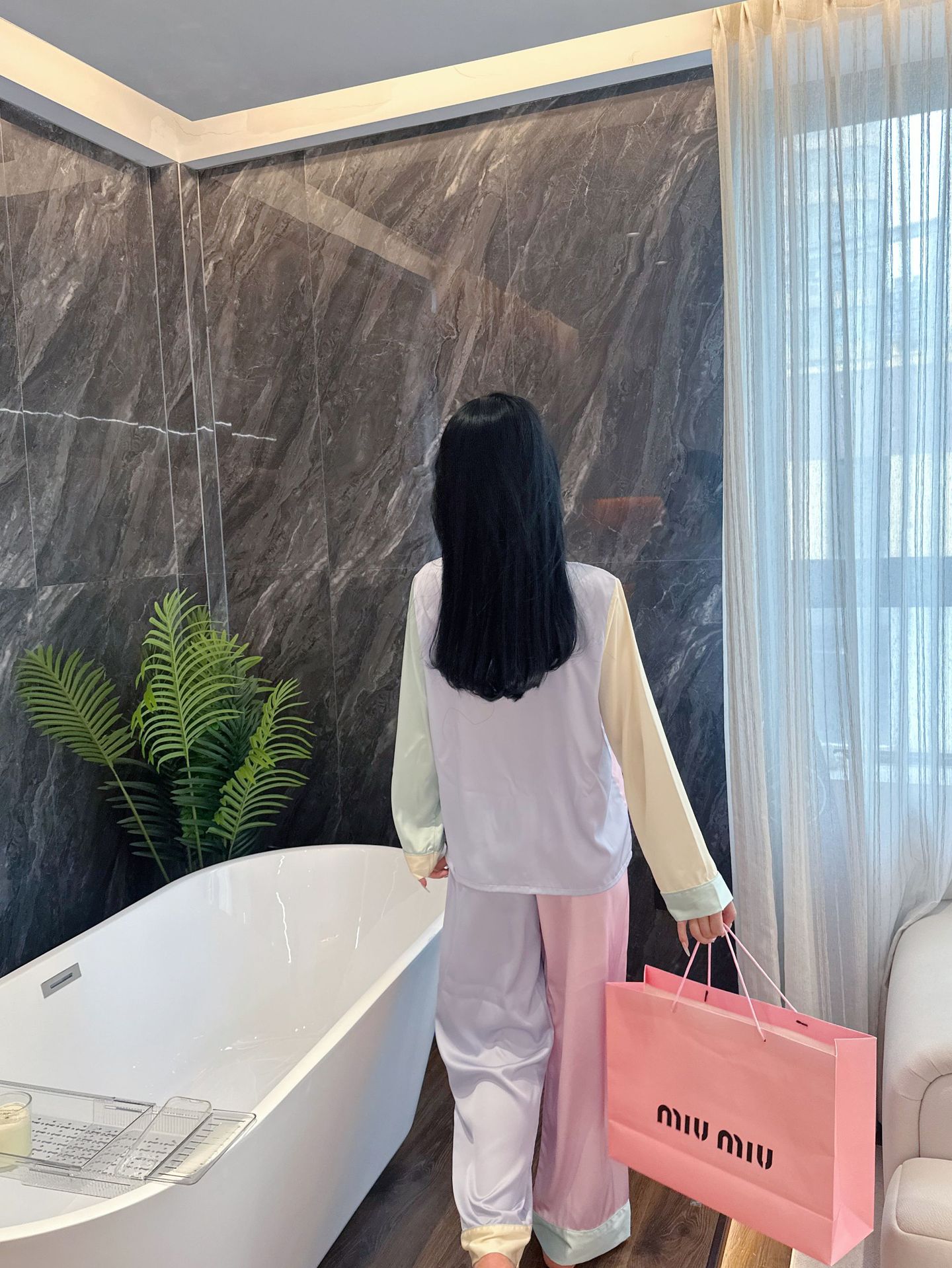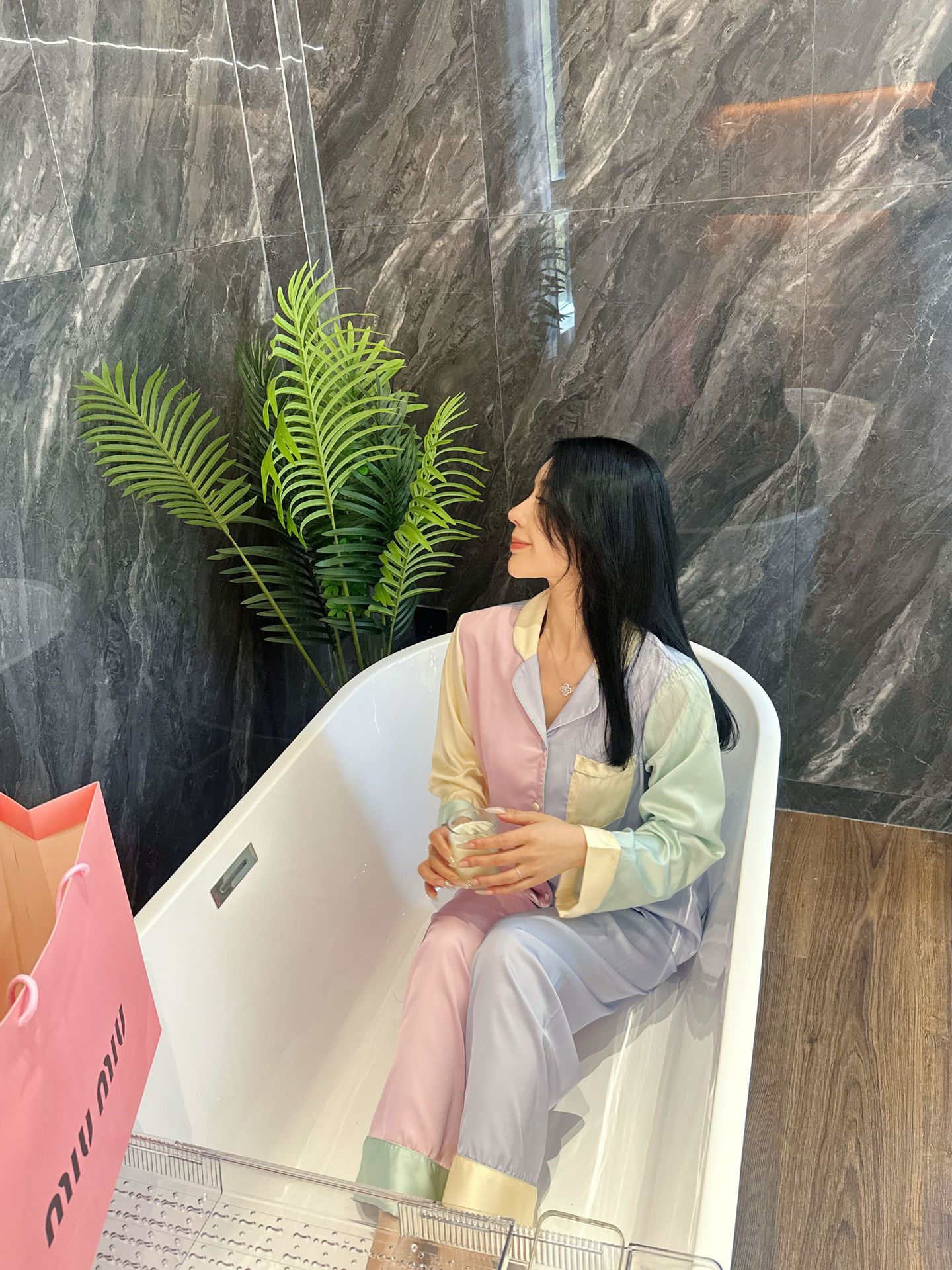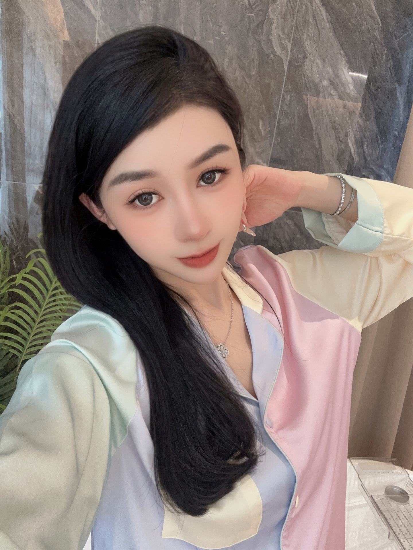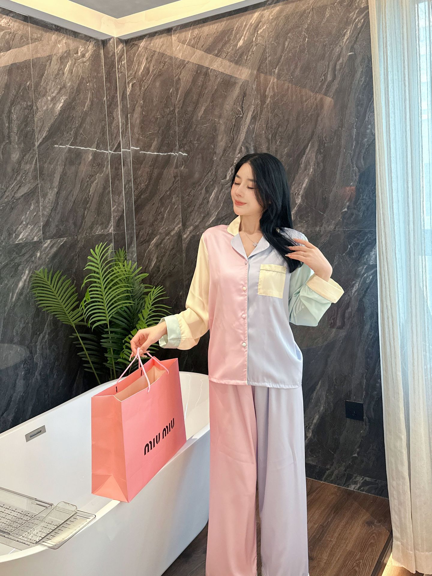 YASE【황윤귀리】황이메이와 같은 스타일의 새틴 배색 아이스 실크 여성용 잠옷, 고급스러운 외출복으로도 착용 가능