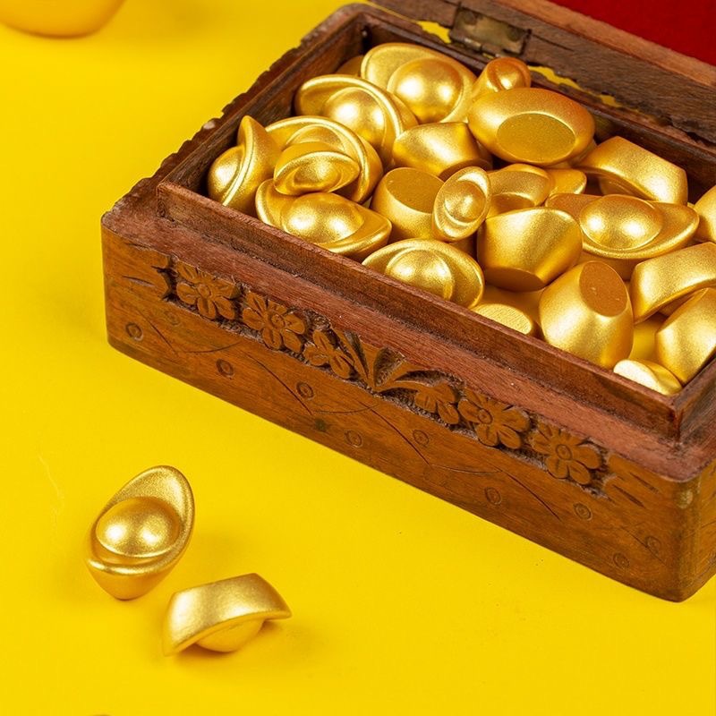 Shazin Yuanbao 솔리드 모조 골드 작은 Yuanbao 중국 스타일 거실 장식 오프닝 집들이 선물 운세 만들기 풍수 장식품스토어 가기