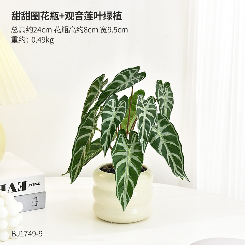 • 도넛 꽃병 관음 연꽃 잎 녹색 식물
