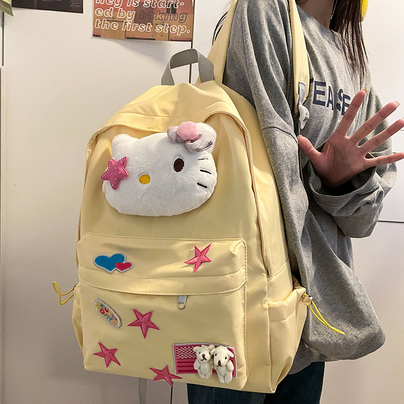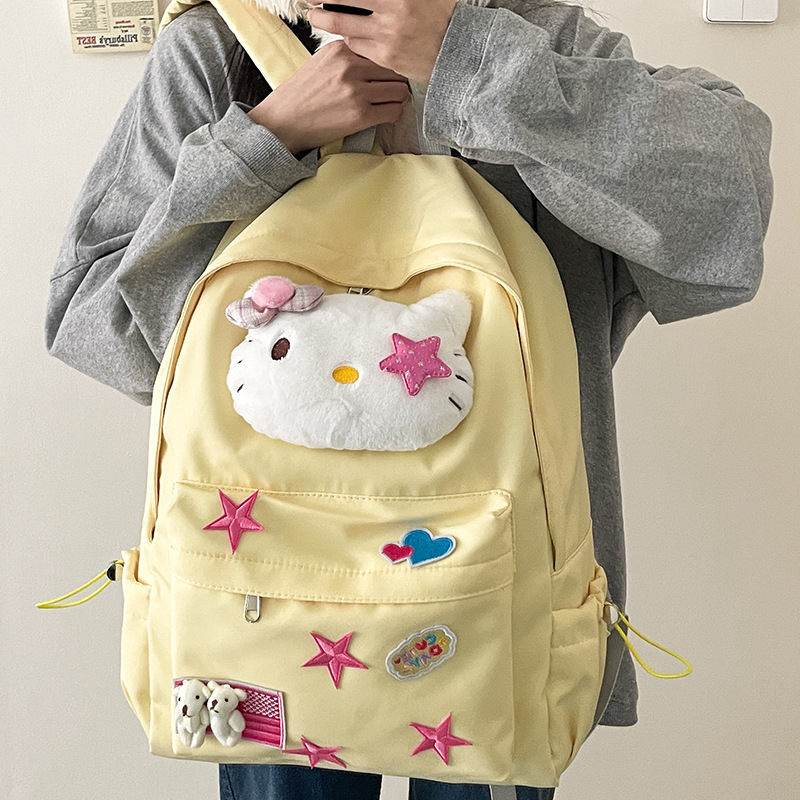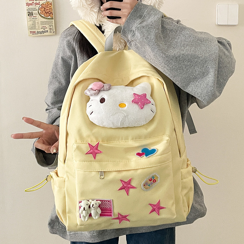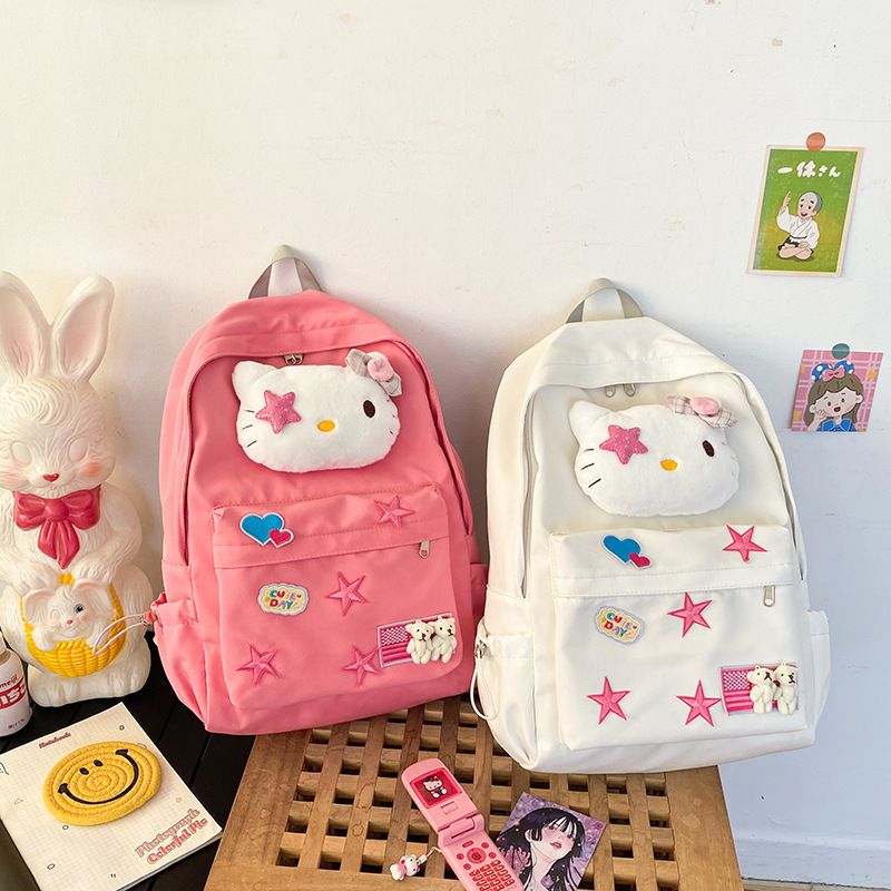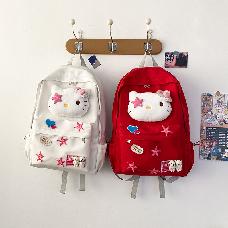 2025 원래 schoolbag y2k 귀여운 어린애 같은 키티 부드러운 소녀 달콤한 배낭 학생 소녀 뜨거운 소녀 스타 schoolbag