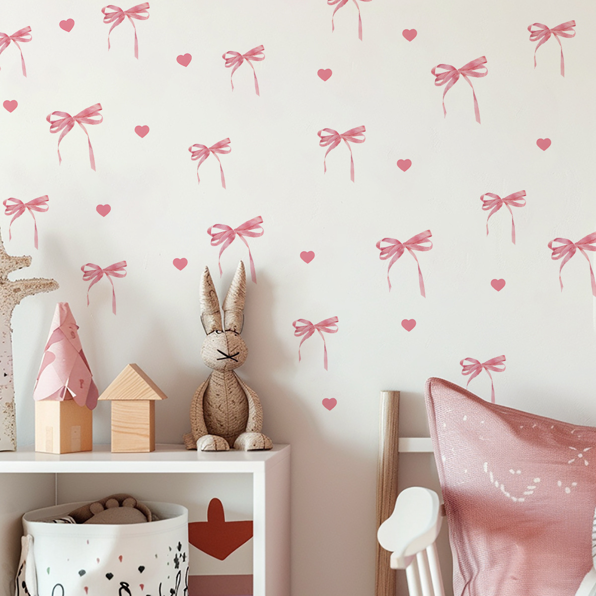 새로운 ACC32103 창조적 인 핑크 활 스티커 옷장 스티커 소녀 심장 침실 벽 스티커 사랑 사진스토어 가기