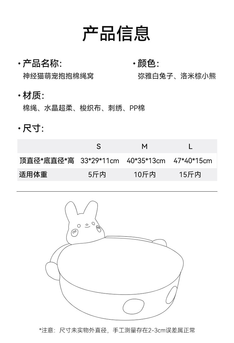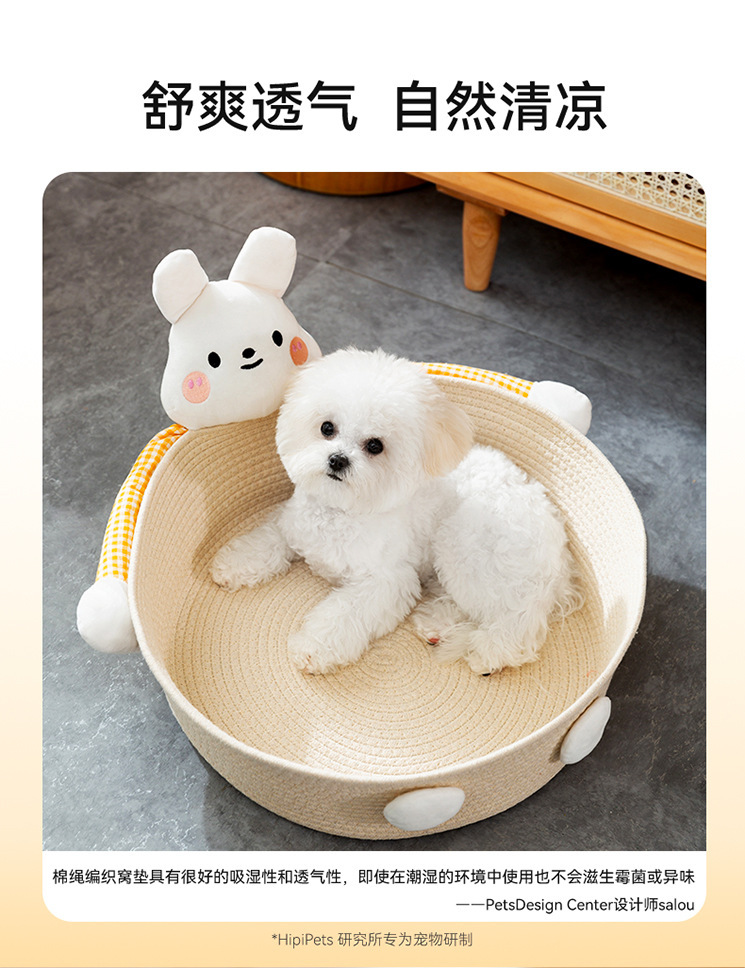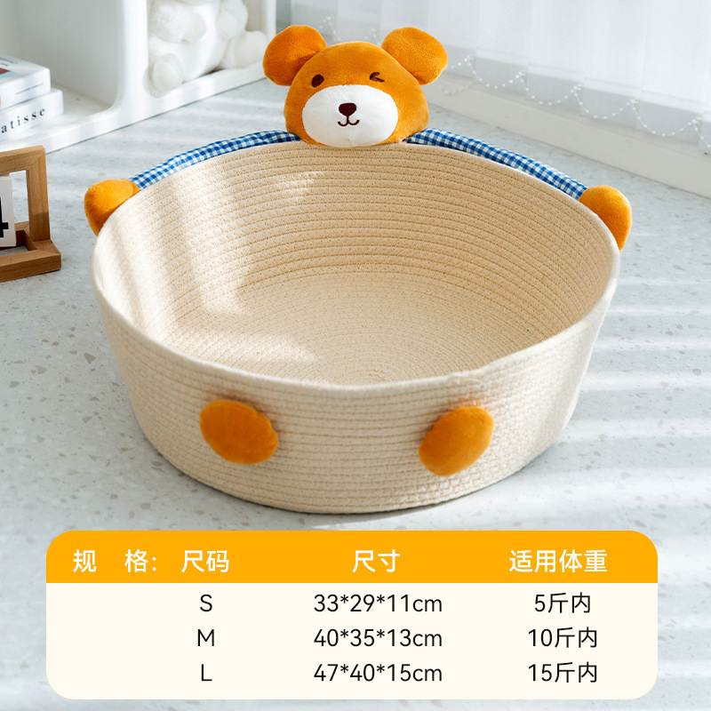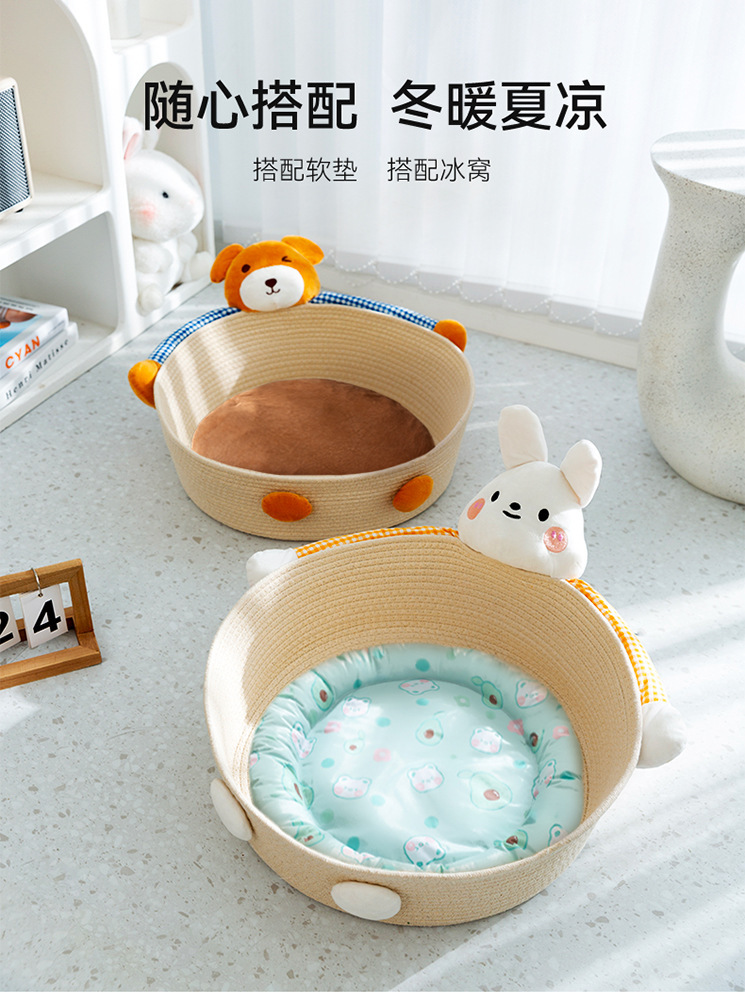 귀여운 애완 동물 곰 여름 통기성 코튼 로프 개 사육장 중소 규모 개 고양이 사계절 밧줄 개 매트 고양이 사육장스토어 가기