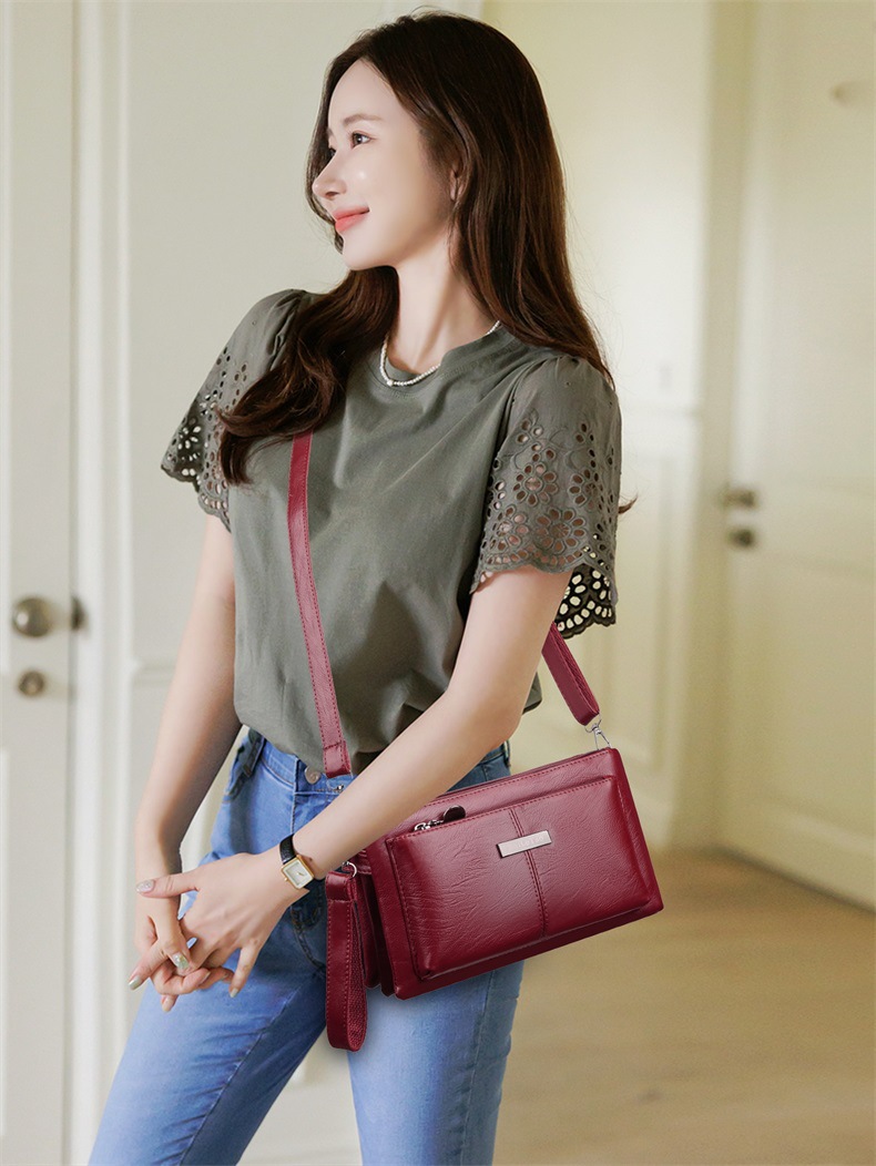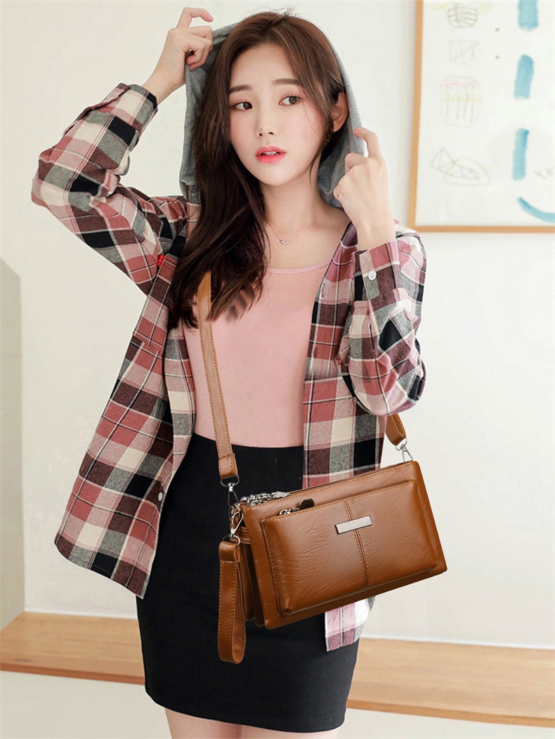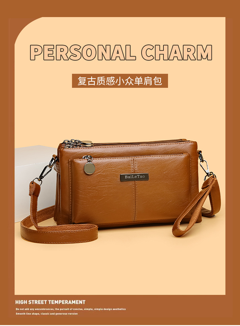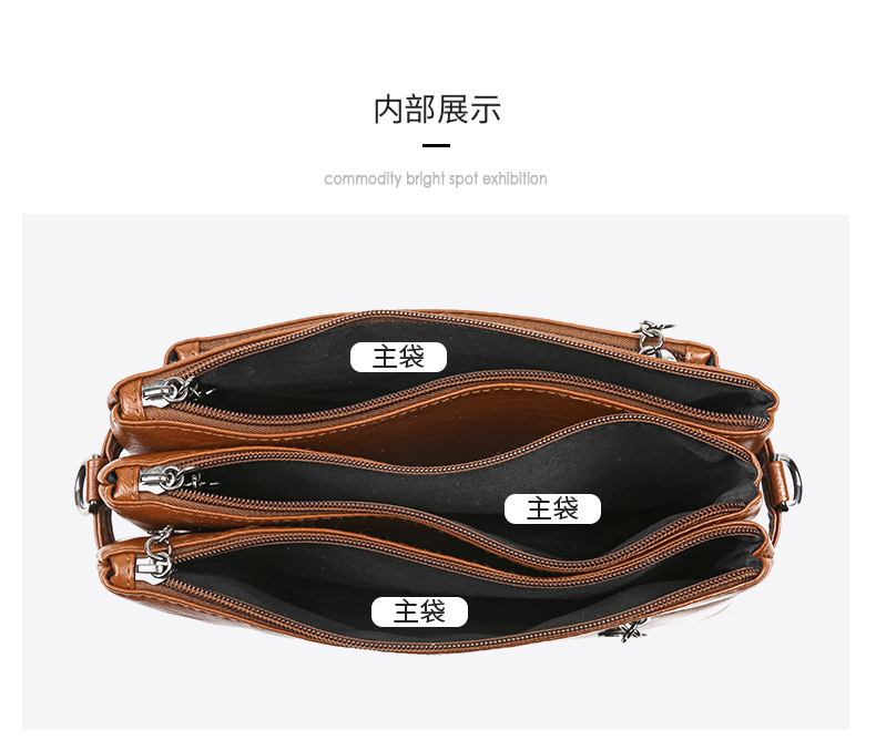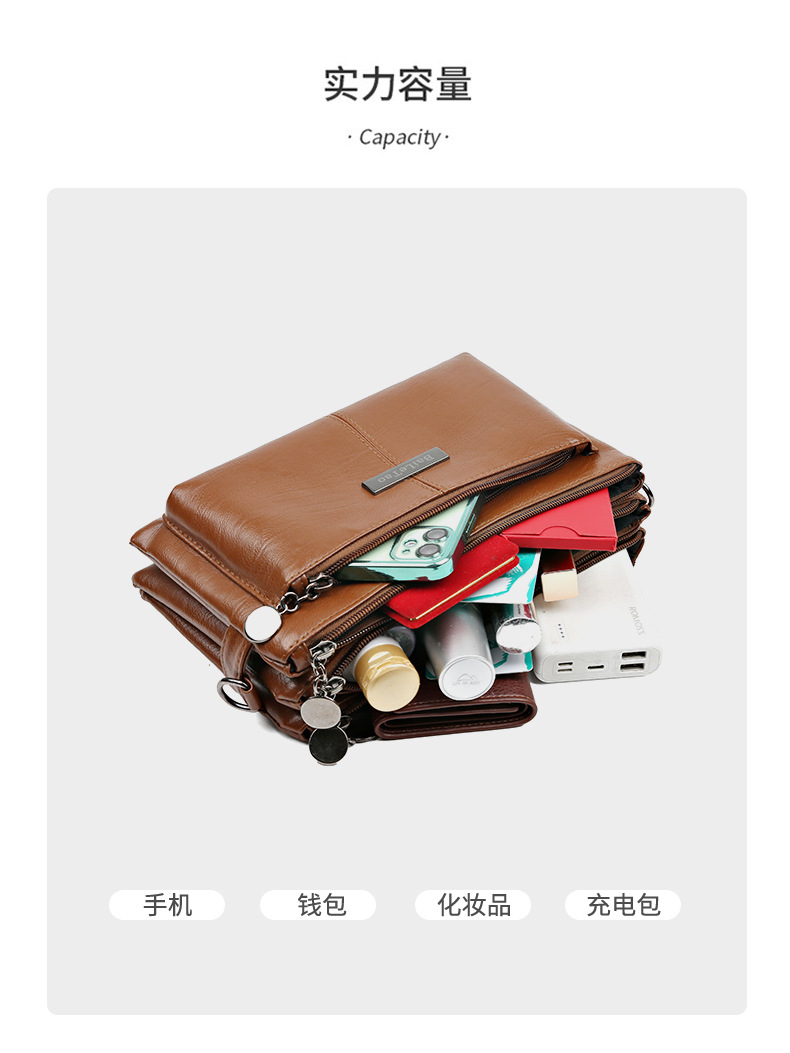 빈티지 텍스처 틈새 어깨 가방 2024 새로운 통근 크로스 바디 백 대용량 3 층 지퍼 핸드백