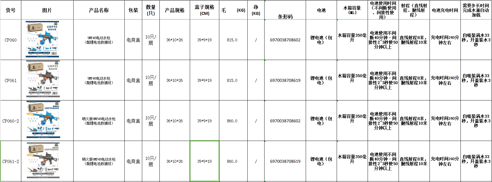 • 전자 상거래 box-CP061-2-gray-fire-breathing 버전 UMP45 전기 물총 (리튬 배터리 데이터 케이블 포함)