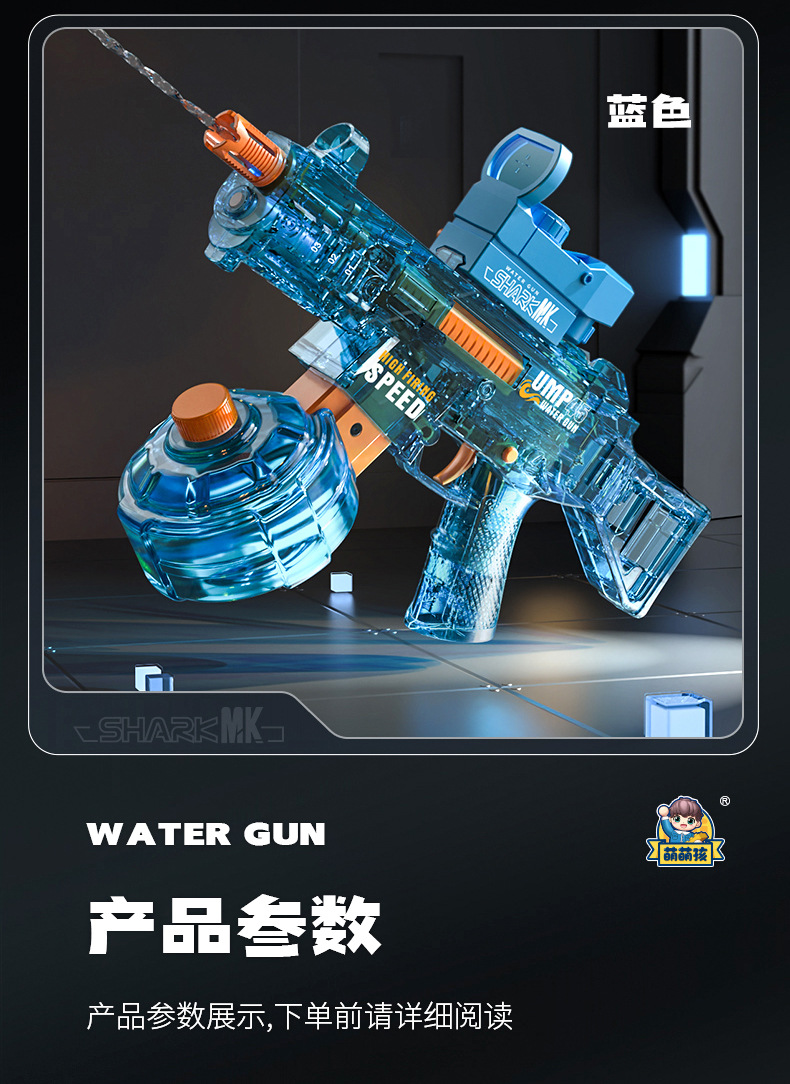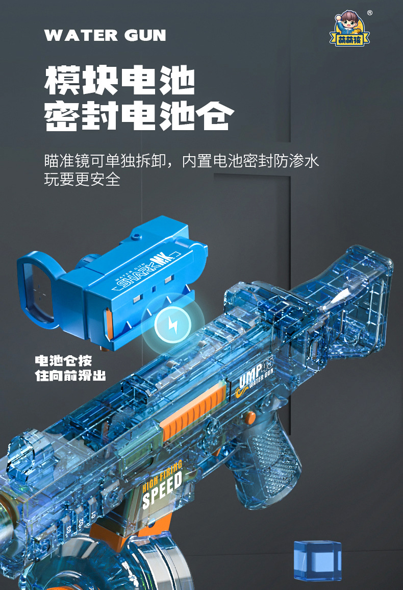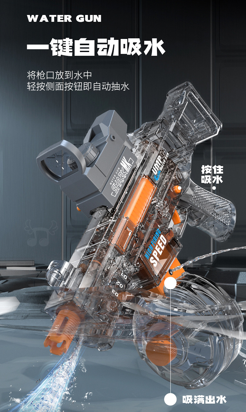 Mengmeng 어린이 새로운 전기 물 총 UMP45 대용량 원 버튼 물 스프레이 물 총 장난감 도매스토어 가기