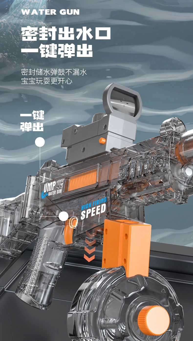 Mengmeng 어린이 새로운 전기 물 총 UMP45 대용량 원 버튼 물 스프레이 물 총 장난감 도매