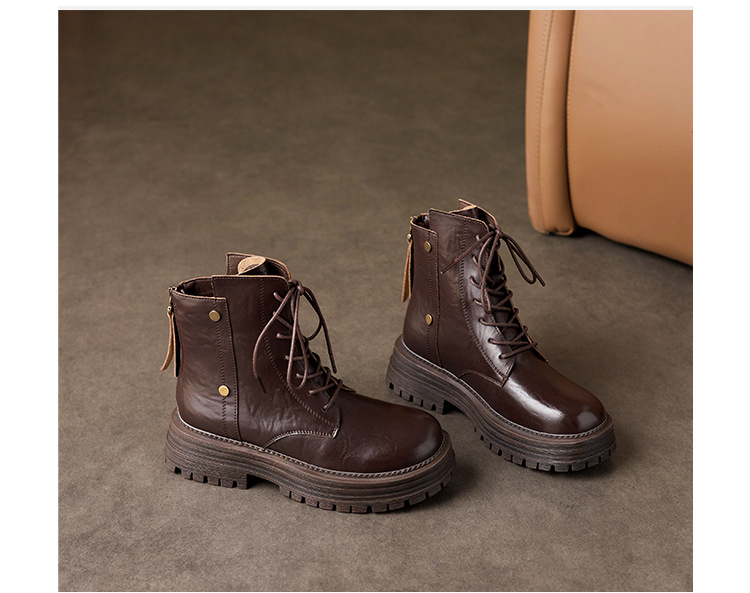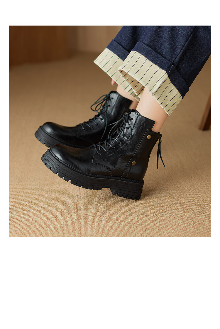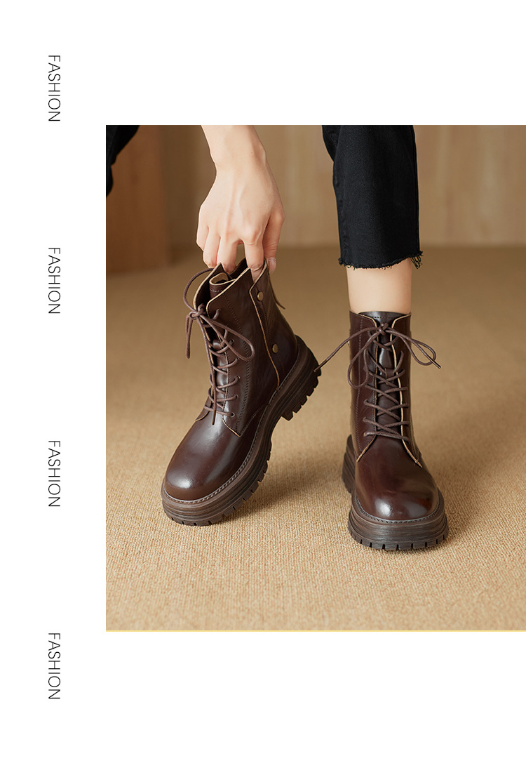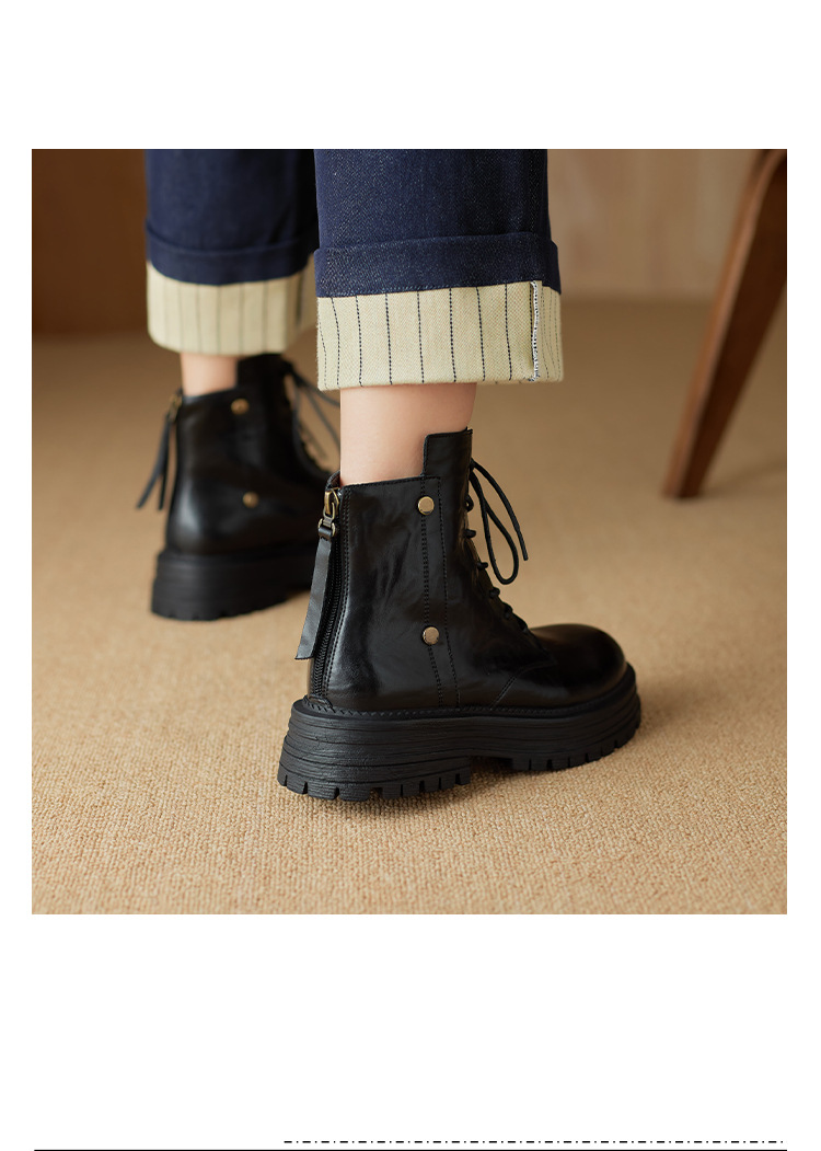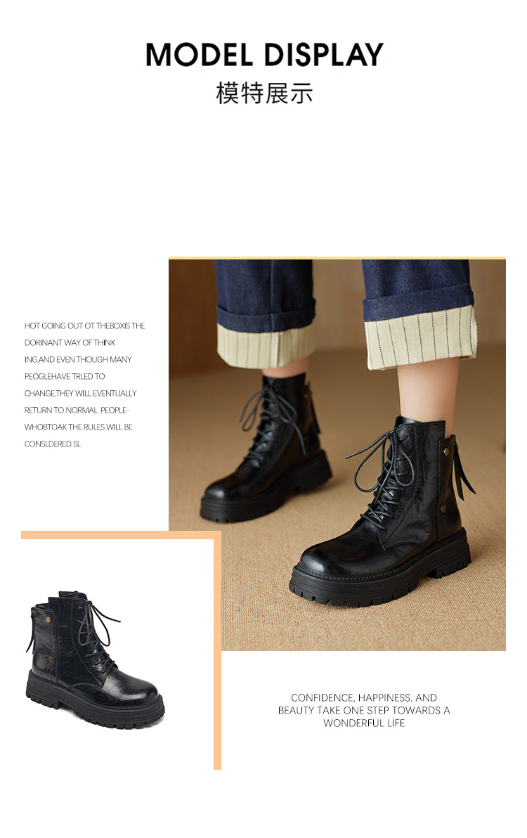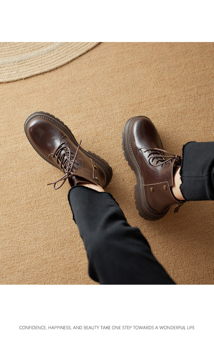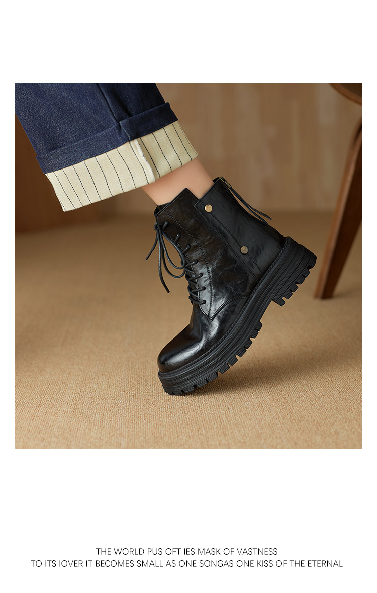 여성용 소가죽 마틴 부츠 2025 신상 가을 겨울 기모 두꺼운 밑창 두꺼운 굽 레트로 주름 바이커 부츠 인기 숏부츠스토어 가기