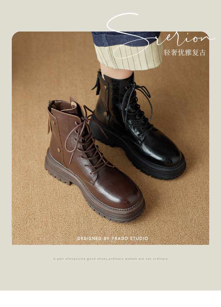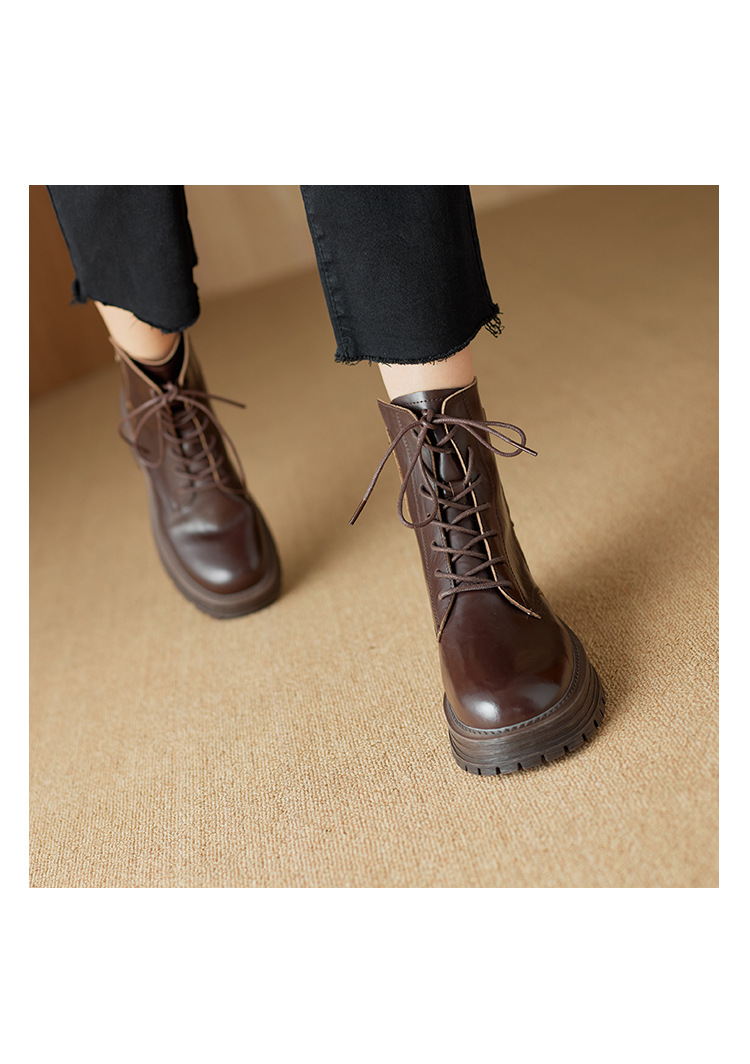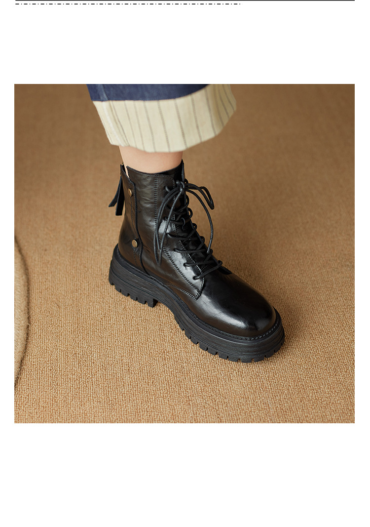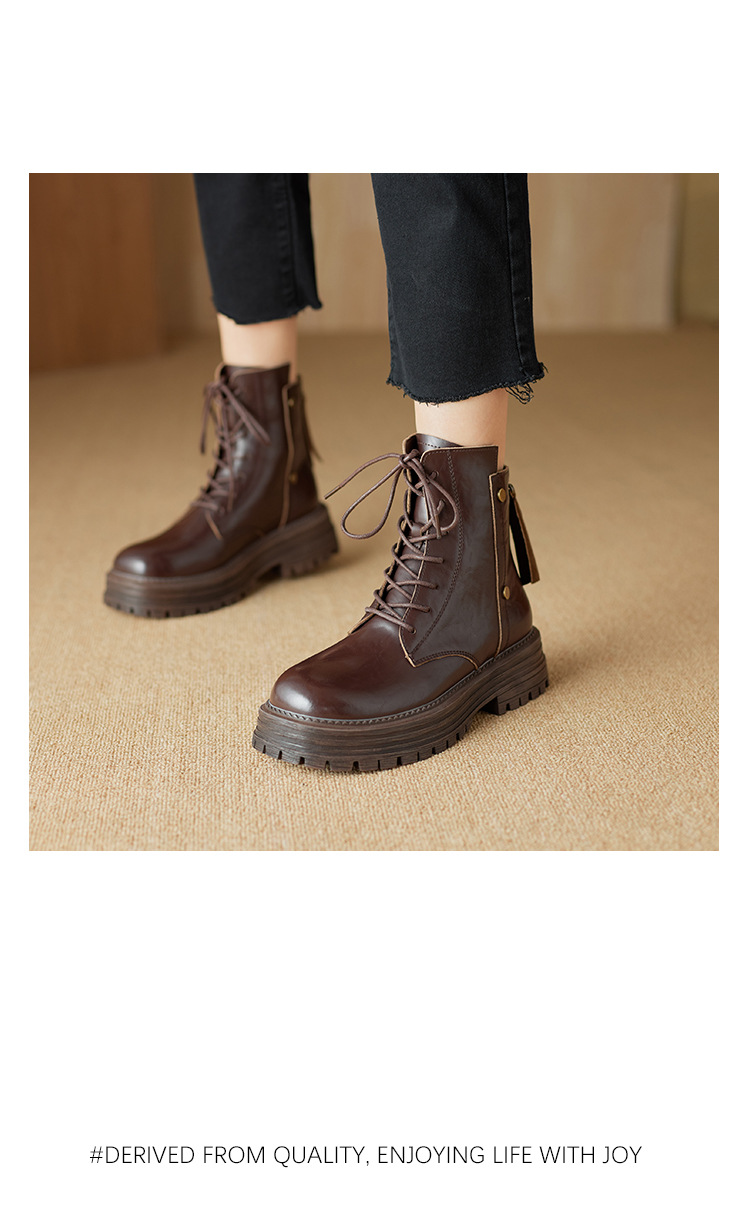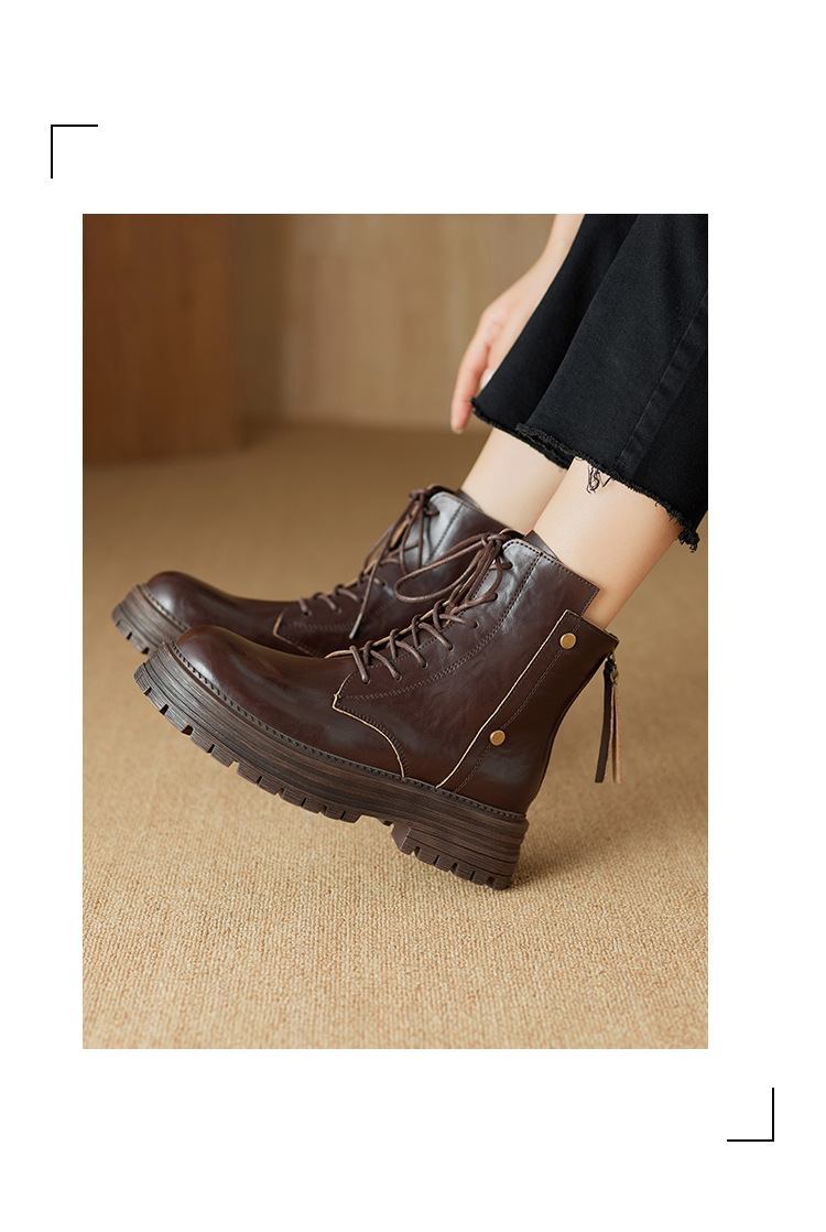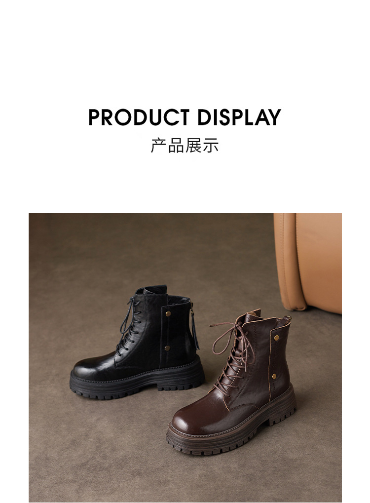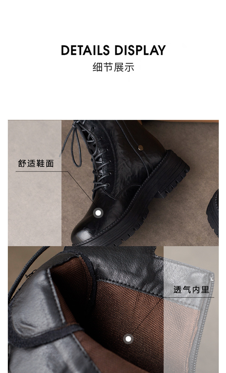 여성용 소가죽 마틴 부츠 2025 신상 가을 겨울 기모 두꺼운 밑창 두꺼운 굽 레트로 주름 바이커 부츠 인기 숏부츠스토어 가기