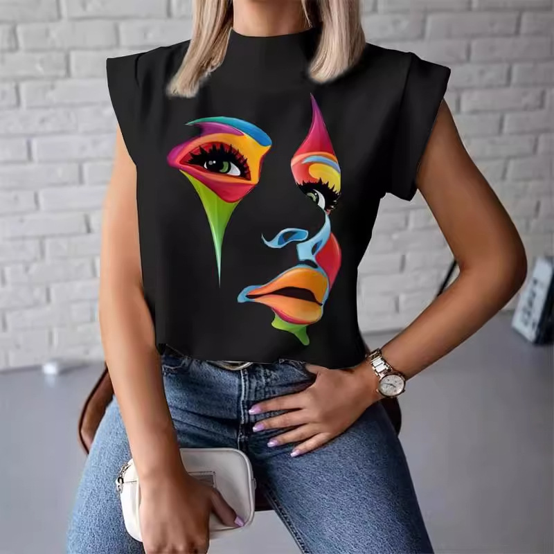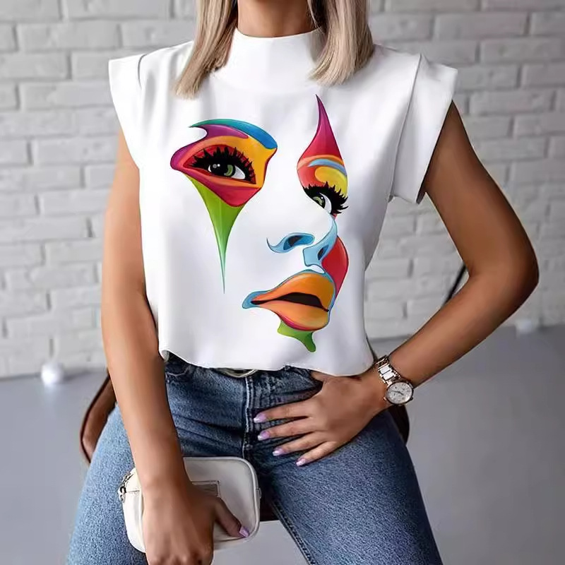 2024 새로운 대외 무역 아마존 인기 반 거북이 칼라 반팔 티셔츠 여성 패션 캐주얼 짧은 스타일스토어 가기
