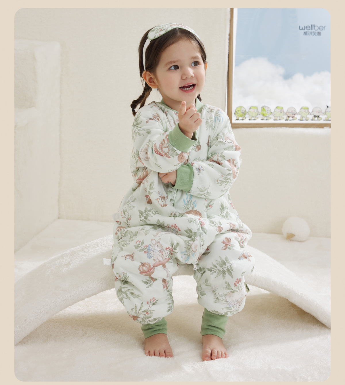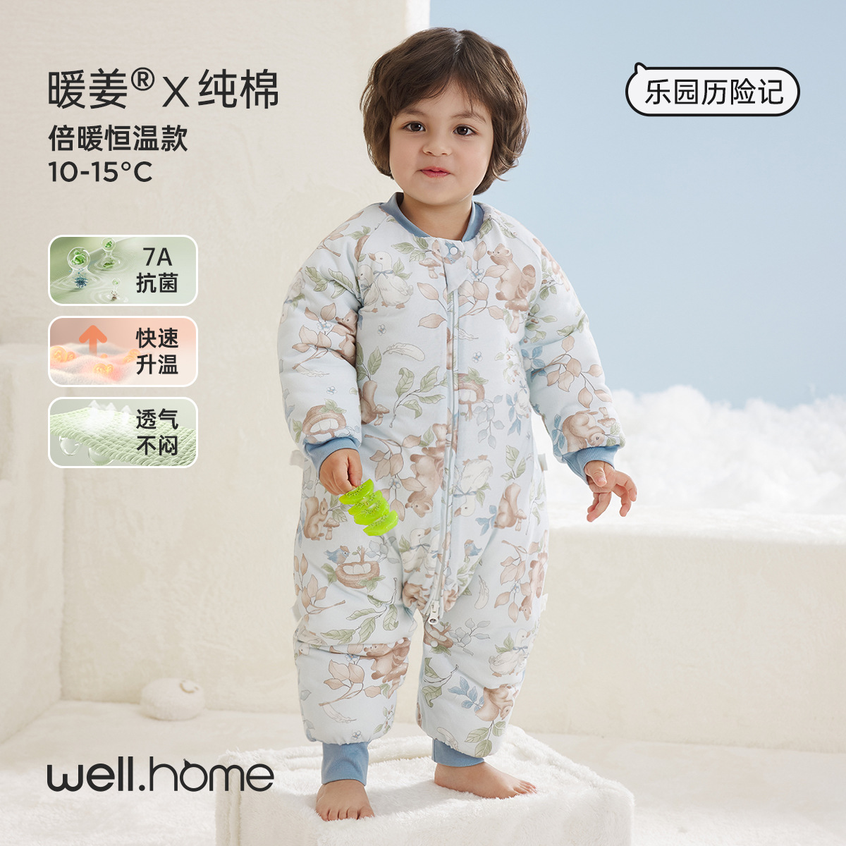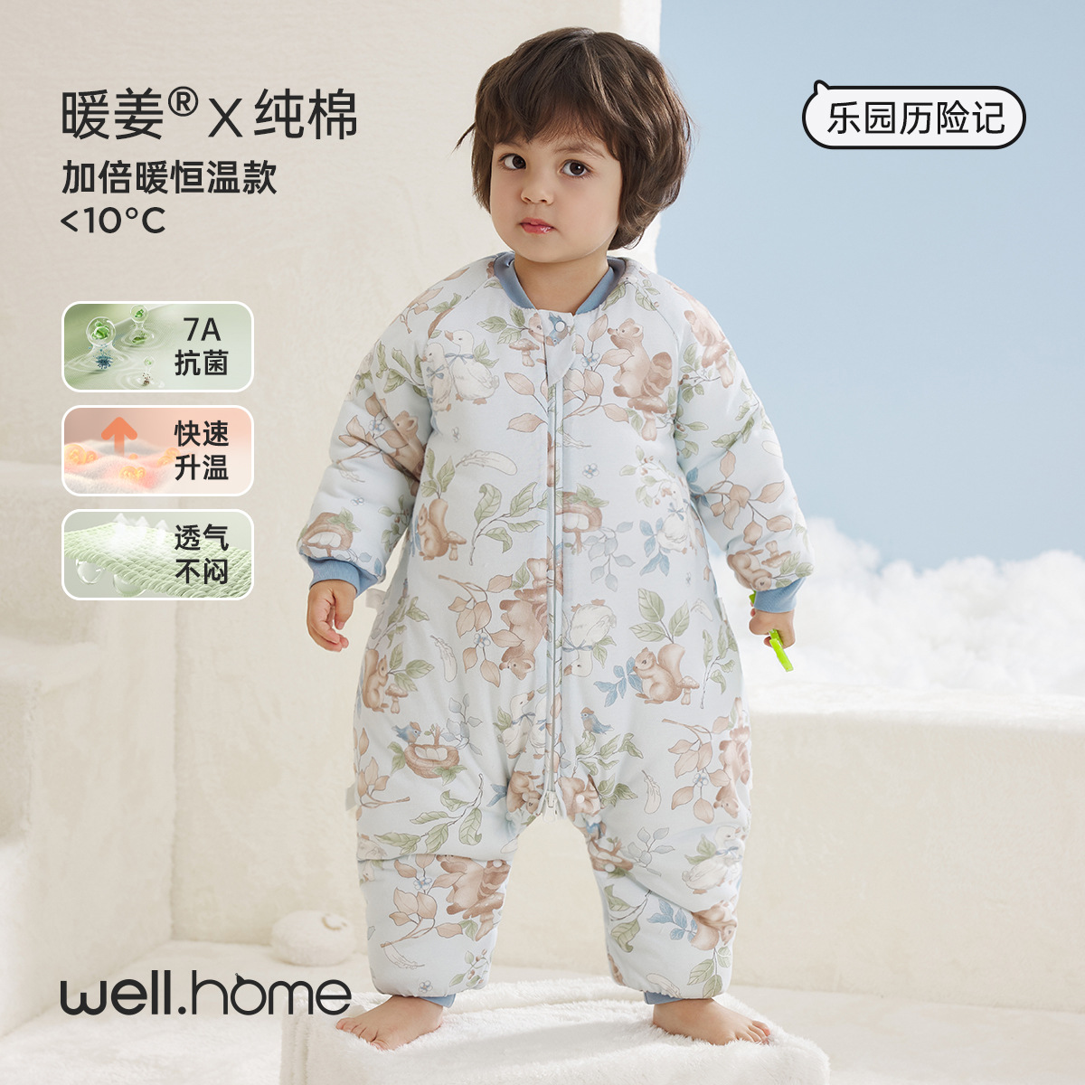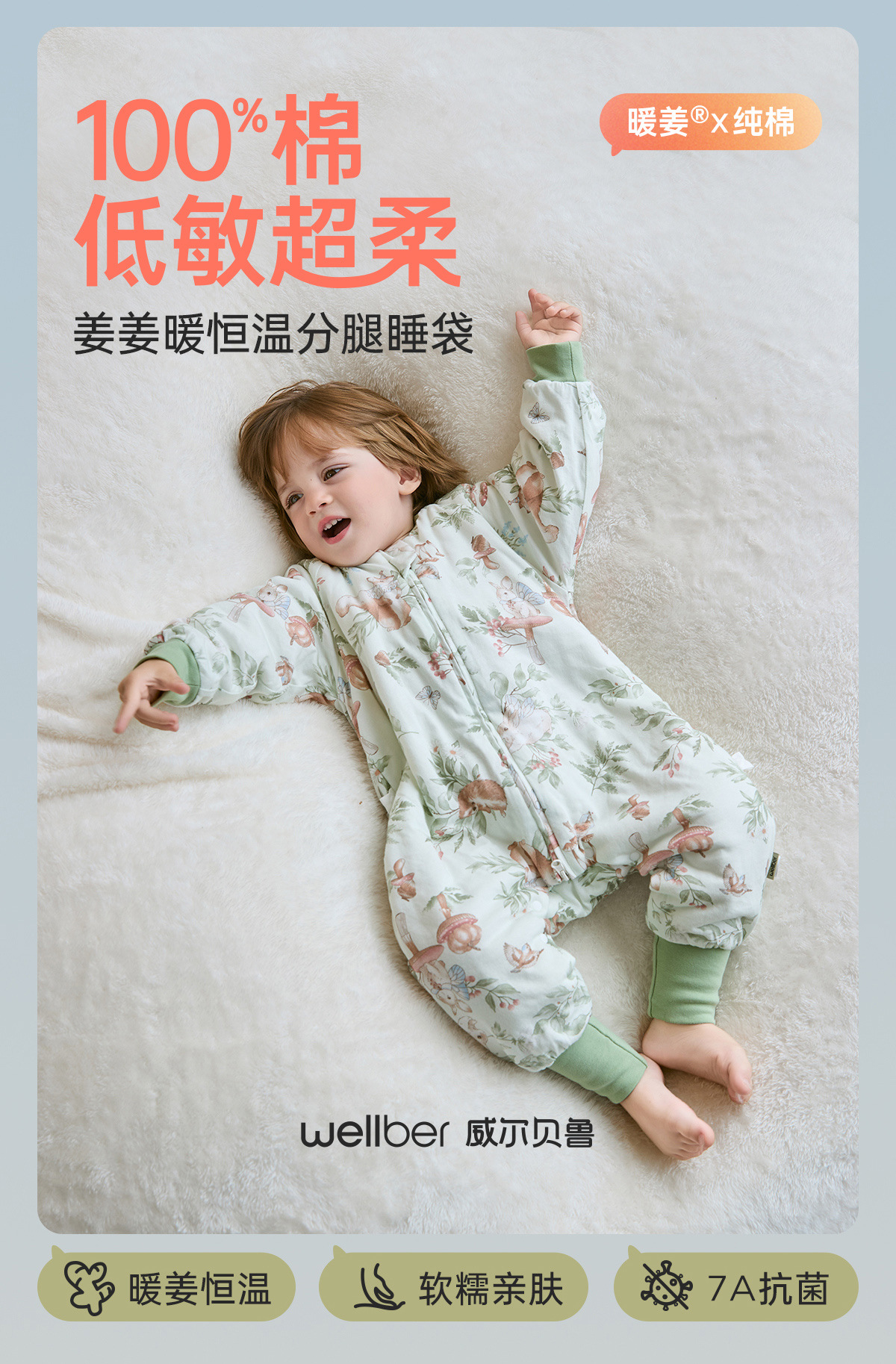 웰베루 아기 침낭 25년 신상 가을 겨울 신상 A급 다리 분리형 발차기 방지 이불 순면 항균 및 보온
