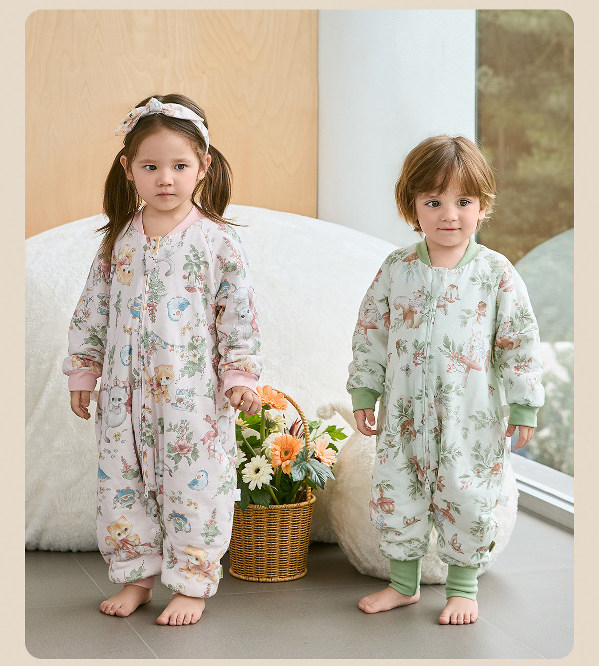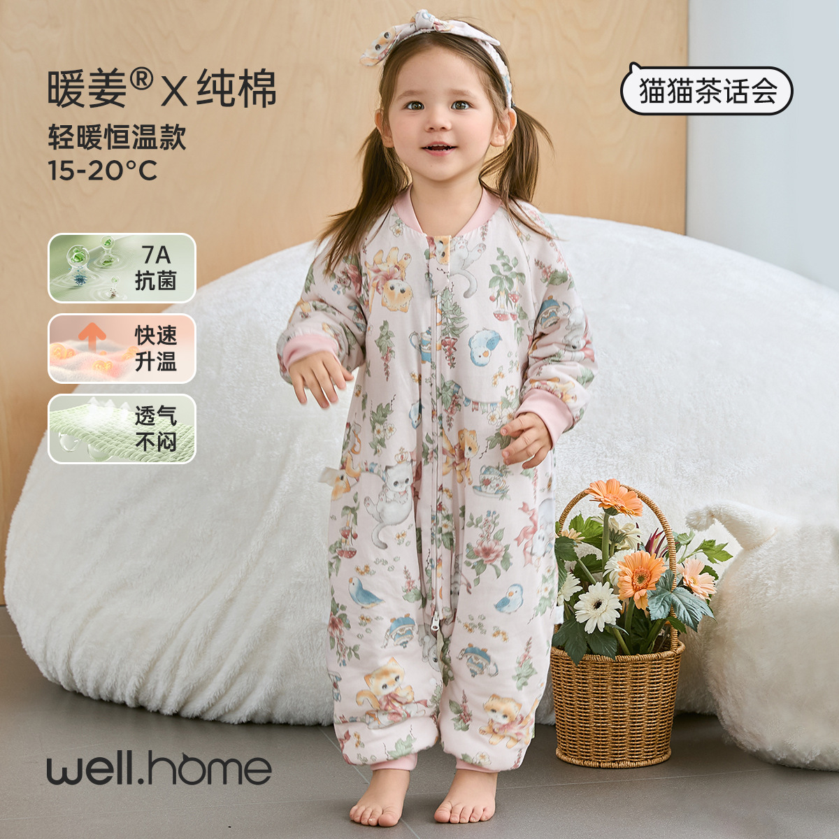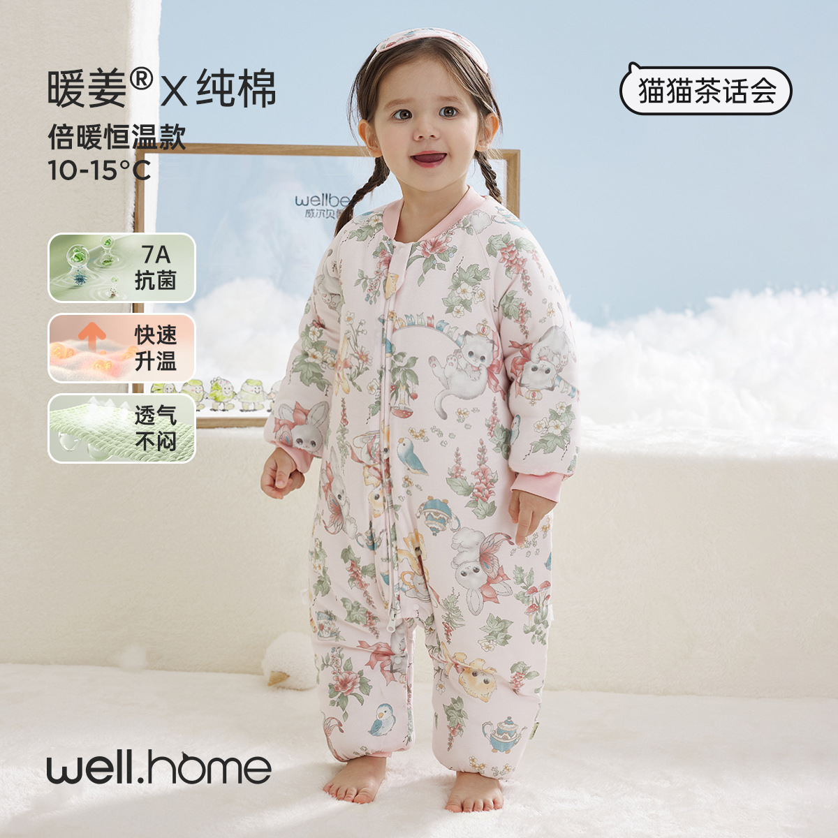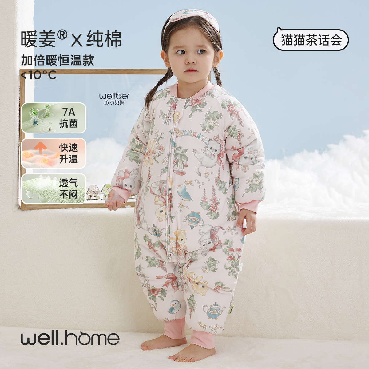 웰베루 아기 침낭 25년 신상 가을 겨울 신상 A급 다리 분리형 발차기 방지 이불 순면 항균 및 보온