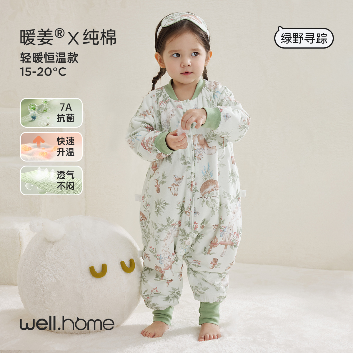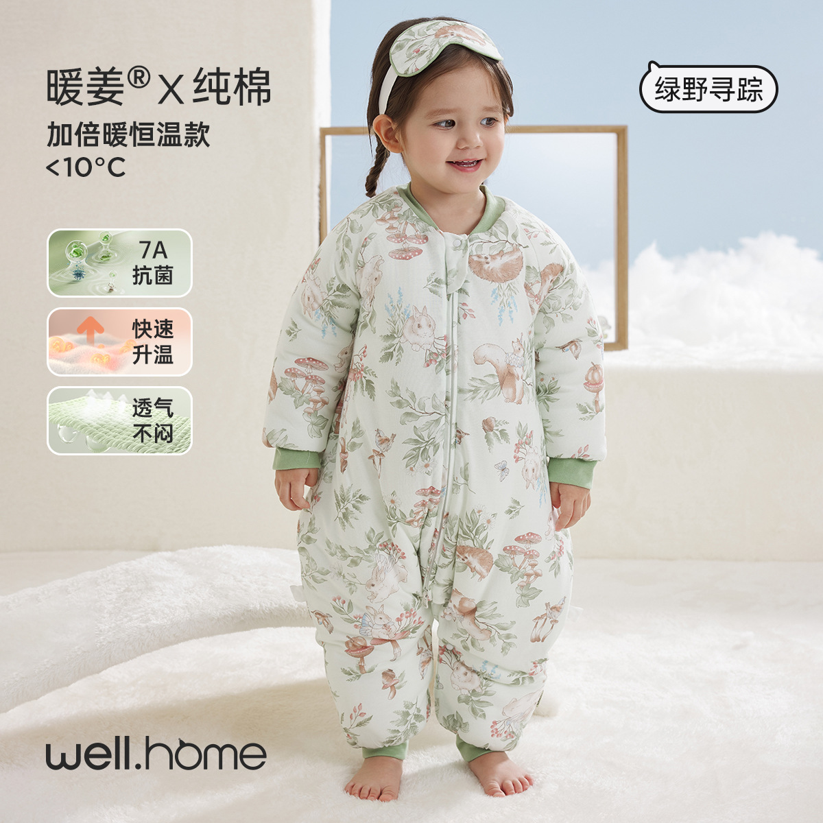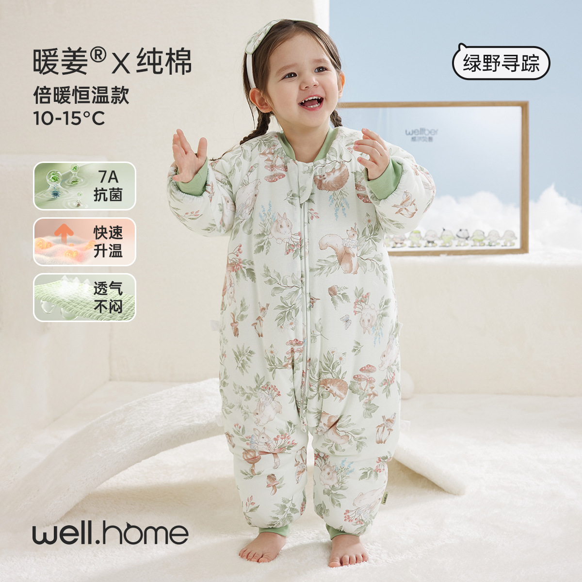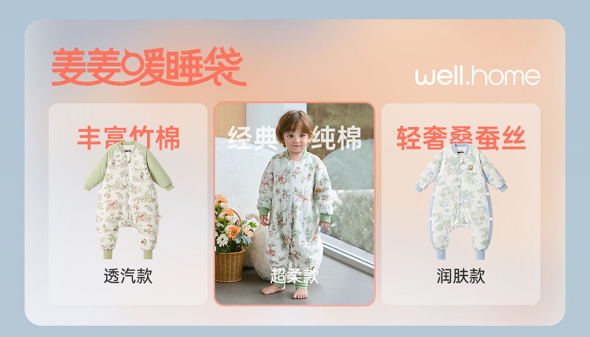 웰베루 아기 침낭 25년 신상 가을 겨울 신상 A급 다리 분리형 발차기 방지 이불 순면 항균 및 보온스토어 가기