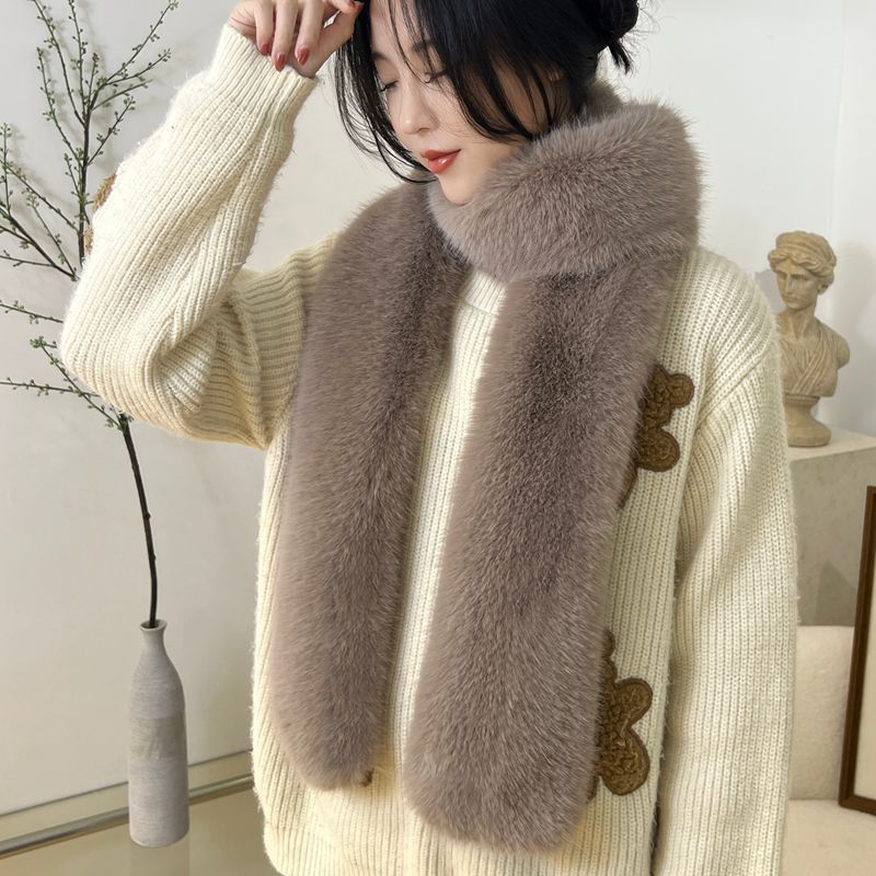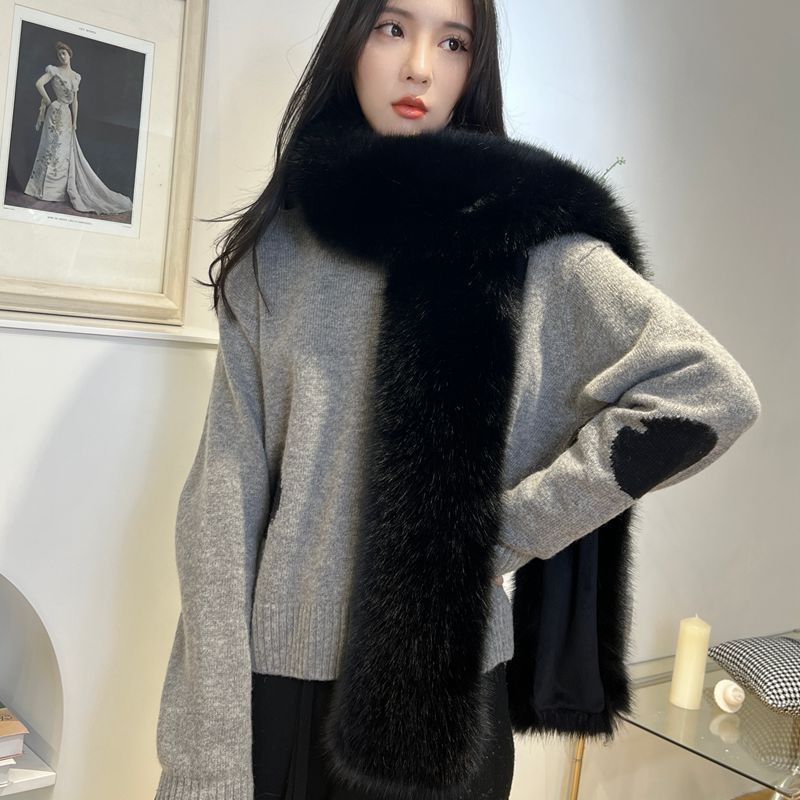 모조 여우 모피 스카프 모피 긴 스카프 따뜻한 칼라 목도리 다용도 모피 스카프 가을과 겨울 여성