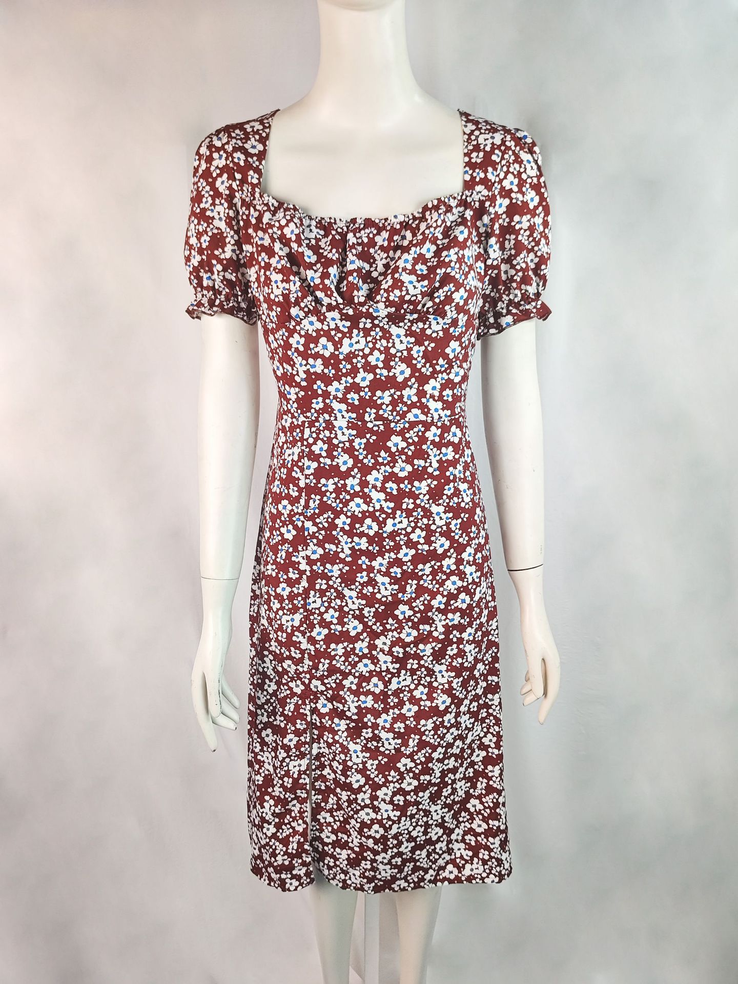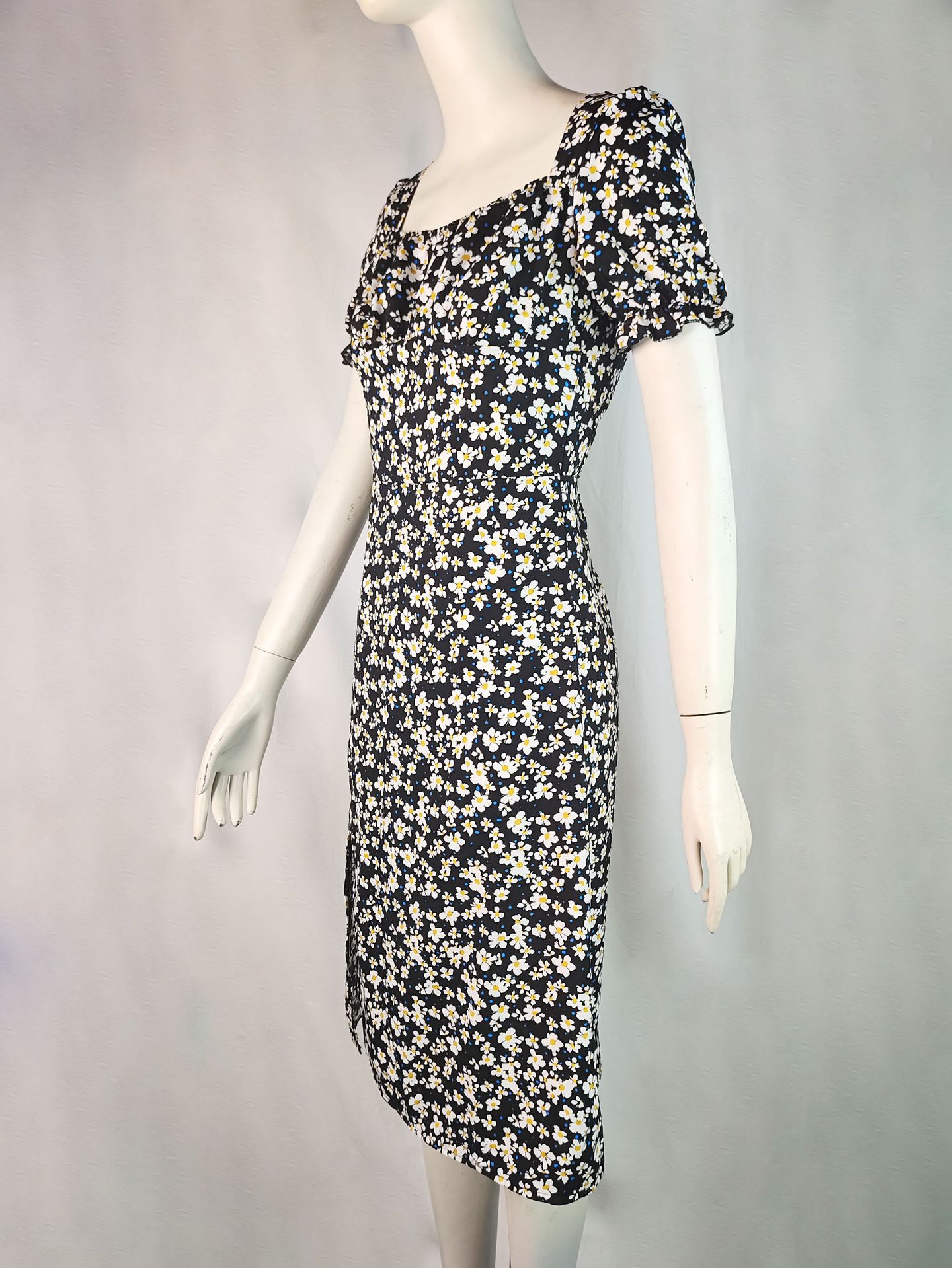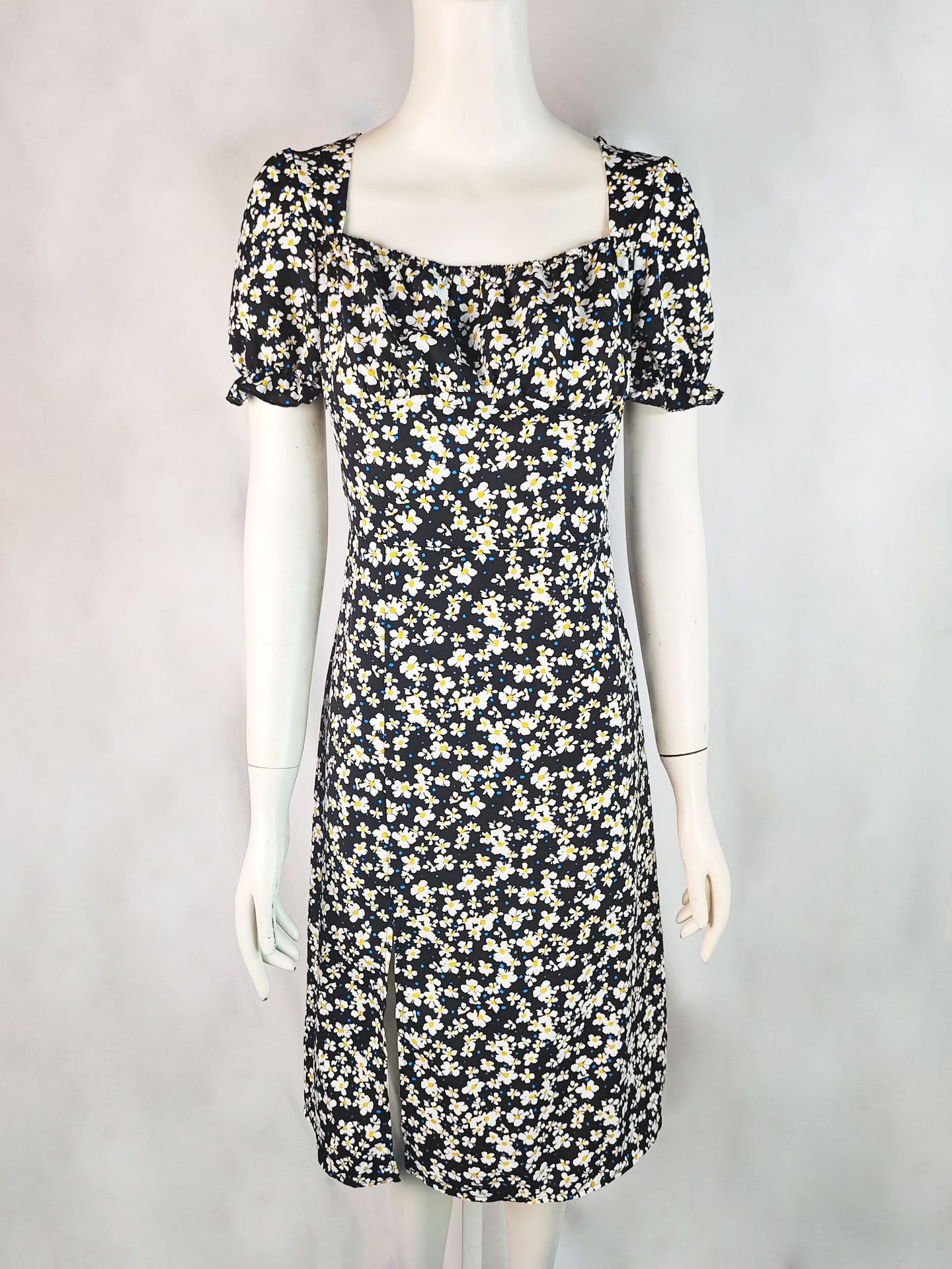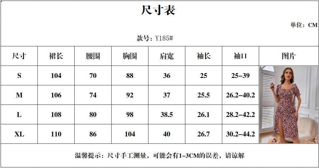 2025 여름 국경 새로운 유럽과 미국 스타일의 세련된 꽃 지퍼 슬릿 스퀘어 넥 중간 길이 여성 드레스스토어 가기