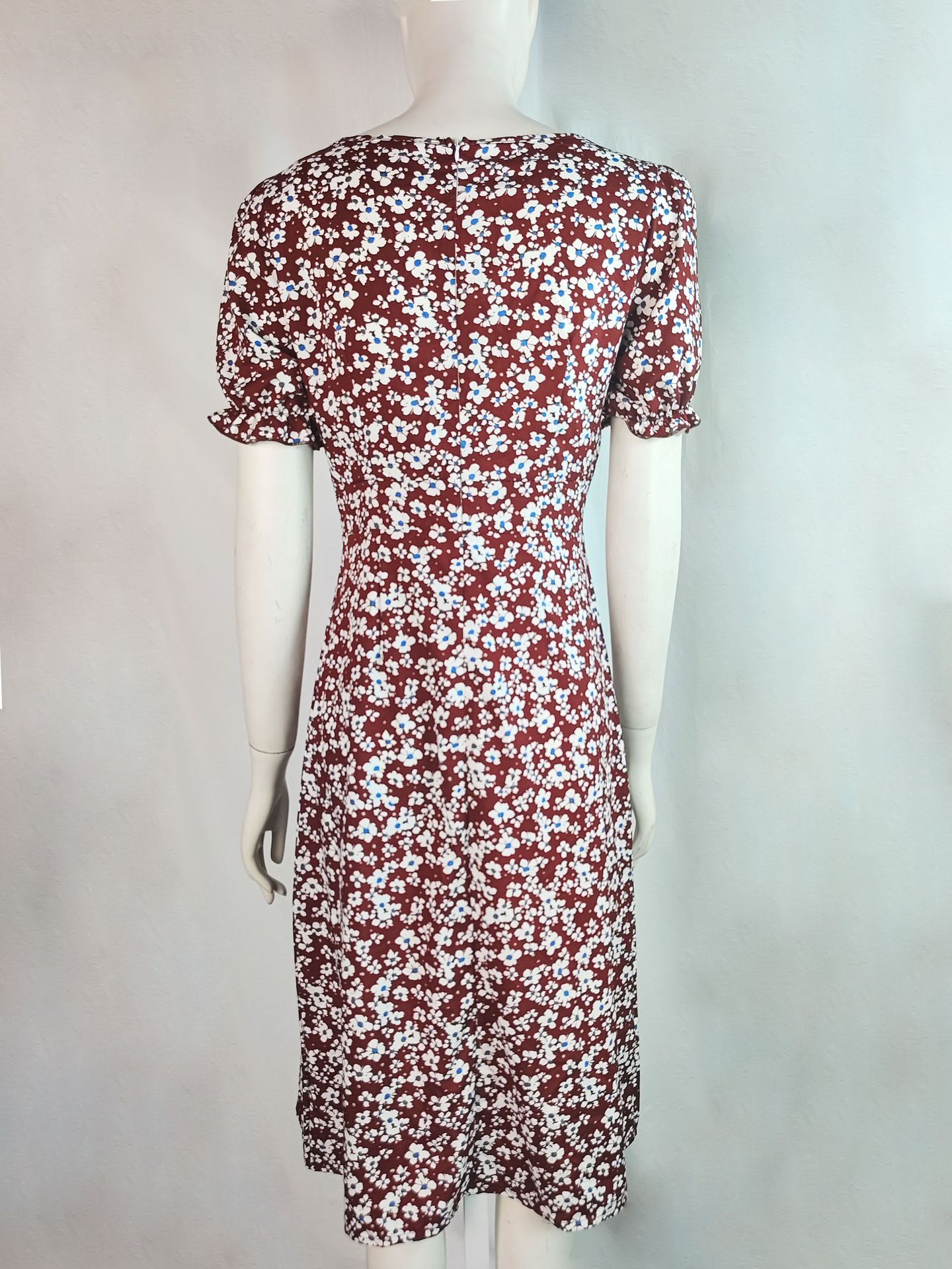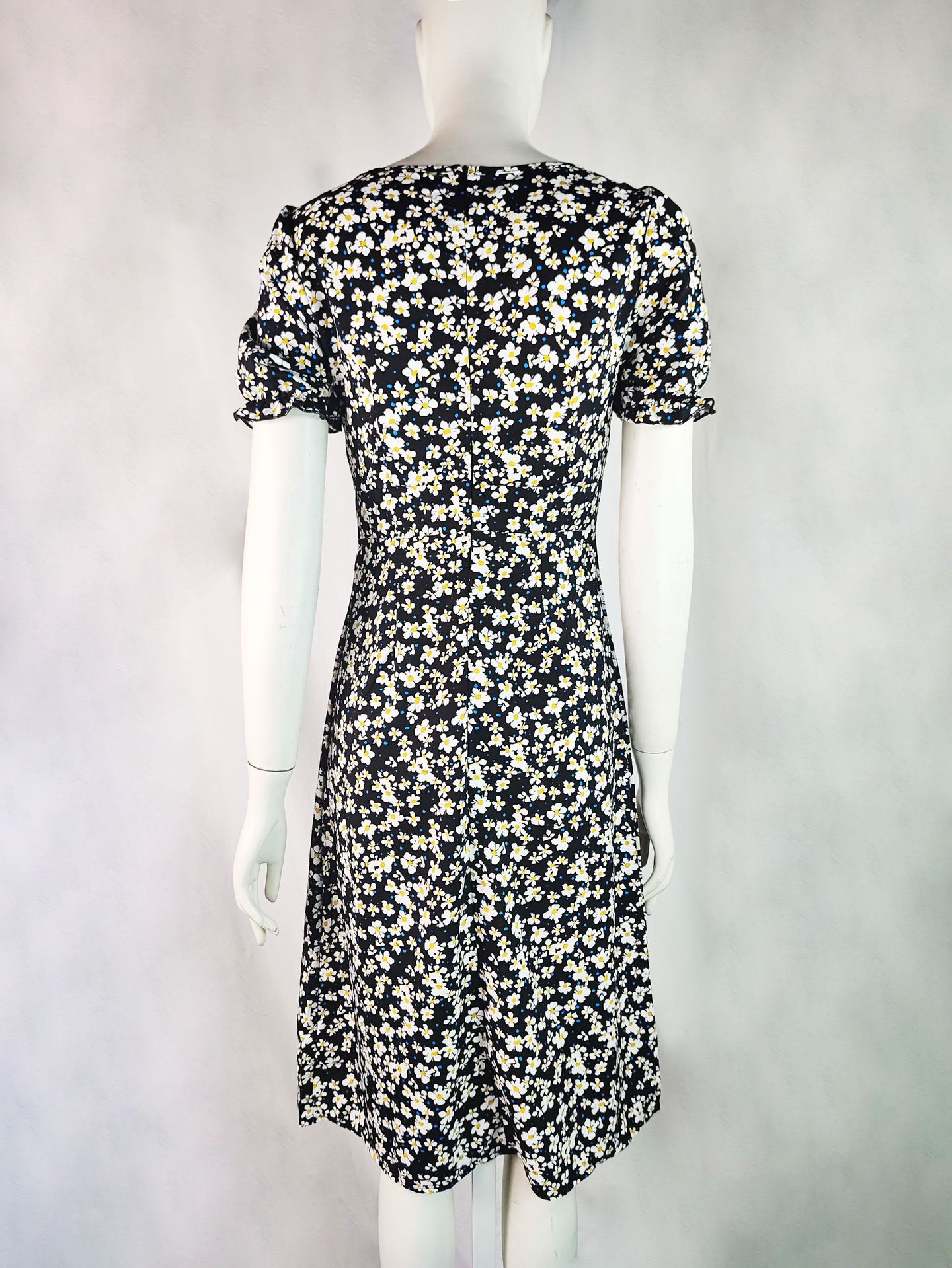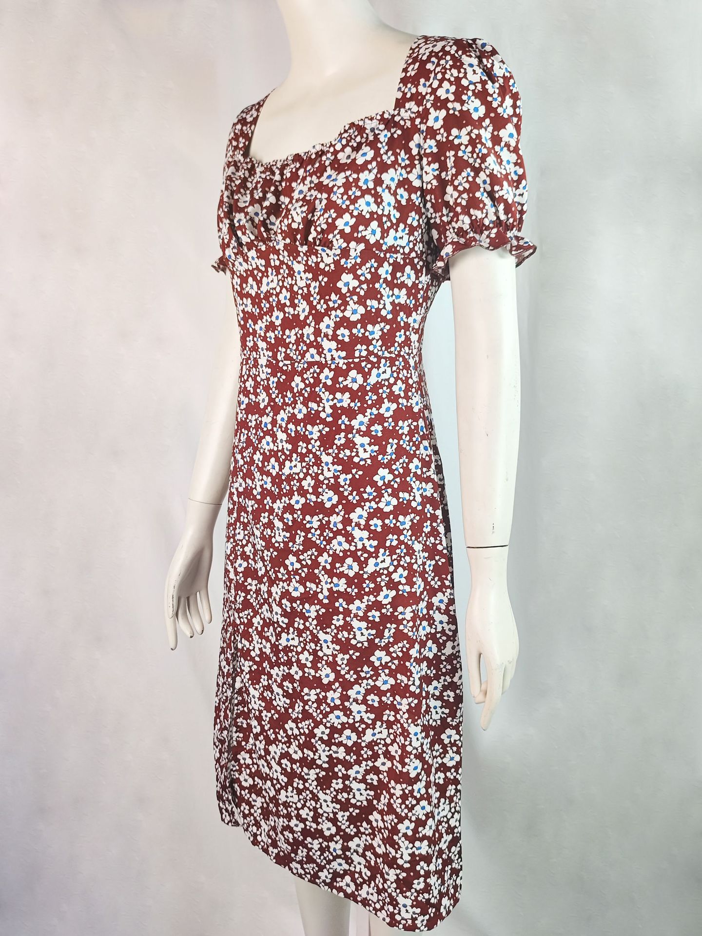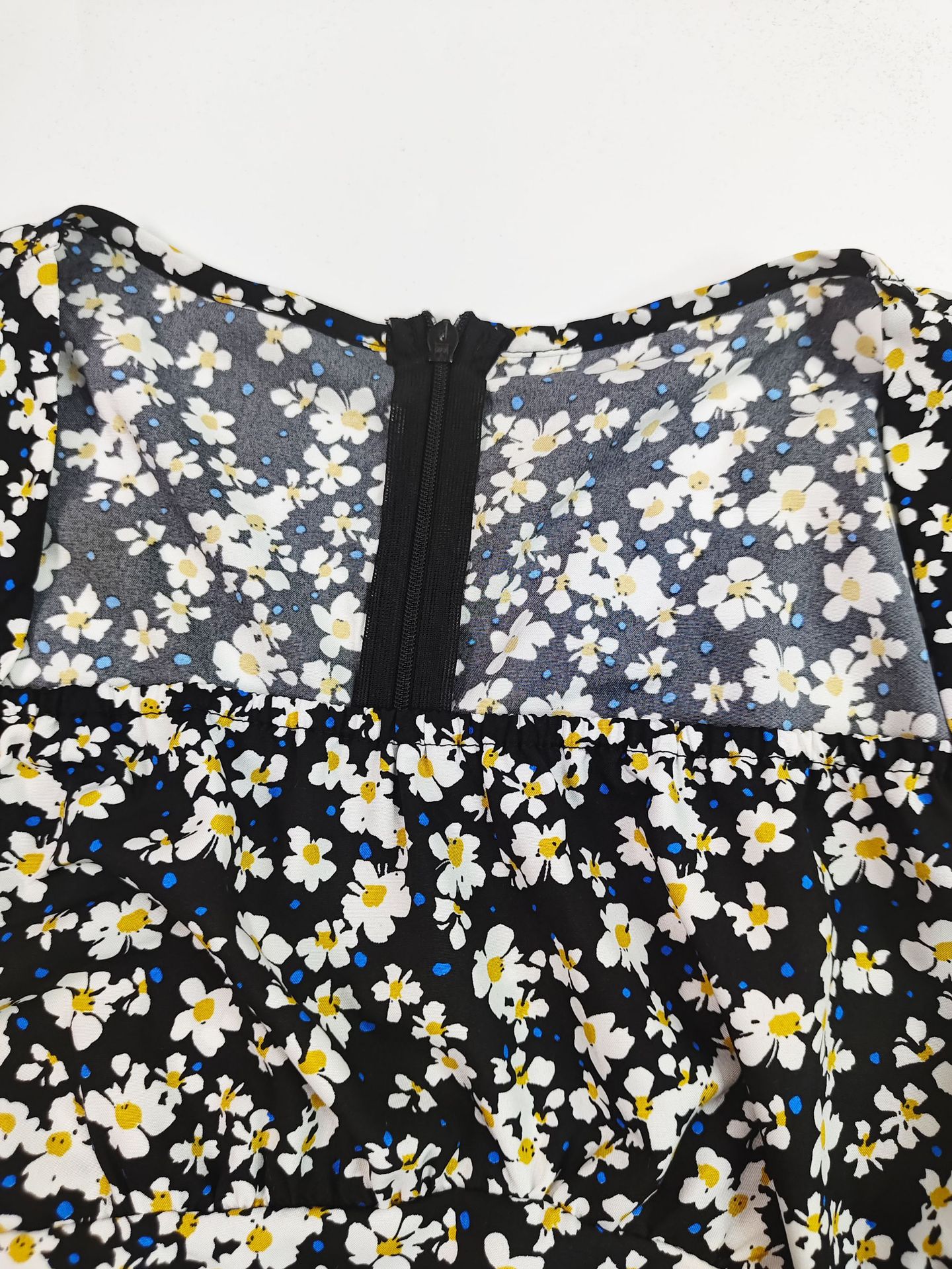 2025 여름 국경 새로운 유럽과 미국 스타일의 세련된 꽃 지퍼 슬릿 스퀘어 넥 중간 길이 여성 드레스스토어 가기