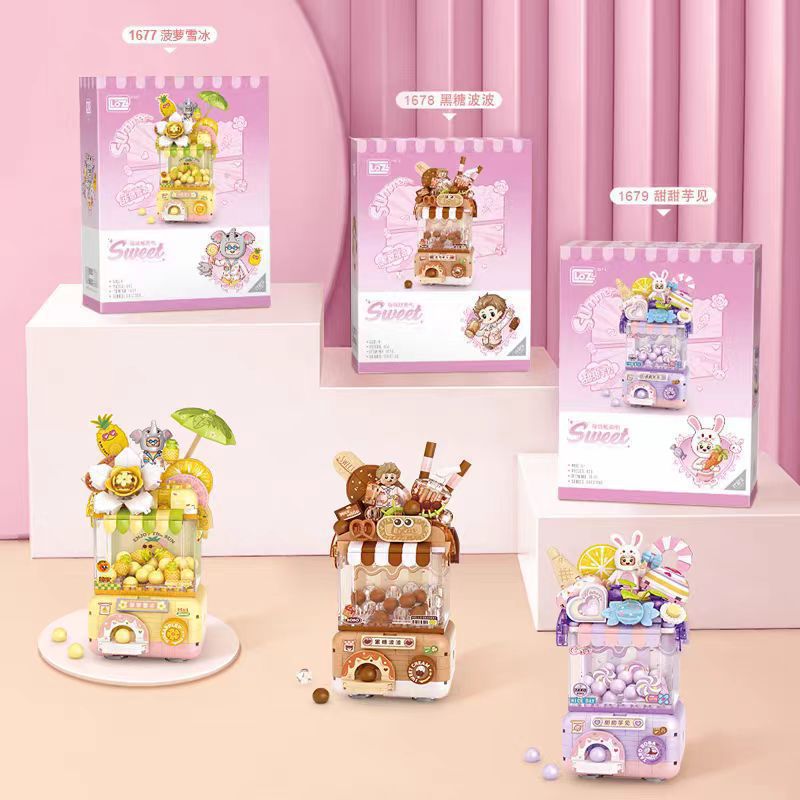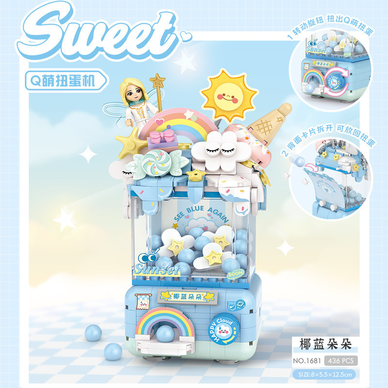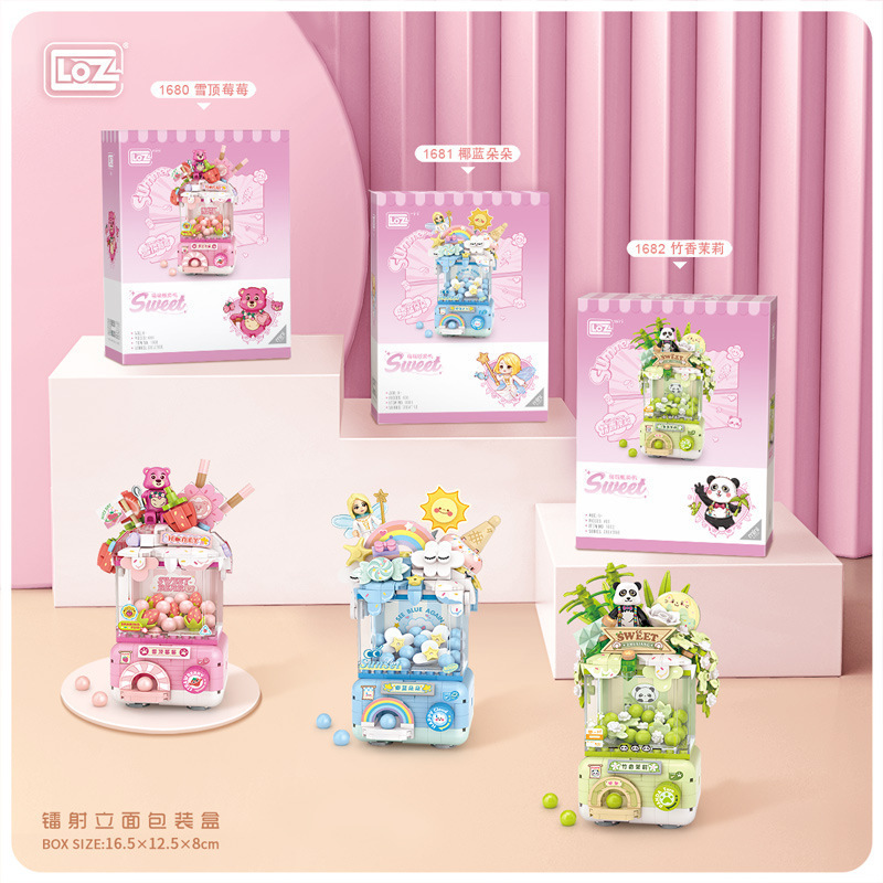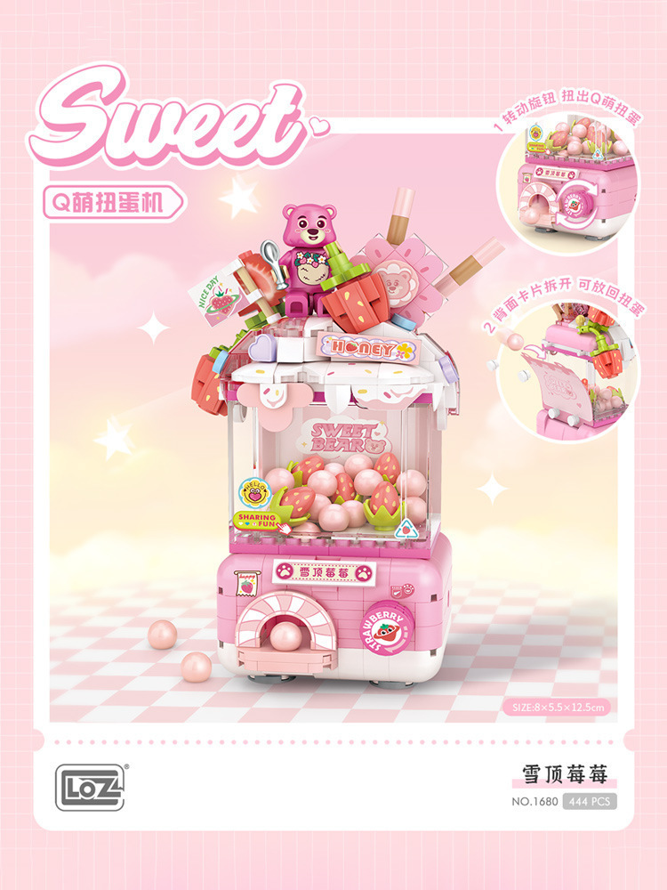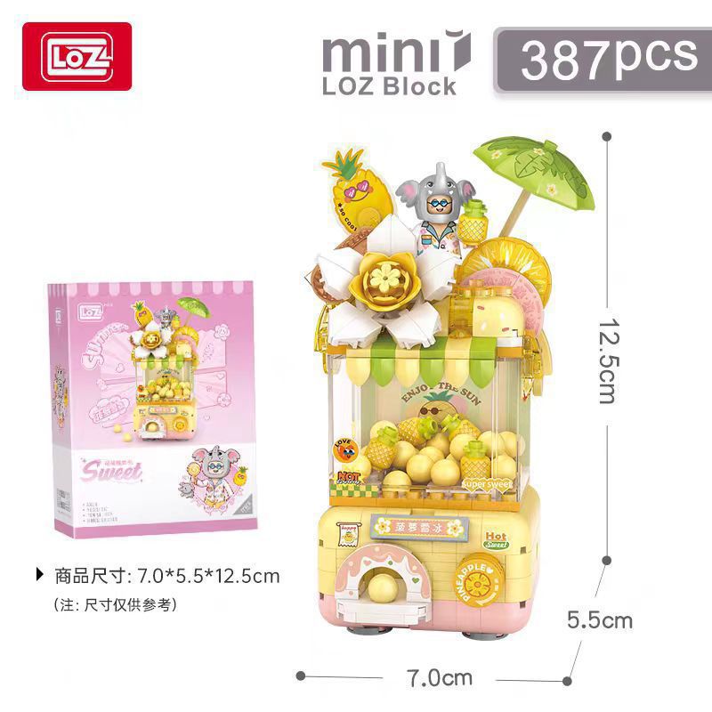 Li Zhi LOZ 빌딩 블록 창조적 인 Q Meng 미니 Gashapon 기계 파인애플 눈 얼음 장식품 소녀 교육 조립 장난감 선물스토어 가기