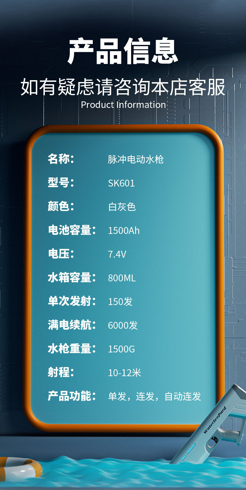 국경 간 신제품 전기 연속 펄스 대형 전원 물 총 방수 완전 자동 Marquee 어린이 야외 장난감스토어 가기