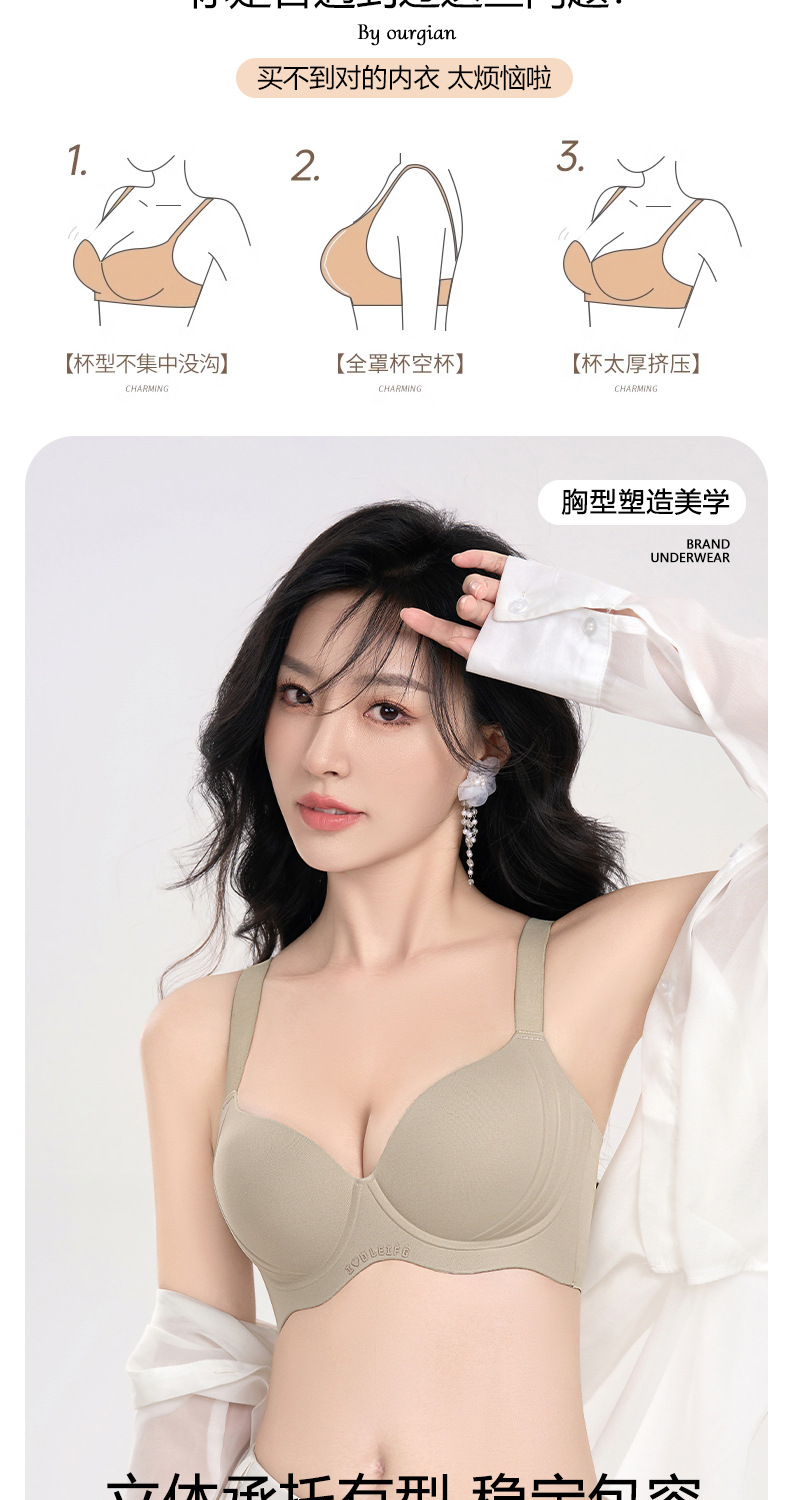 여성용 광택 무봉제 큰가슴 축소 속옷, 여름용 얇은 모델, 푸쉬업, 옆가슴 커버, 처짐 방지, 대형 브라스토어 가기