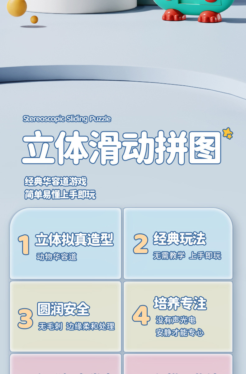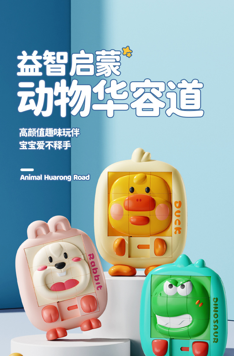 새로운 만화 동물 Huarong 도로 어린이 퍼즐 스테레오 퍼즐 슬라이딩 공룡 오리 계몽주의 퍼즐 장난감