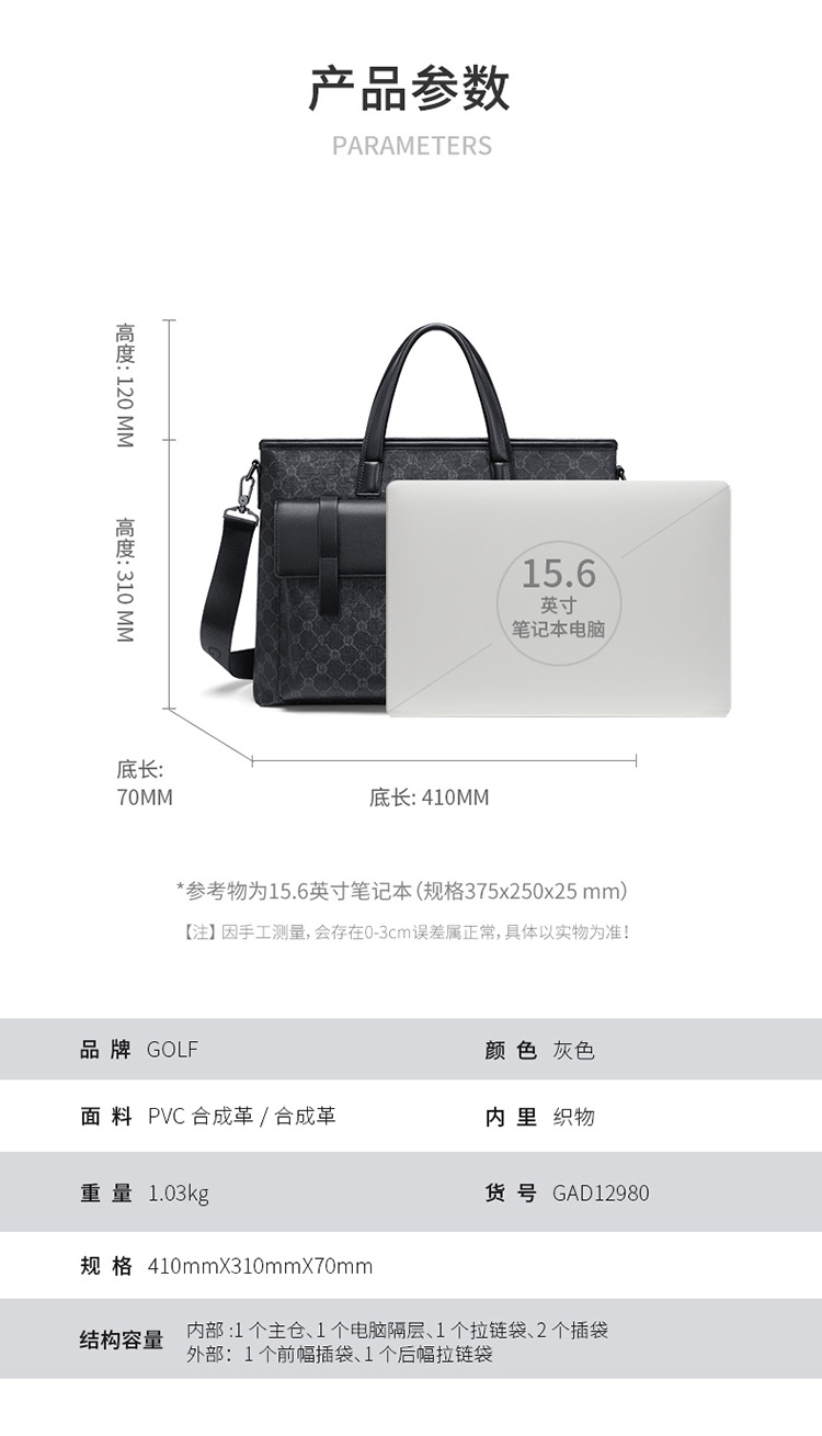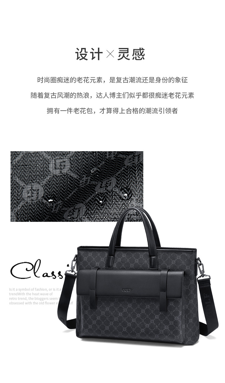 골프 비즈니스 서류 가방 패션 빈티지 인쇄 핸드백 15.6 인치 컴퓨터 가방 남성 어깨 크로스 바디 백 사무실스토어 가기
