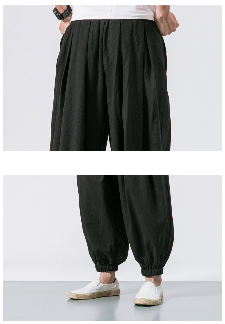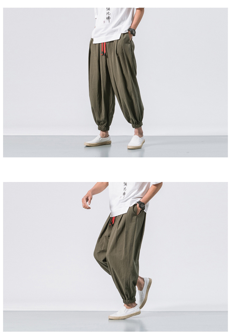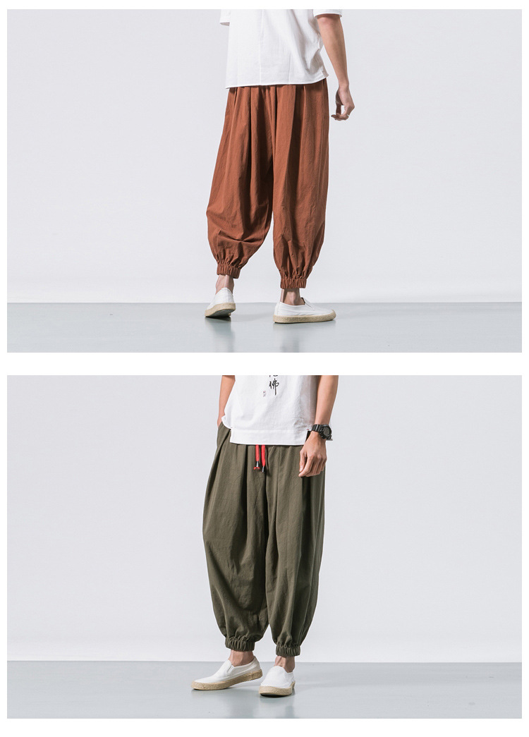 外贸夏季新款男式灯笼裤 宽松棉麻束脚裤男阔腿裤哈伦小脚裤