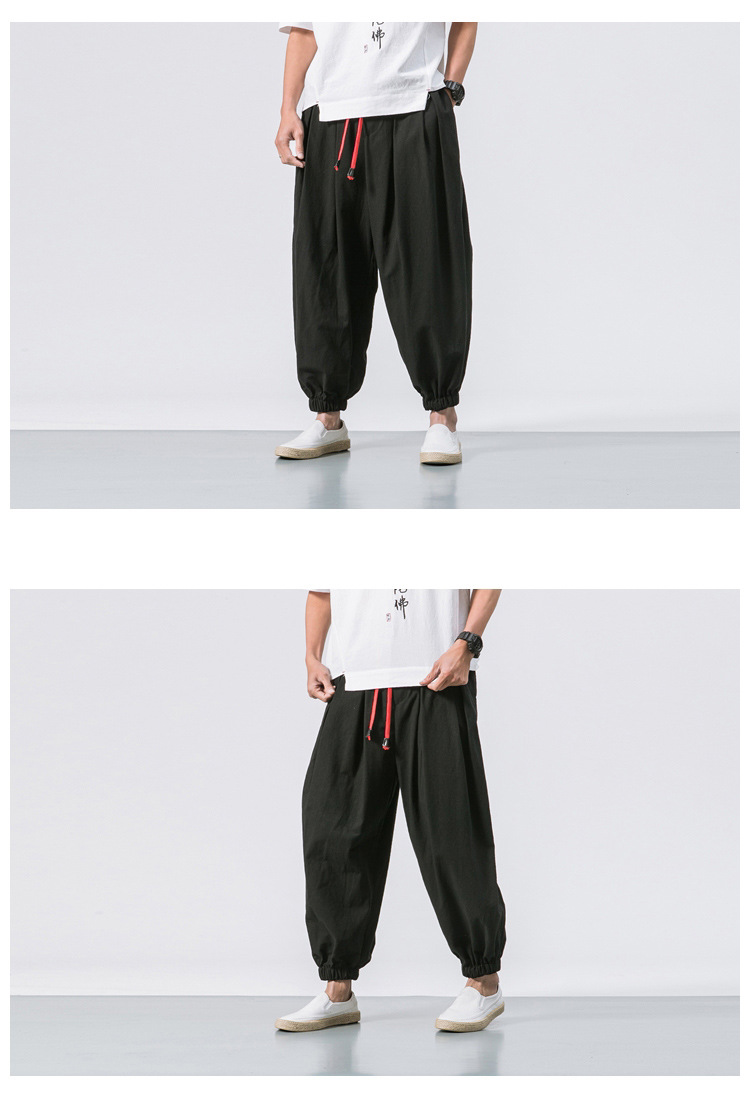 여름 새로운 남성 리넨 블루머스 느슨한 면화와 리넨 발목 바지 플러스 사이즈 트렌디 와이드 레그 팬츠 할란 작은 다리 바지스토어 가기