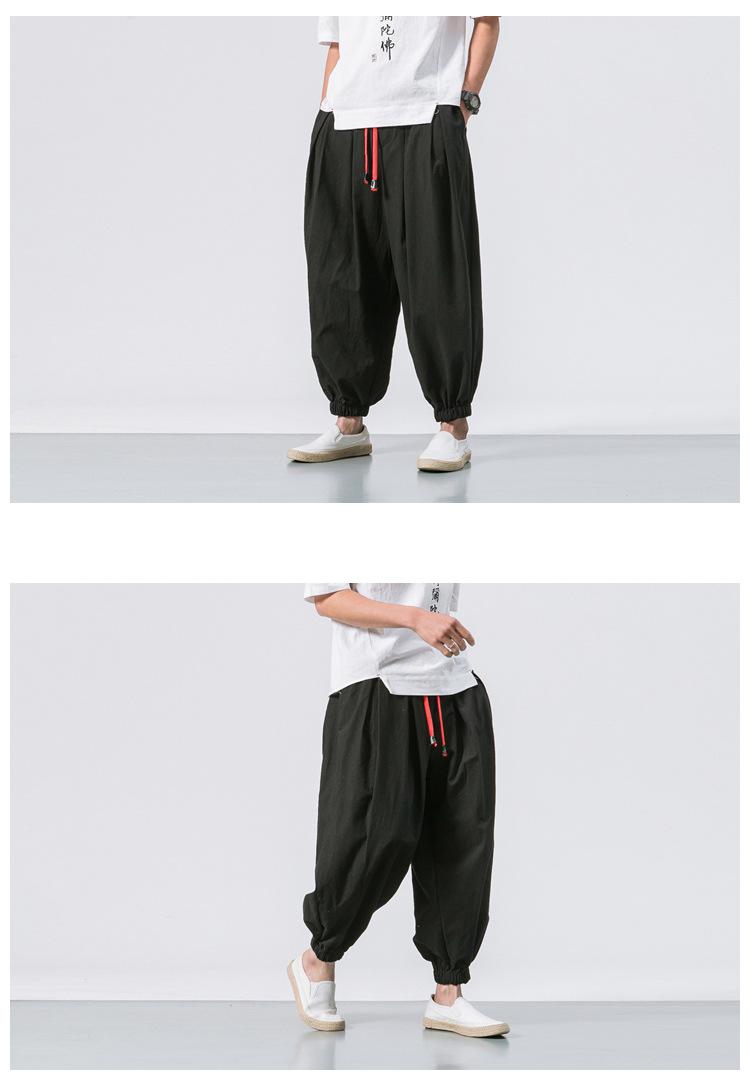 여름 새로운 남성 리넨 블루머스 느슨한 면화와 리넨 발목 바지 플러스 사이즈 트렌디 와이드 레그 팬츠 할란 작은 다리 바지
