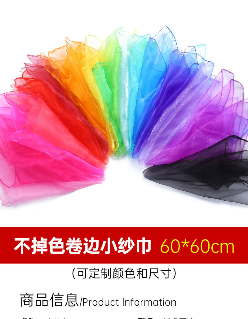 페이딩 컬링 스테이지 없음 작은 거즈 단색 쉬폰 나일론 어린이 댄스 스카프 스퀘어 스카프 도매