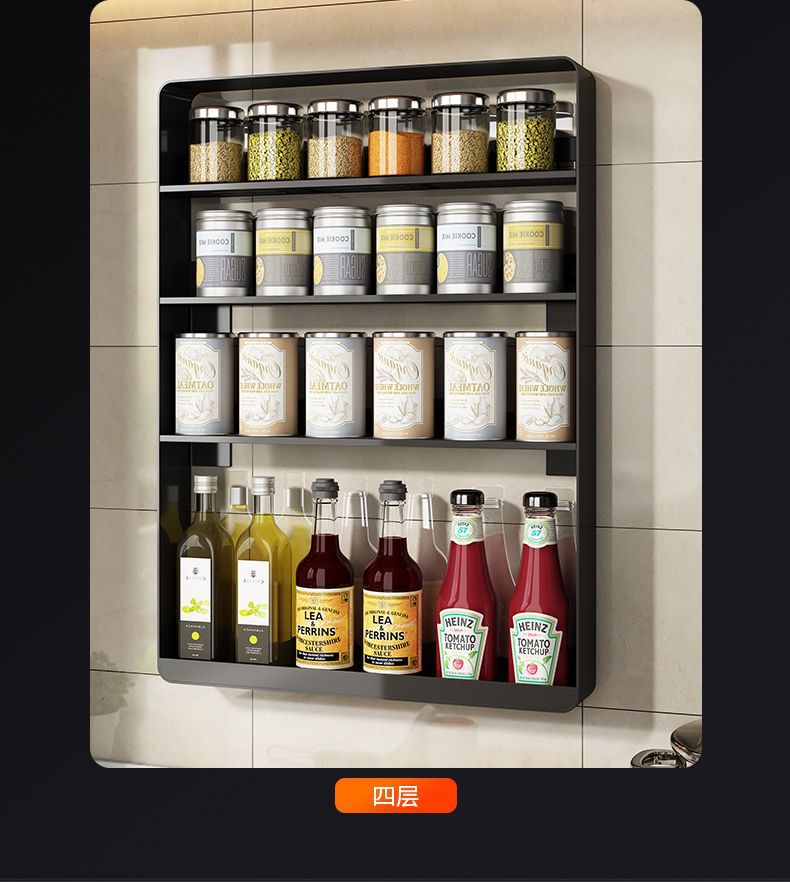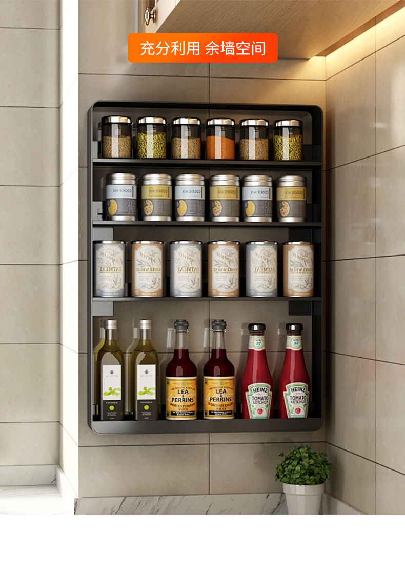 주방 스토리지 랙 조미료 랙 벽 교수형 비 펀치 벽 다층 스토리지 선반 가정용 컨디셔닝 스토리지 랙