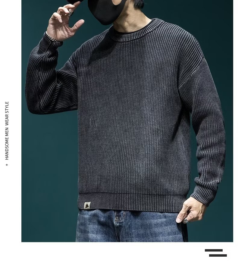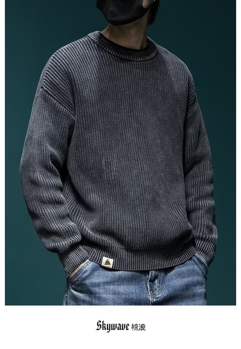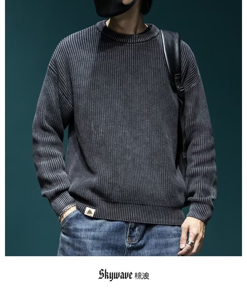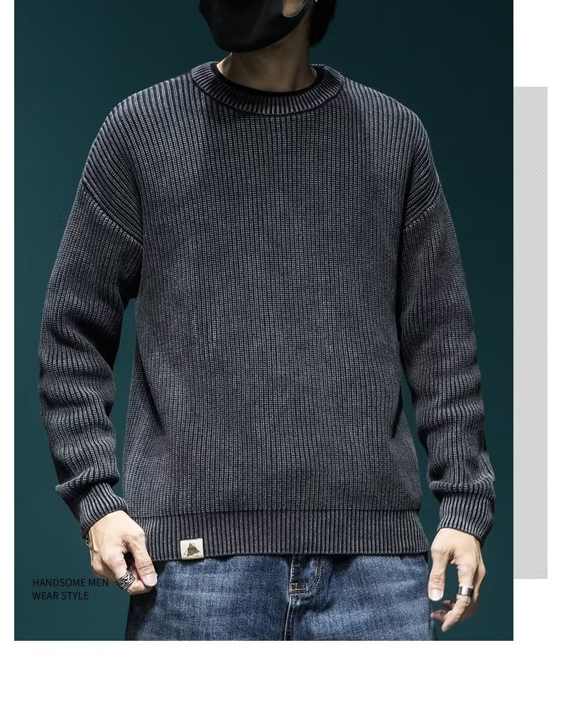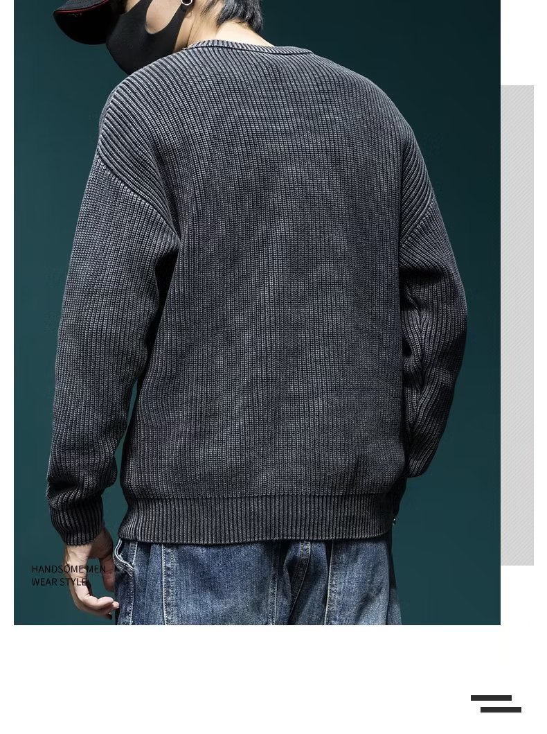 스웨터 남성 아메리칸 스타일 패션 브랜드 씻은 느슨한 플러스 사이즈 겨울 두꺼운 일본 스타일 간단한 라운드 넥 스웨터 스웨터스토어 가기